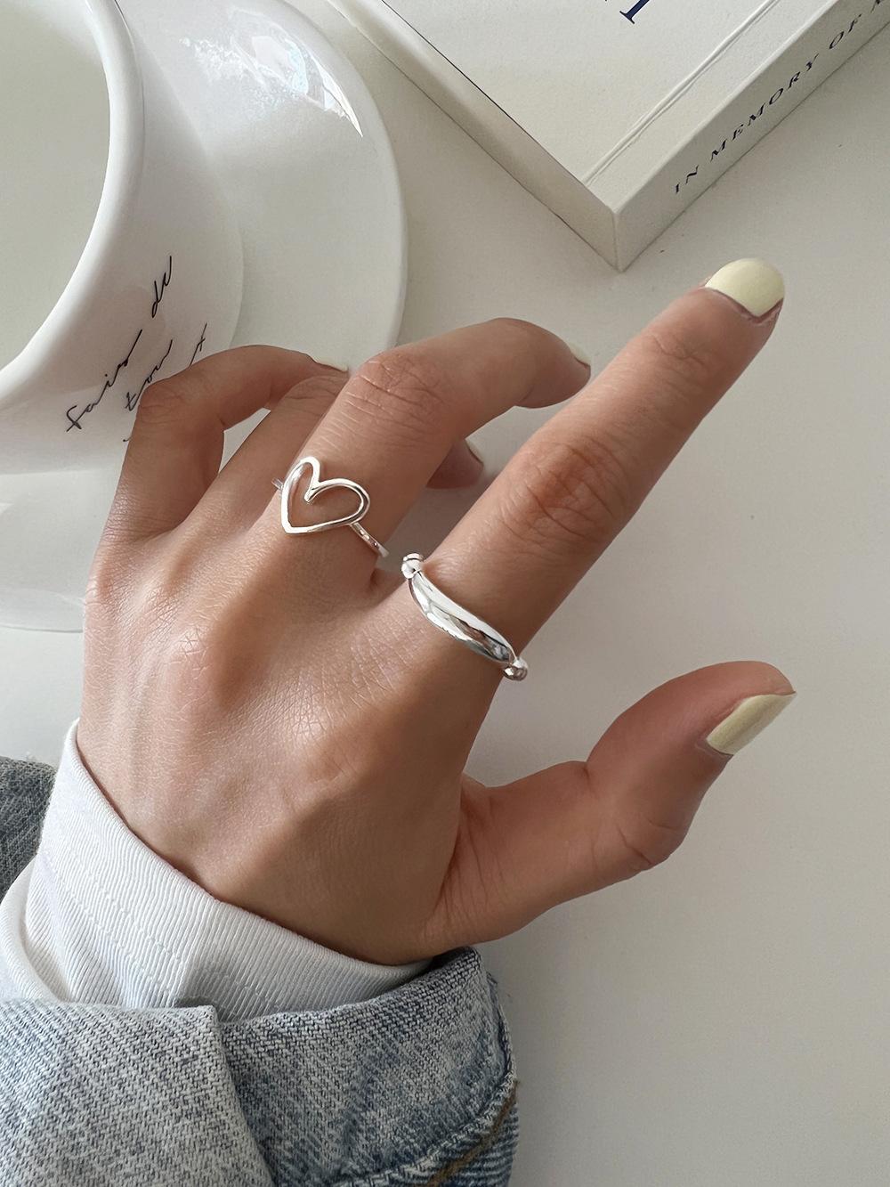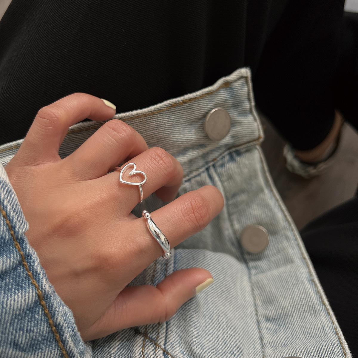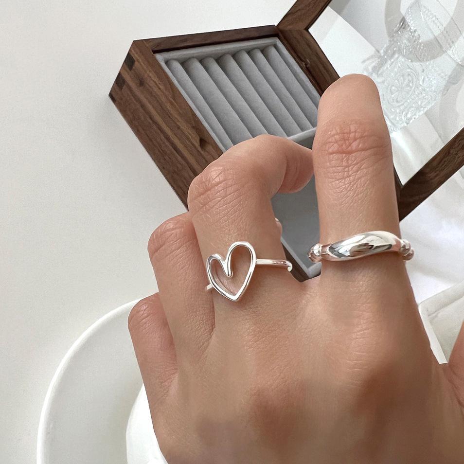 Anillo simple de plata S925 estilo coreano con cuentas, estilo retro, geométrico, irregular, abierto, estilo hip-hop.