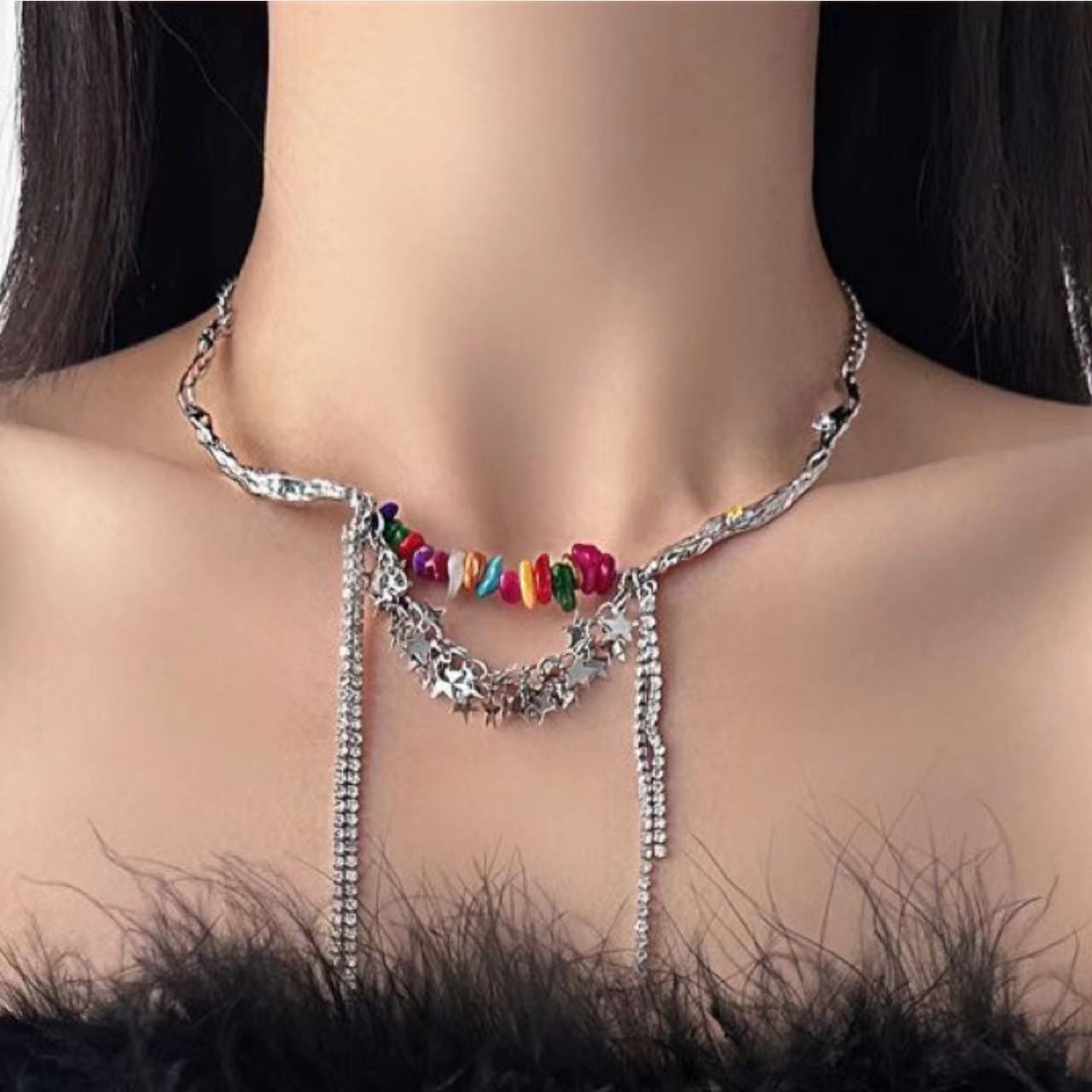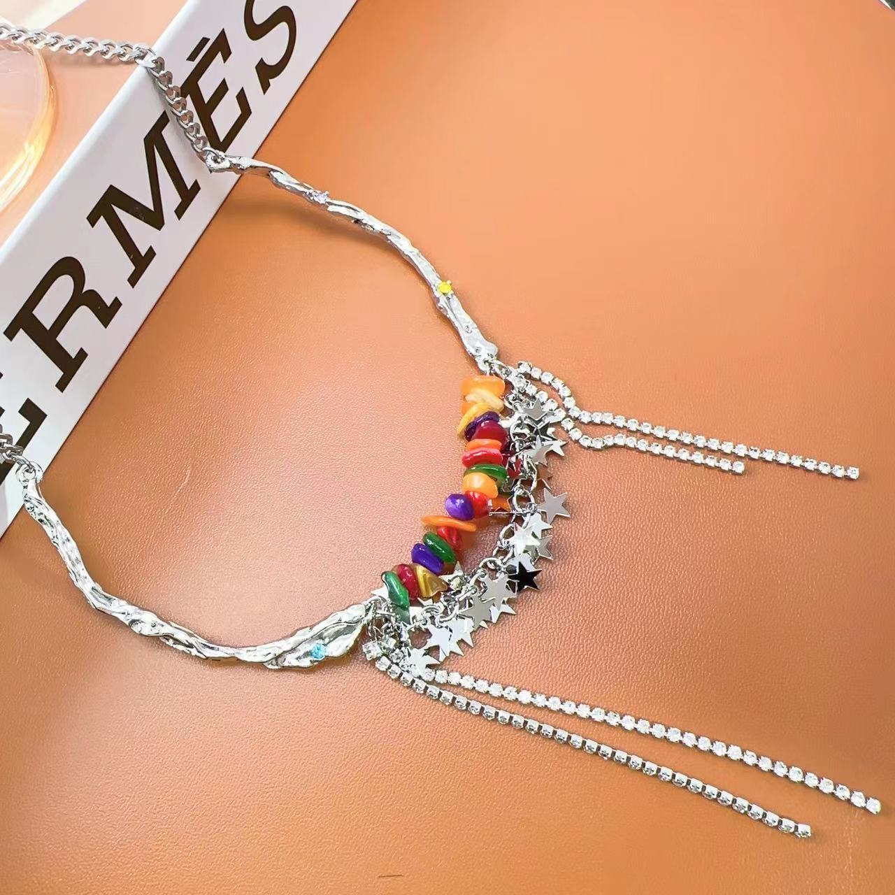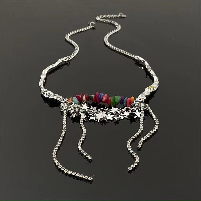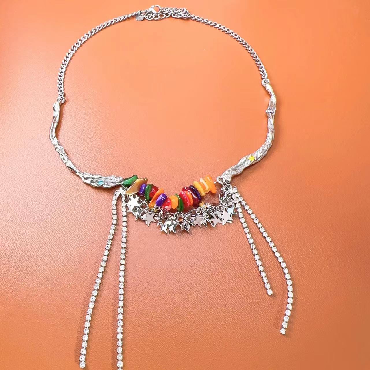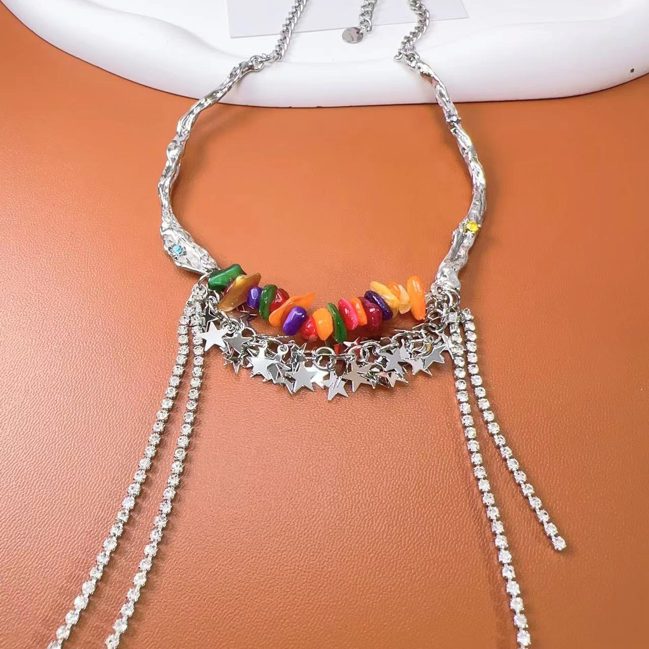 Collar con borlas de diamantes de color estrella de cinco puntas para mujer, diseño de nicho, cerradura ligera, lujosa, exquisita, combina con todo, cadena de clavícula, accesorios