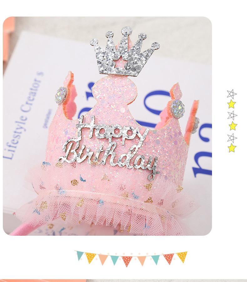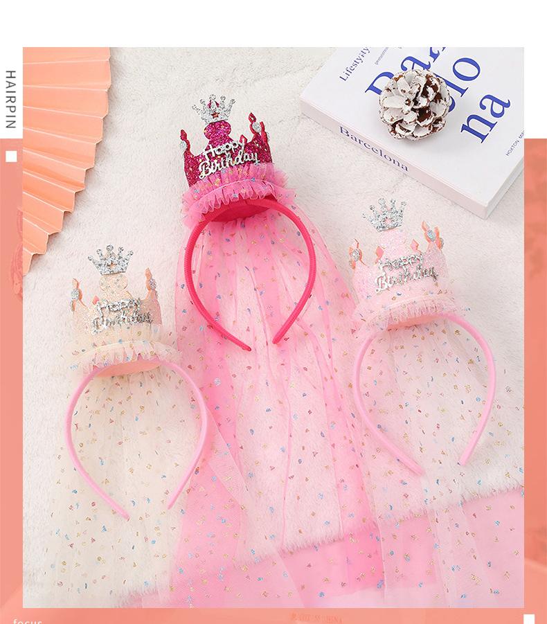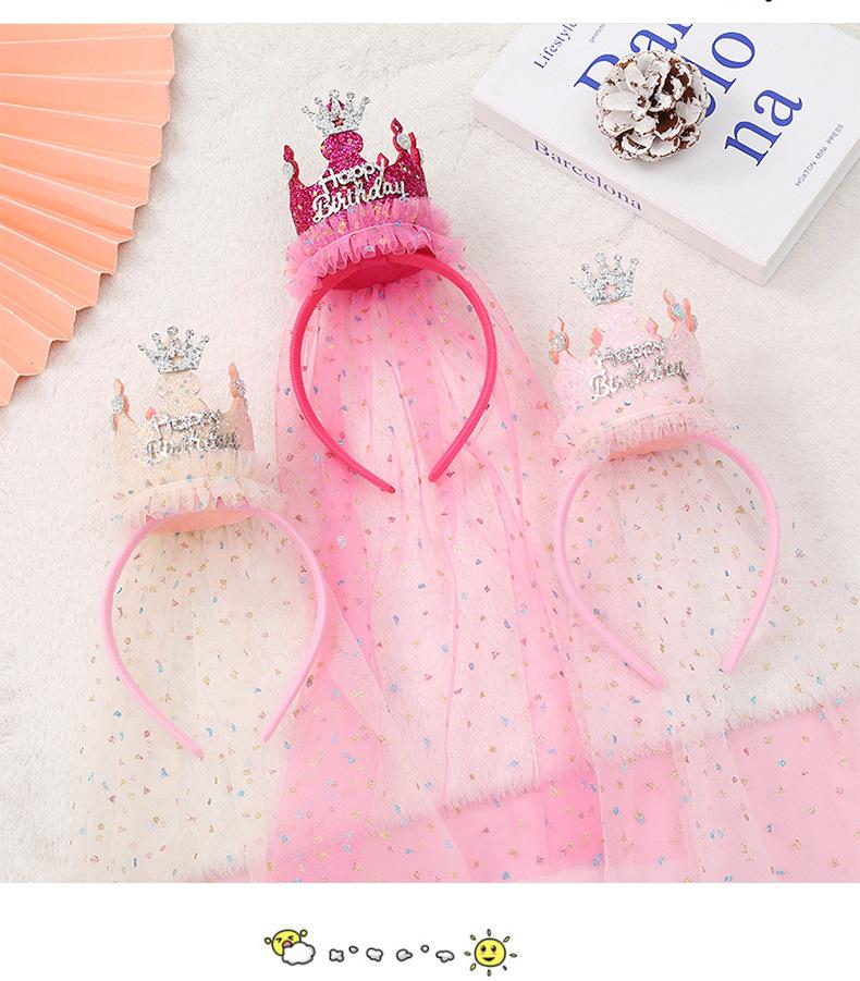 Corona de Cumpleaños para Niños Accesorios para el Cabello Velo de Princesa Feliz Cumpleaños Diadema Accesorios para el Cabello de Fiesta Venta al por Mayor