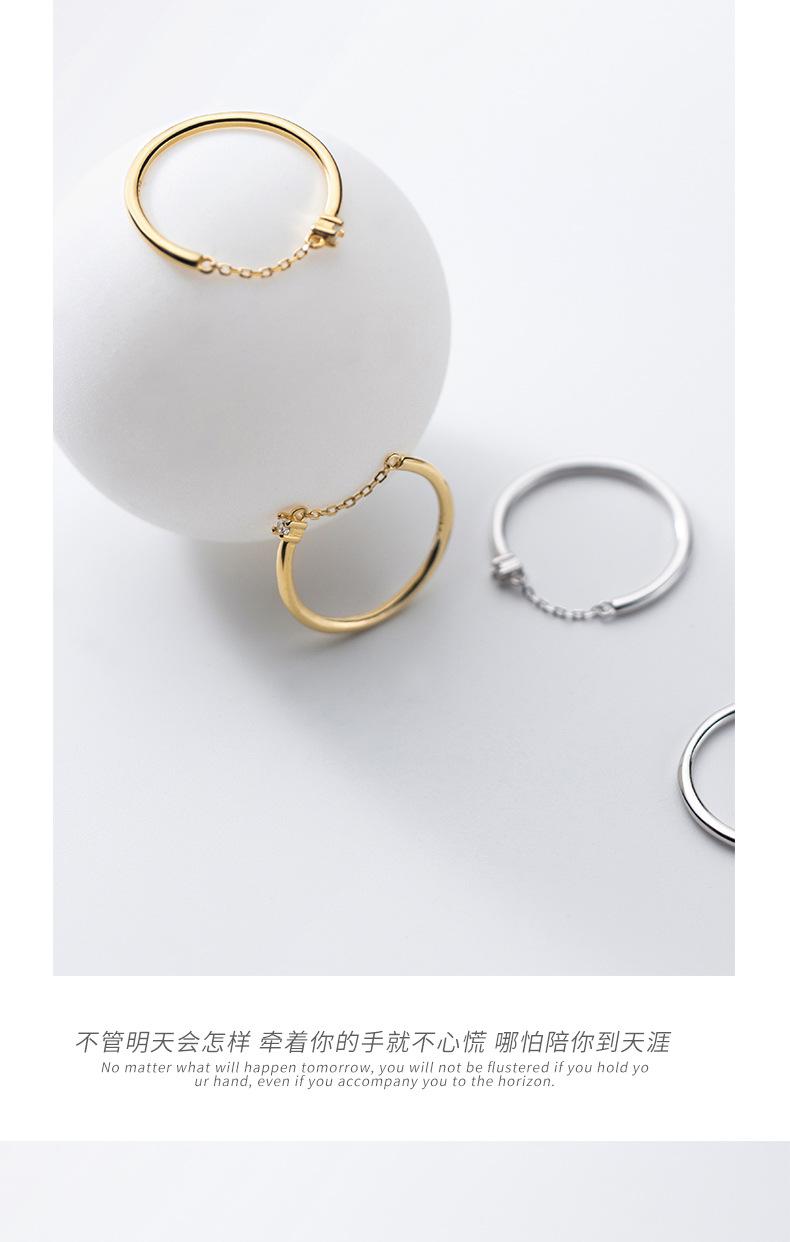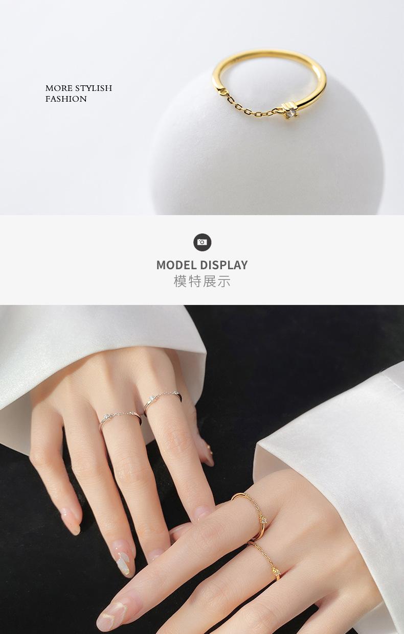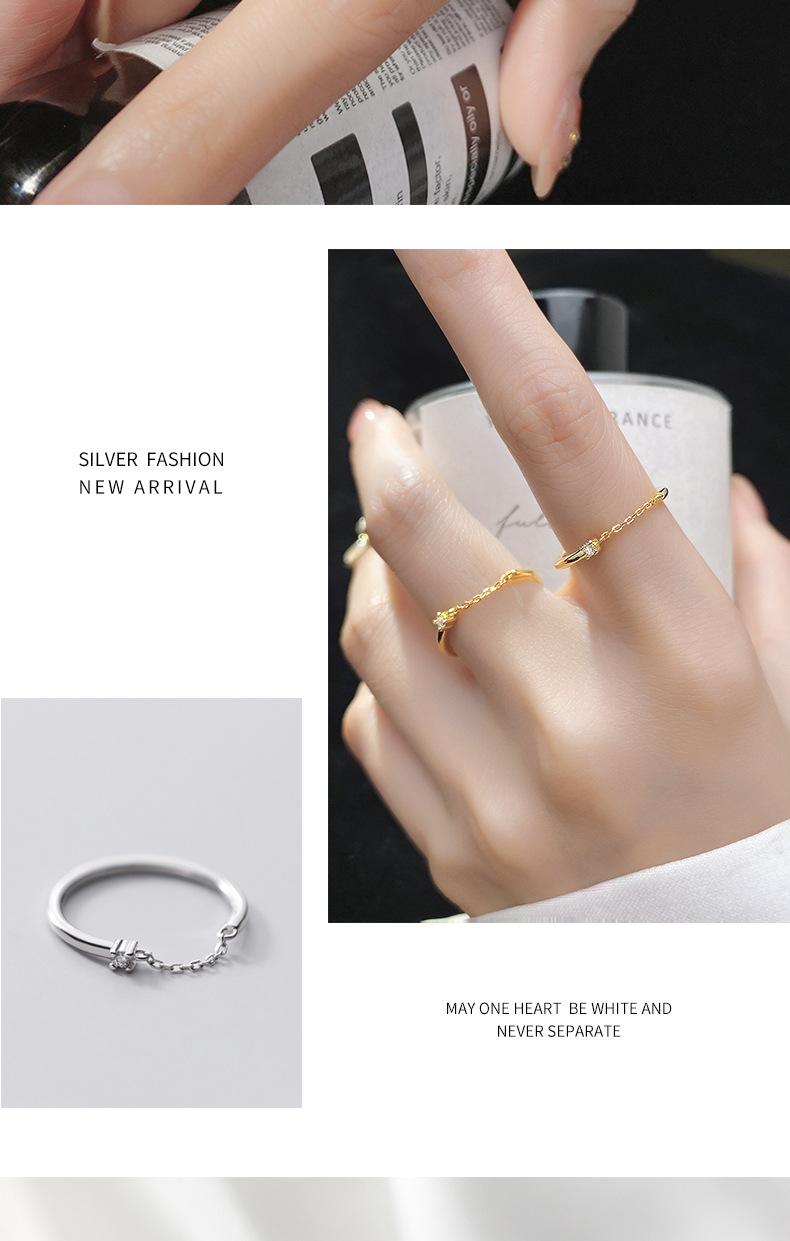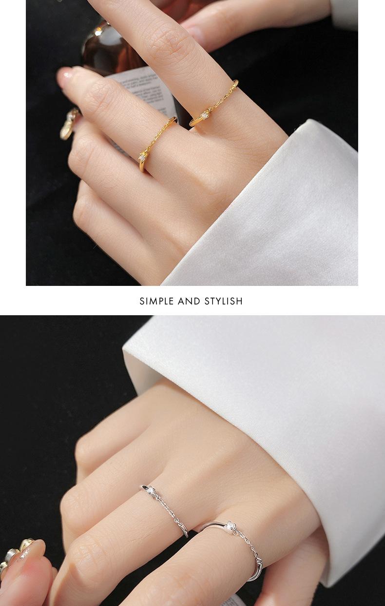Anillo de Dedo de Cadena Distintiva Estilo Coreano Diamante Solitario Simple Pequeño Dama Elegante Exquisito Anillo Artístico Chapado en Plata S925