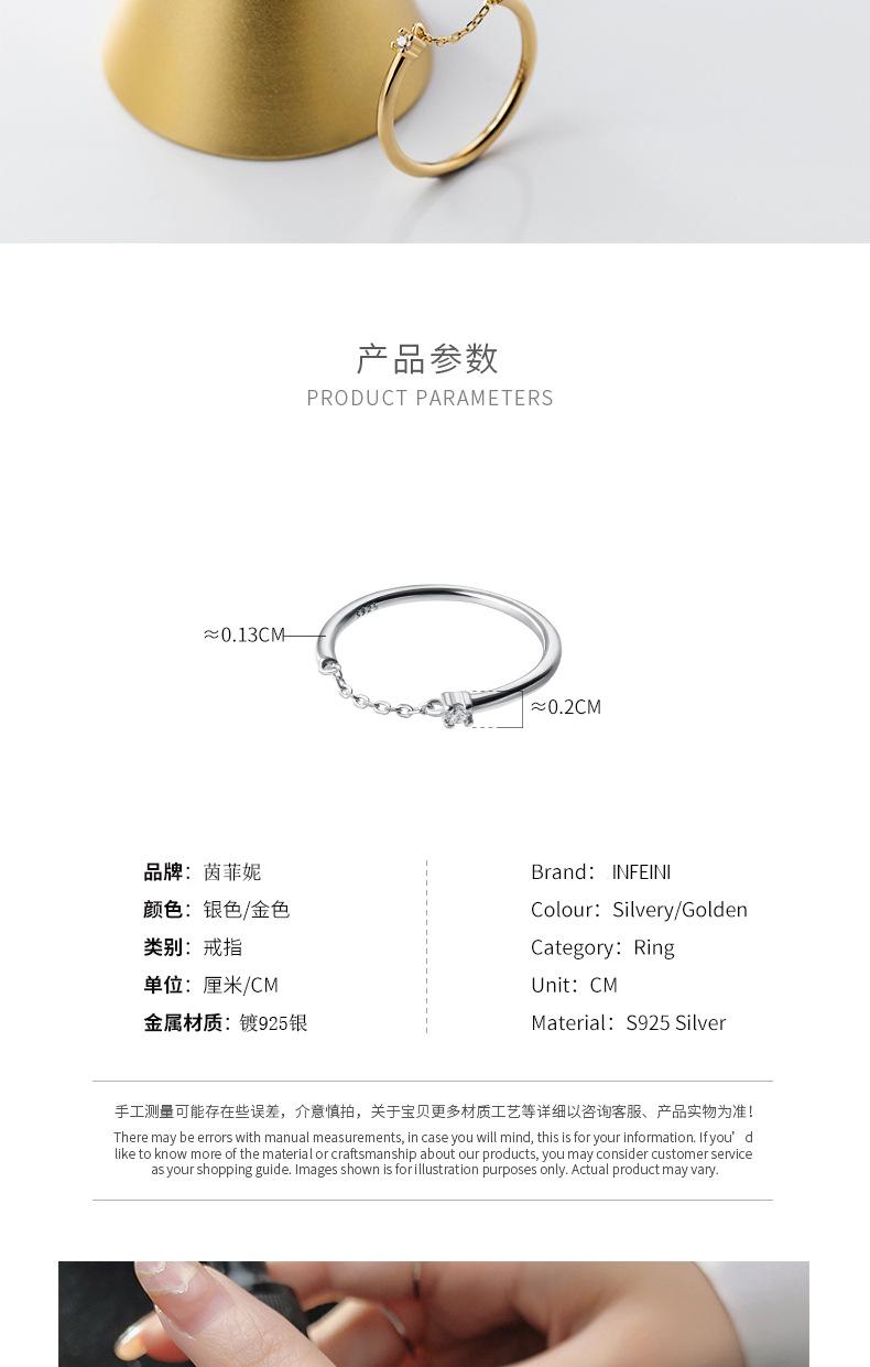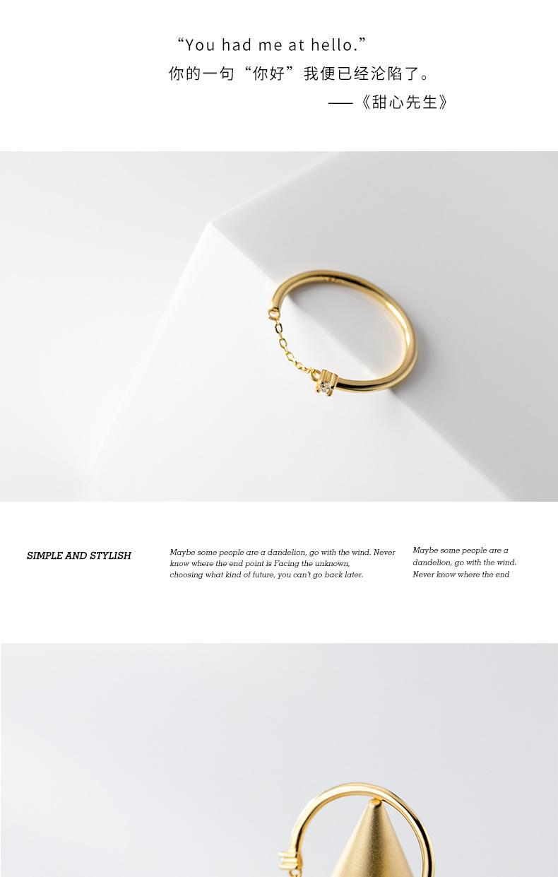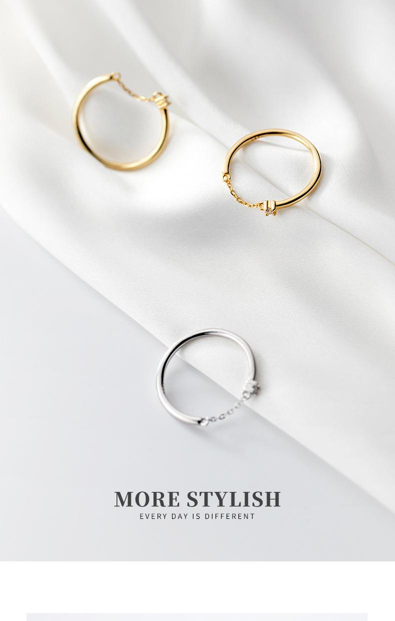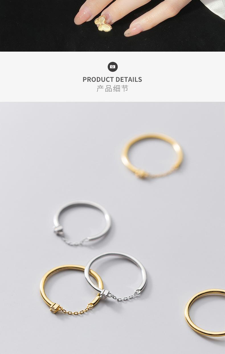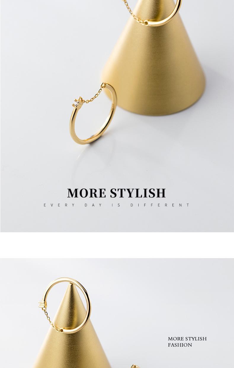 Anillo de Dedo de Cadena Distintiva Estilo Coreano Diamante Solitario Simple Pequeño Dama Elegante Exquisito Anillo Artístico Chapado en Plata S925