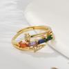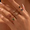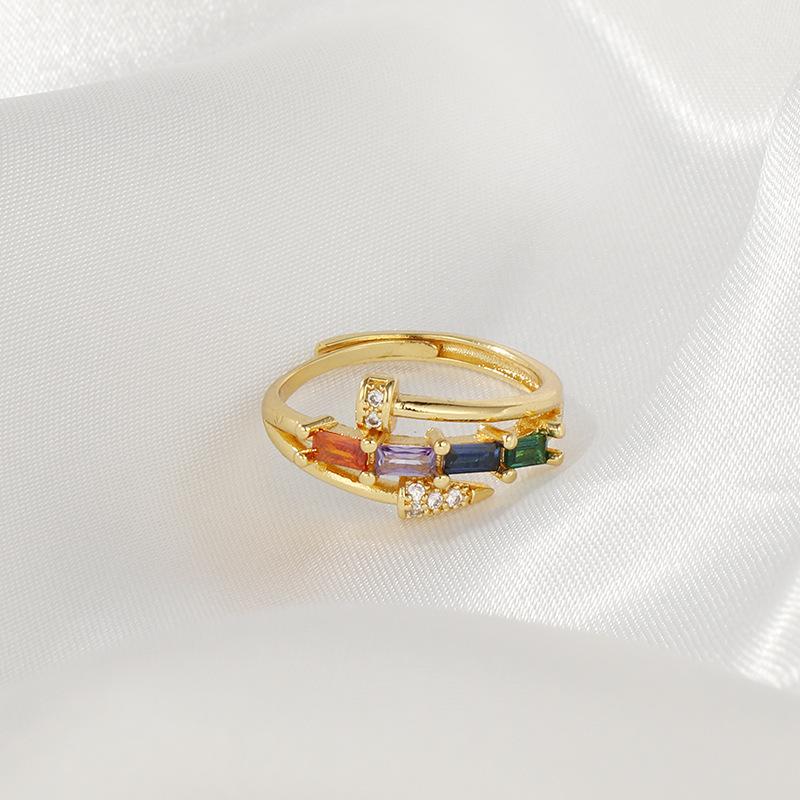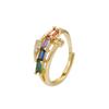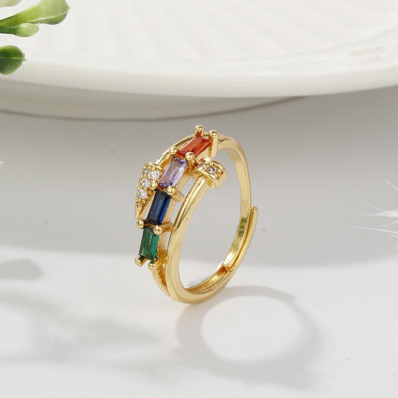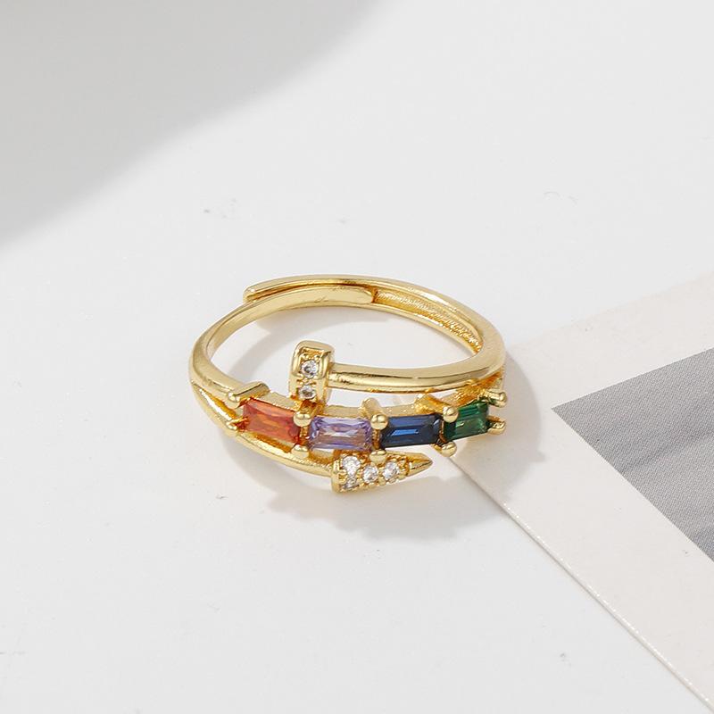 Anillo de temperamento de lujo ligero estilo INS, diseño de uñas transfronterizo, anillo de dedo de circonita cuadrada de color incrustado, anillo abierto