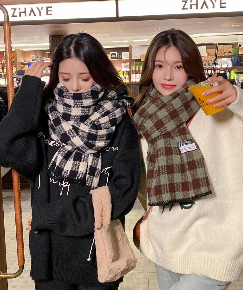 Ins Bufanda para Mujer Invierno Estilo Coreano Nuevo Combinable Estudiante Alta Calidad Cálida Cuello Pareja Chal a Cuadros Estilo Japonés