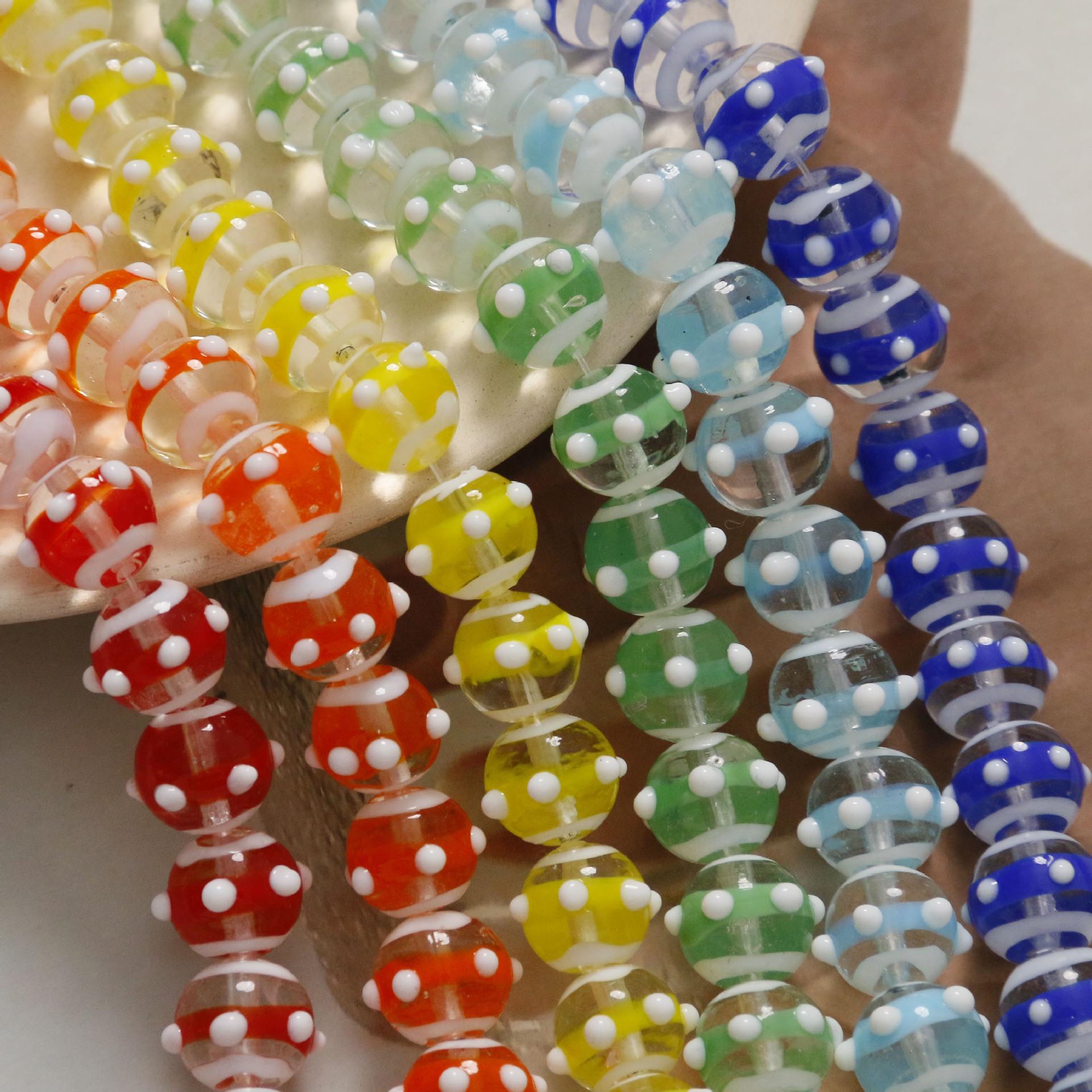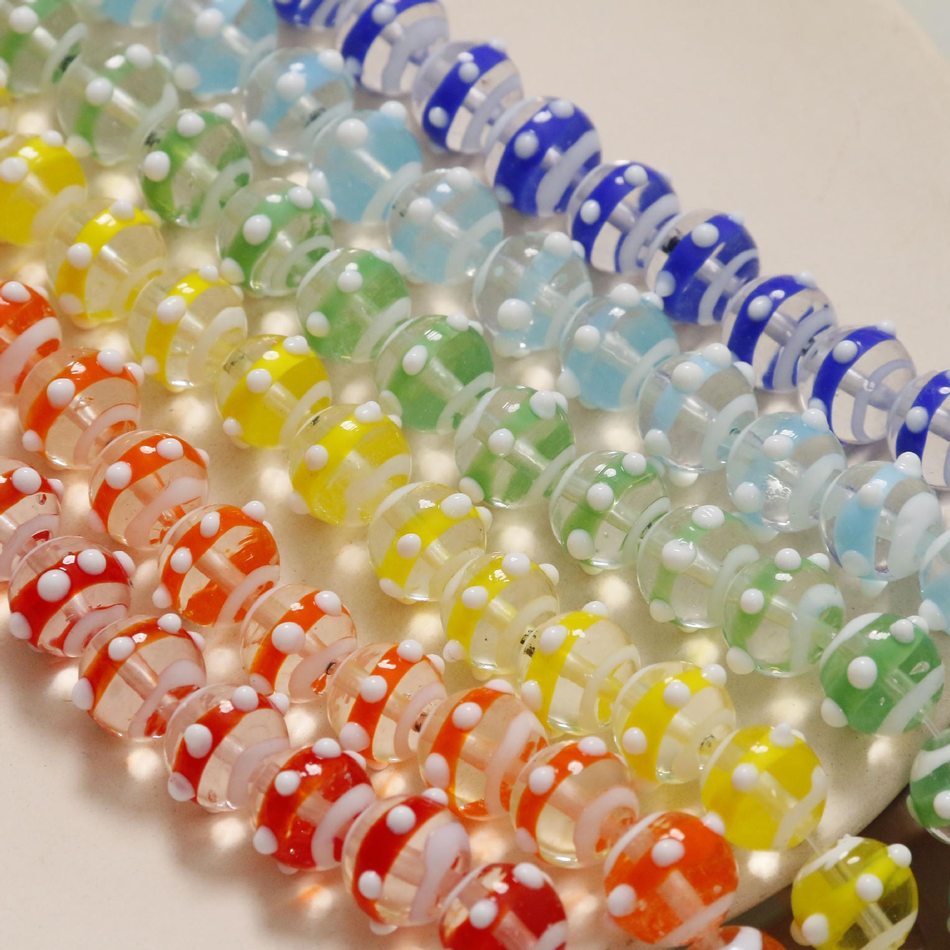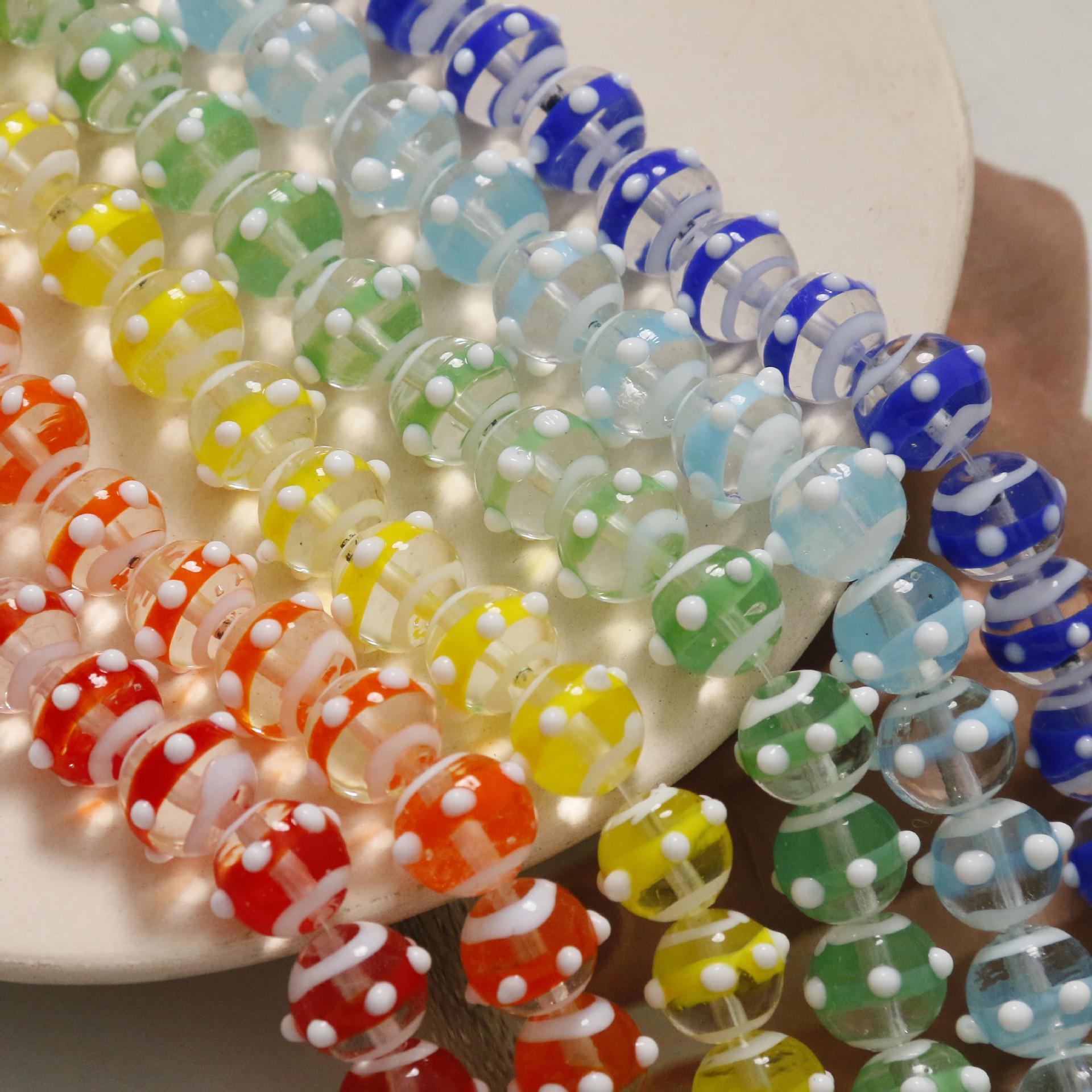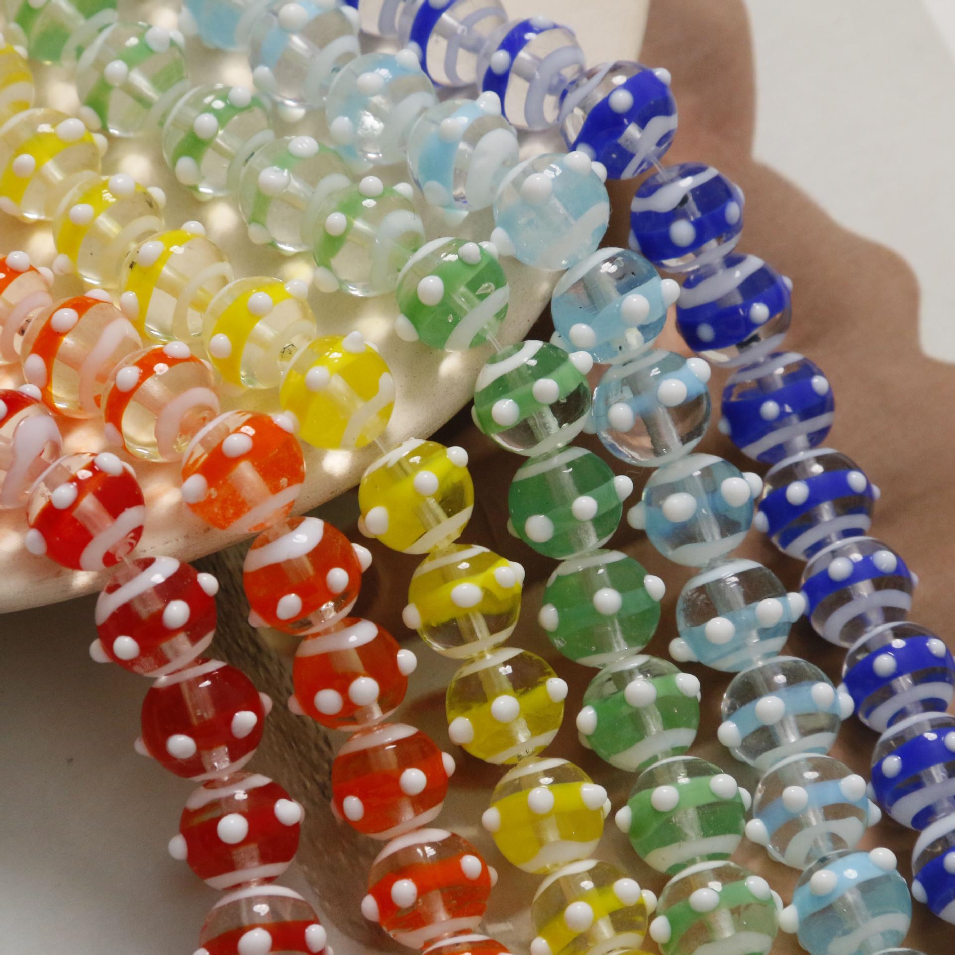 Colgante de pulsera con cuentas de agujero recto, de vidrio transparente, pintado a mano, con rayas y puntos blancos, para tocado, venta al por mayor
