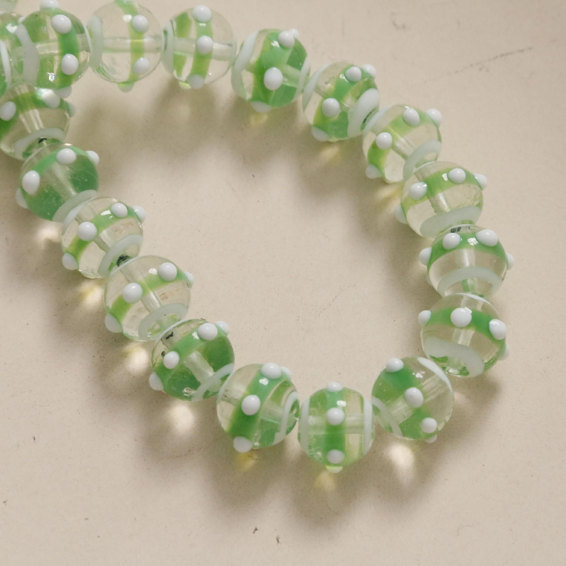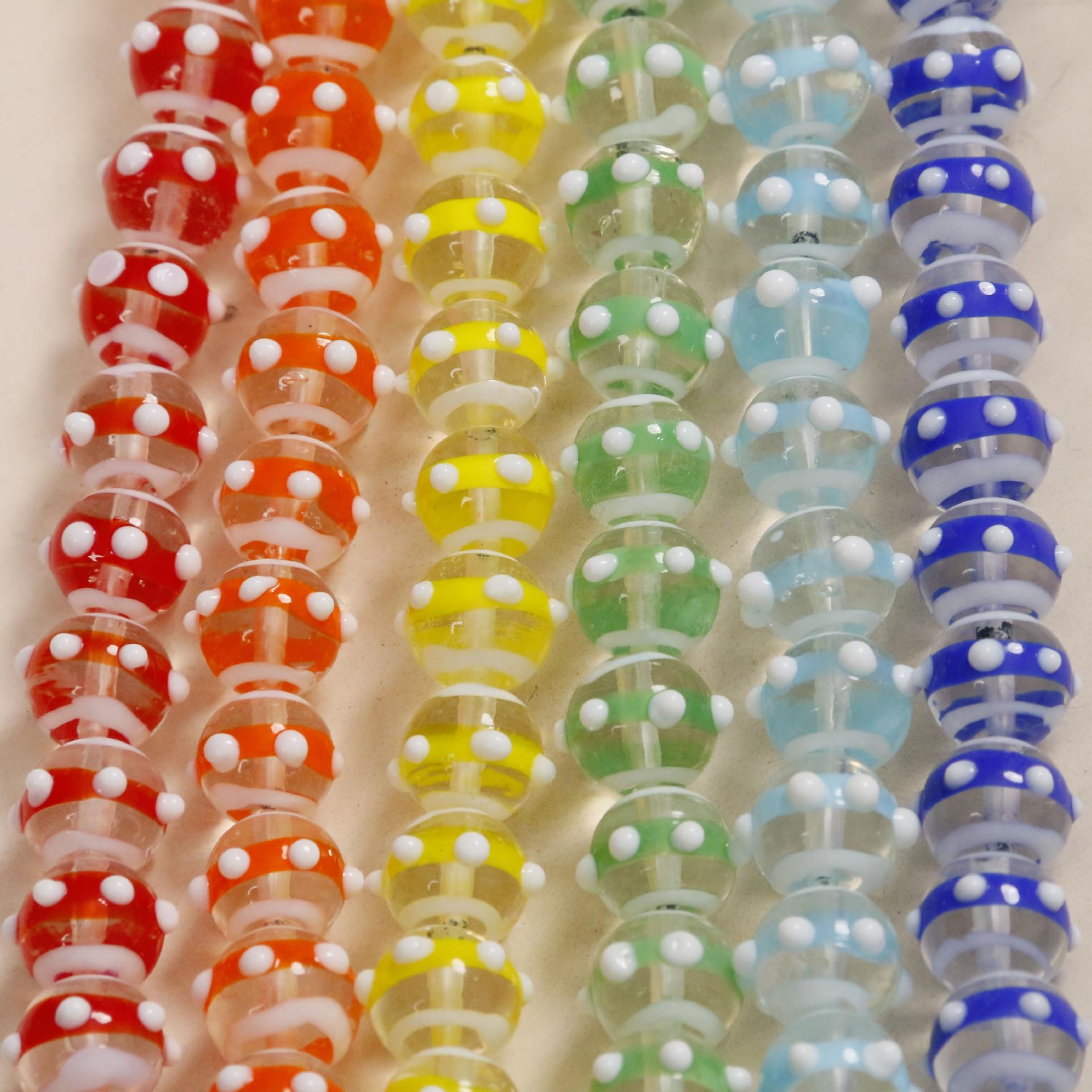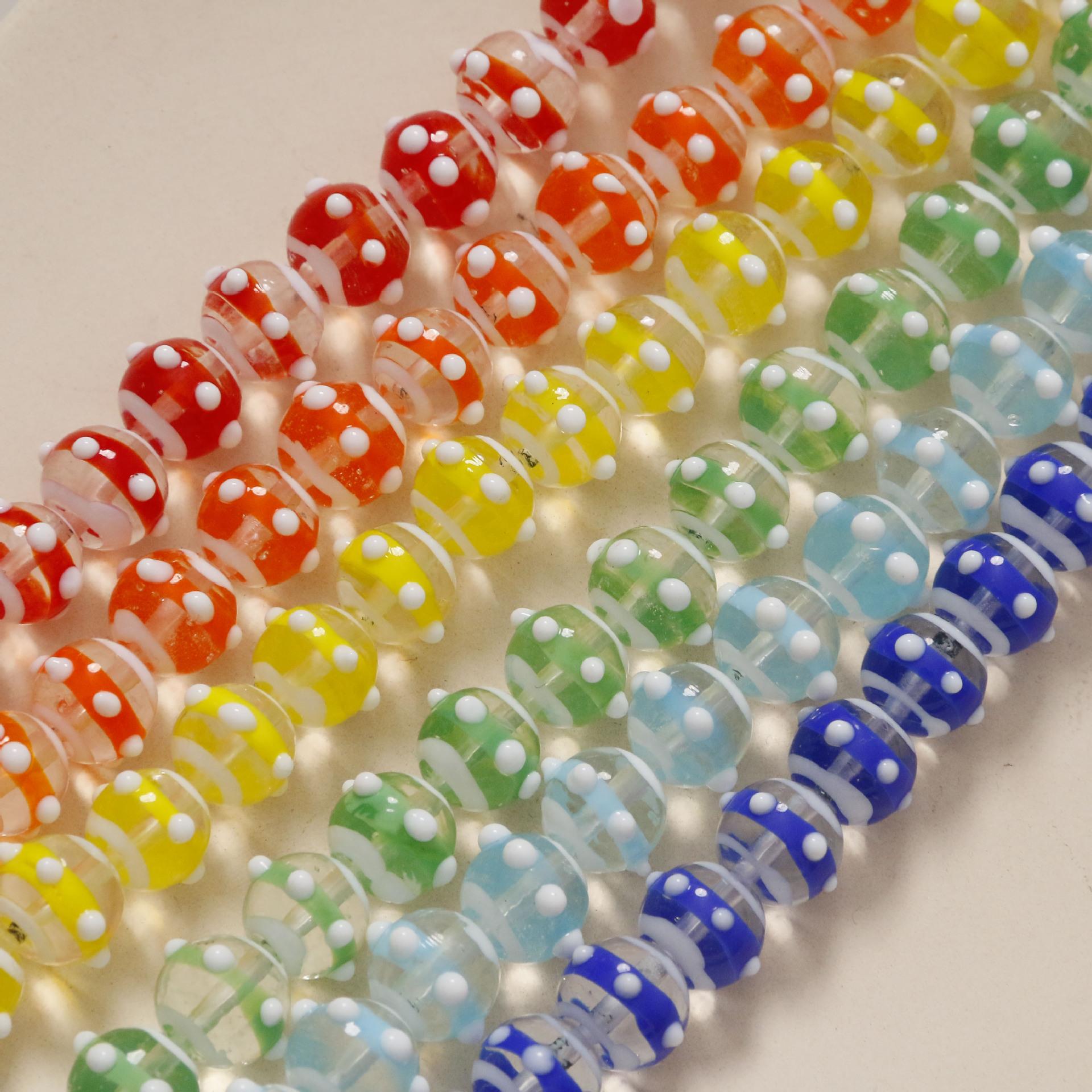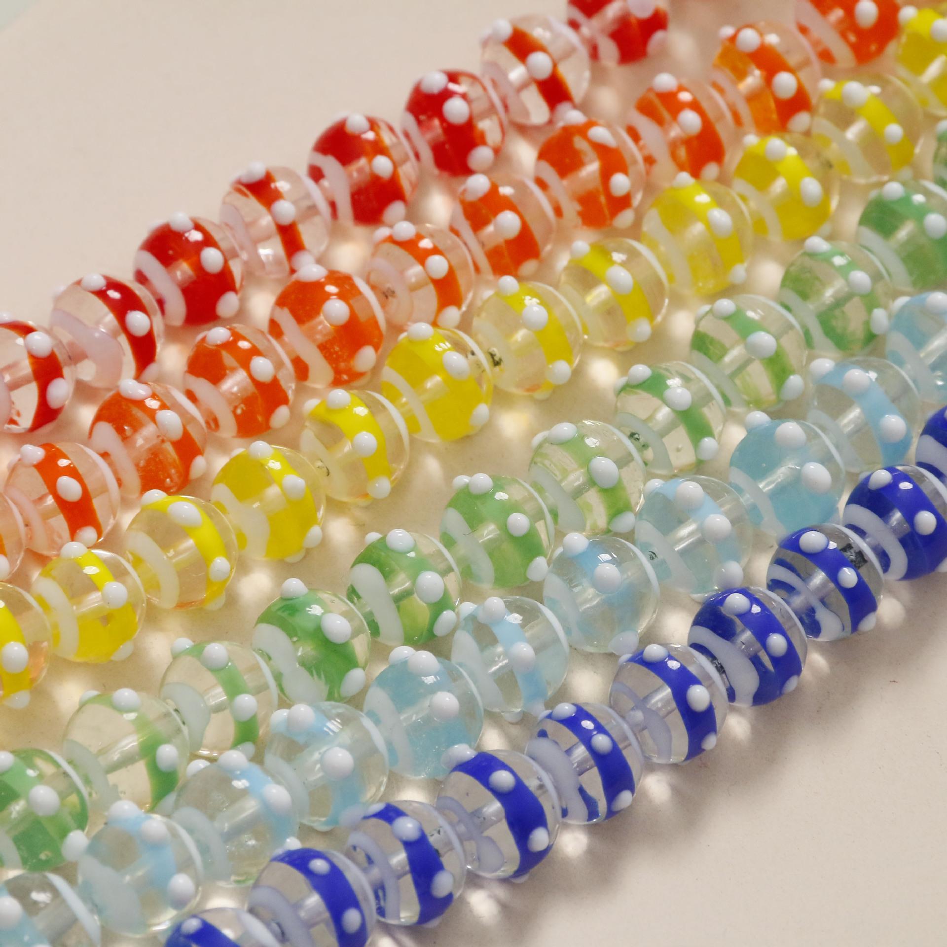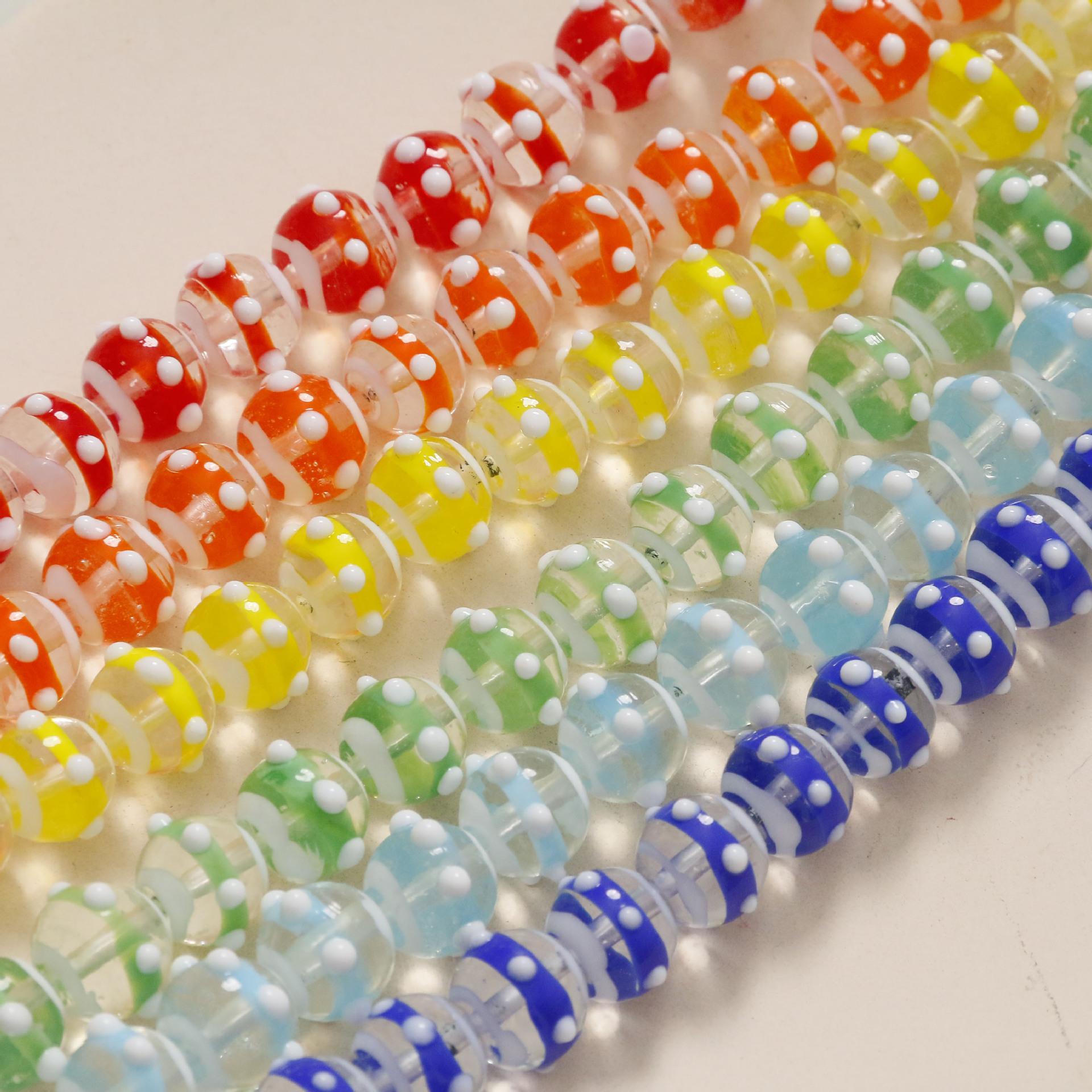 Colgante de pulsera con cuentas de agujero recto, de vidrio transparente, pintado a mano, con rayas y puntos blancos, para tocado, venta al por mayor
