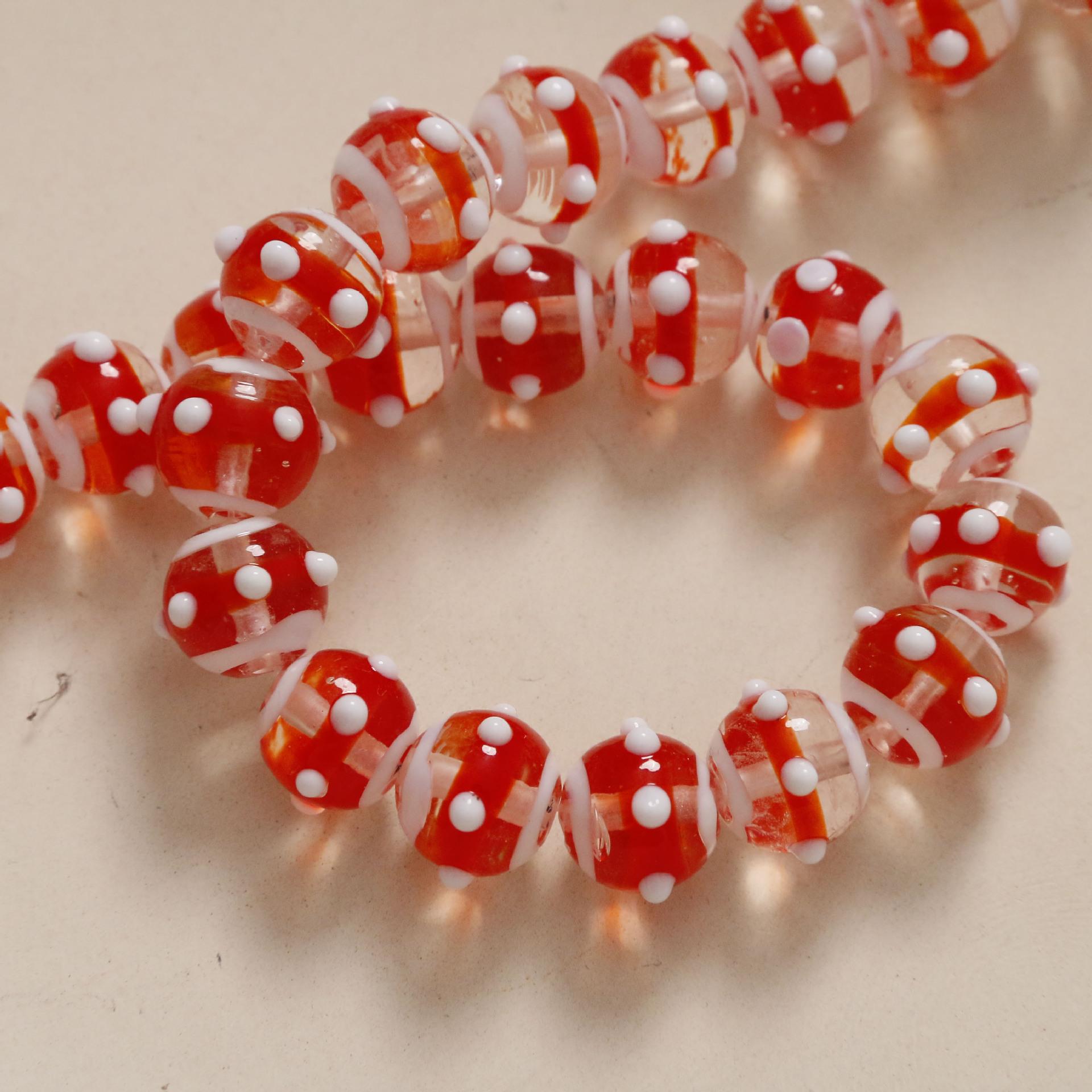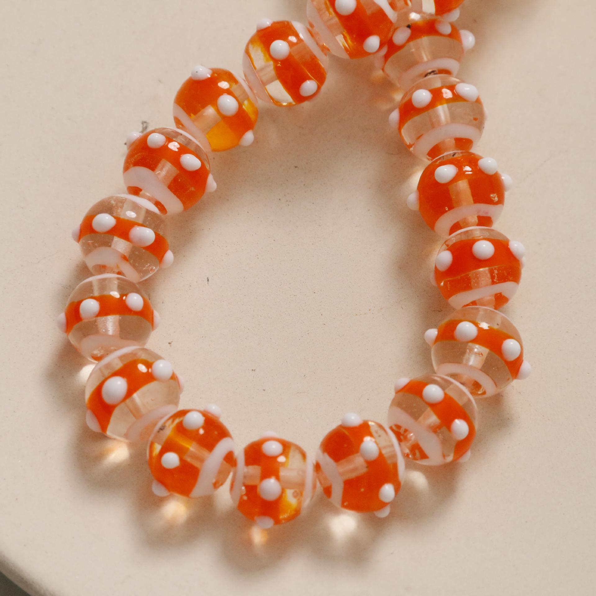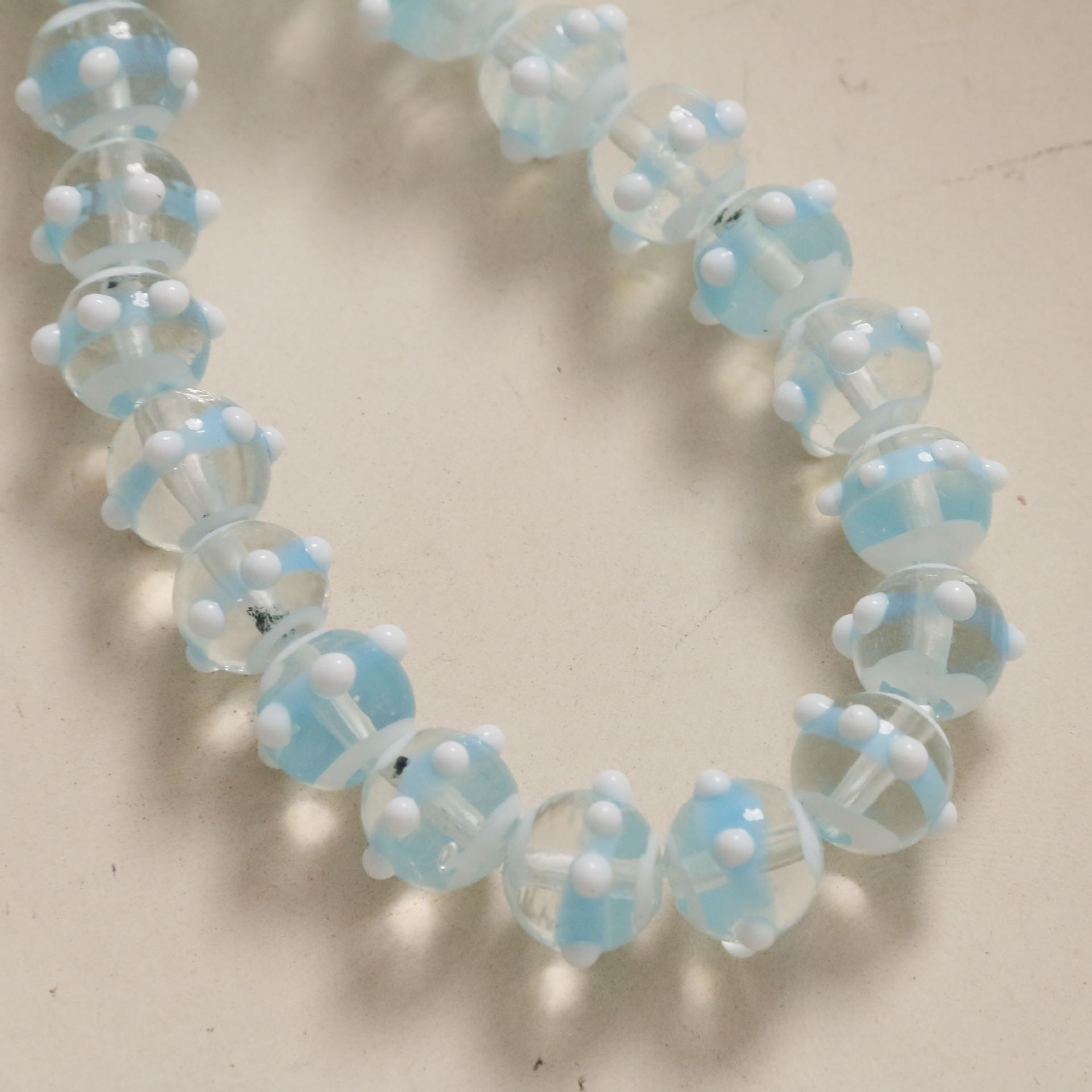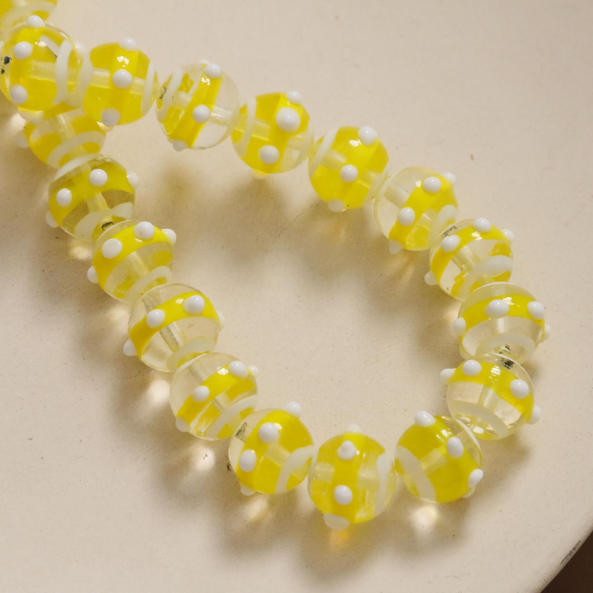 Colgante de pulsera con cuentas de agujero recto, de vidrio transparente, pintado a mano, con rayas y puntos blancos, para tocado, venta al por mayor