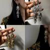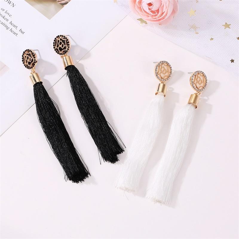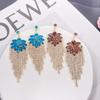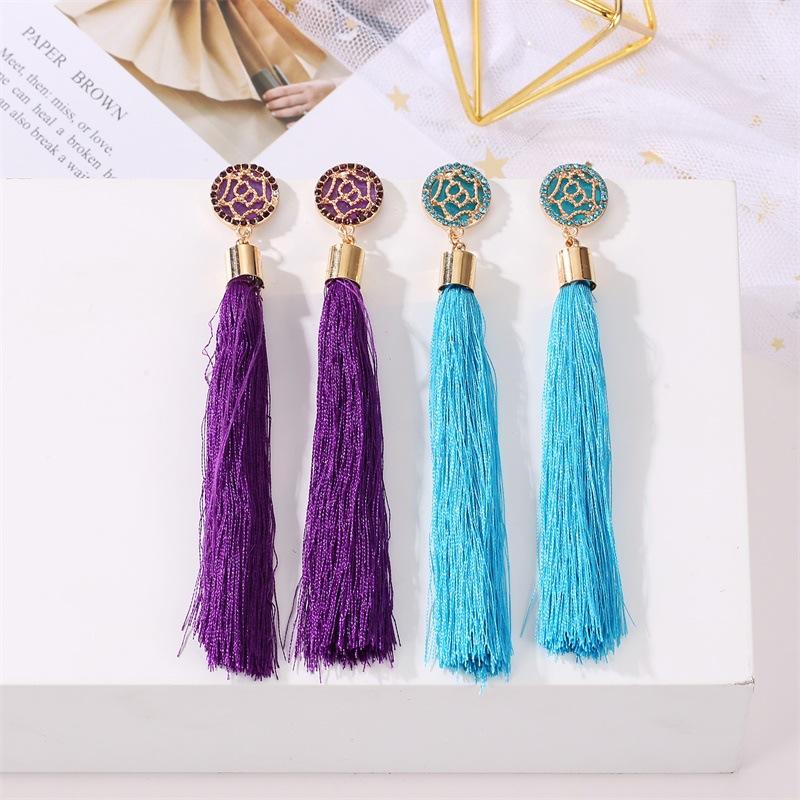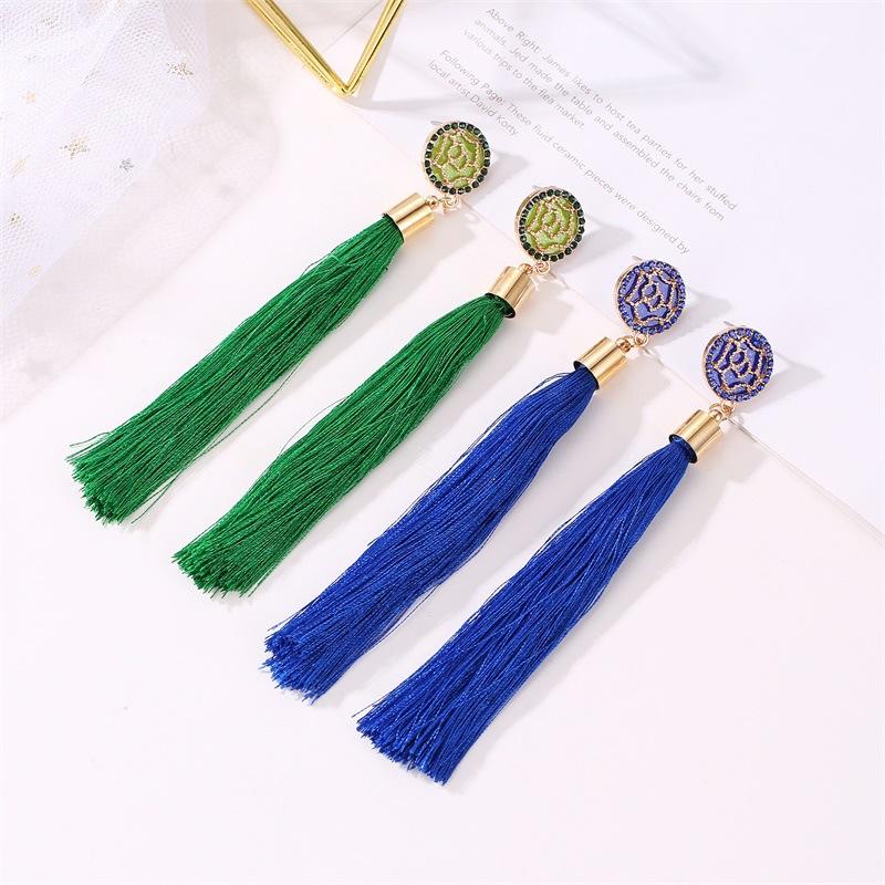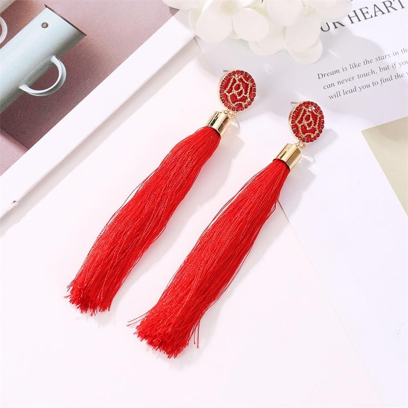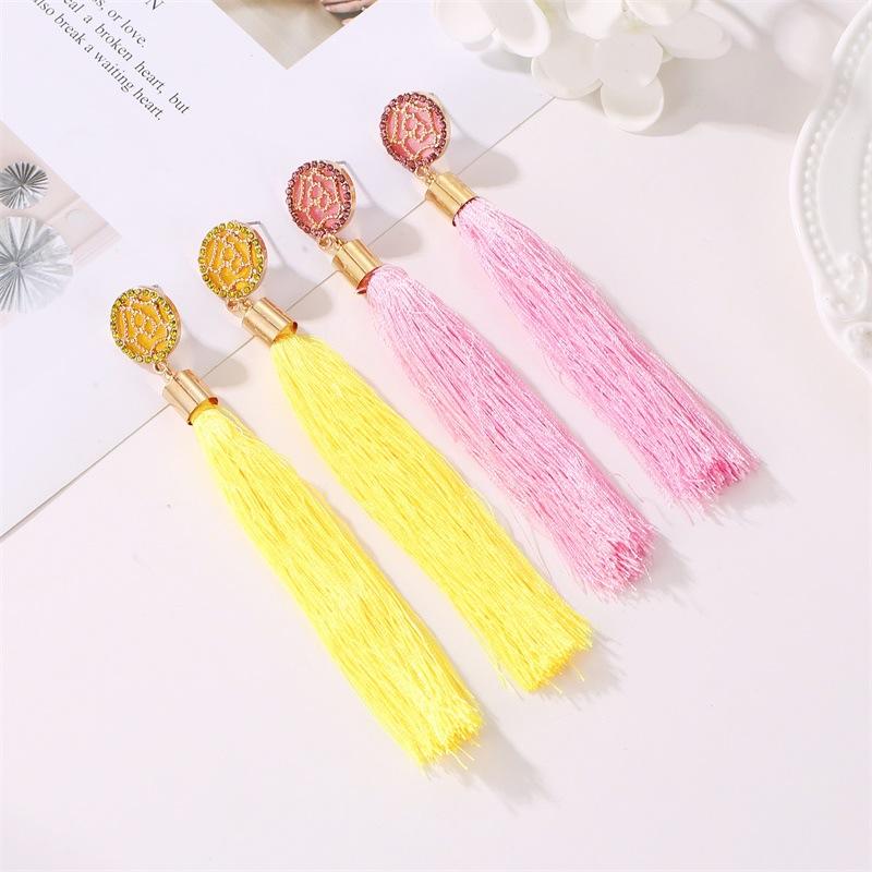 Pendientes largos con borlas de diamantes rosas, elegantes y exagerados, estilo bohemio étnico para mujer, estilo europeo y americano.