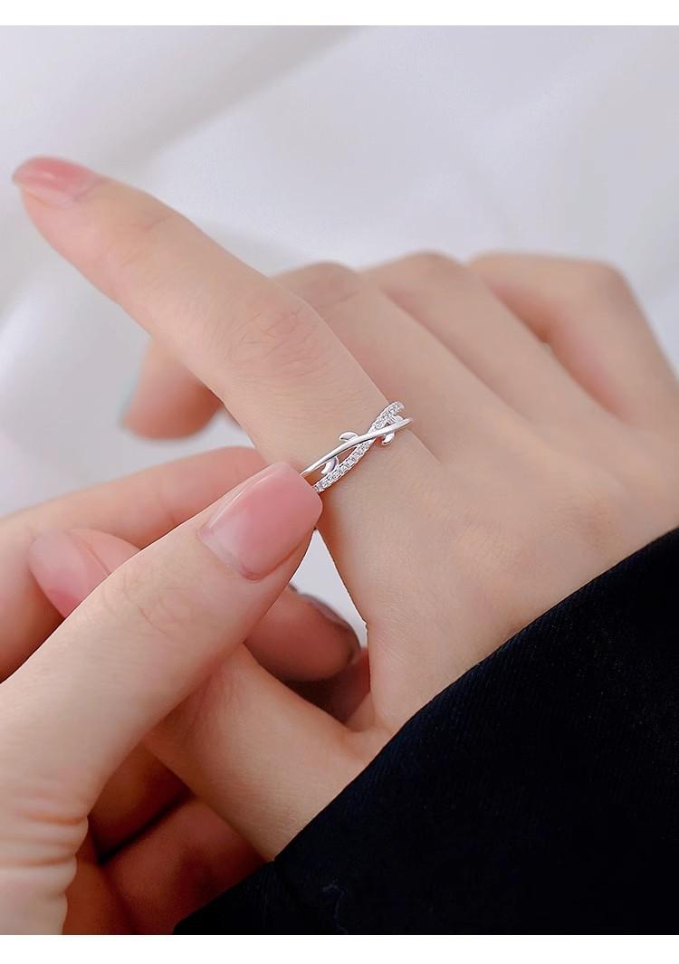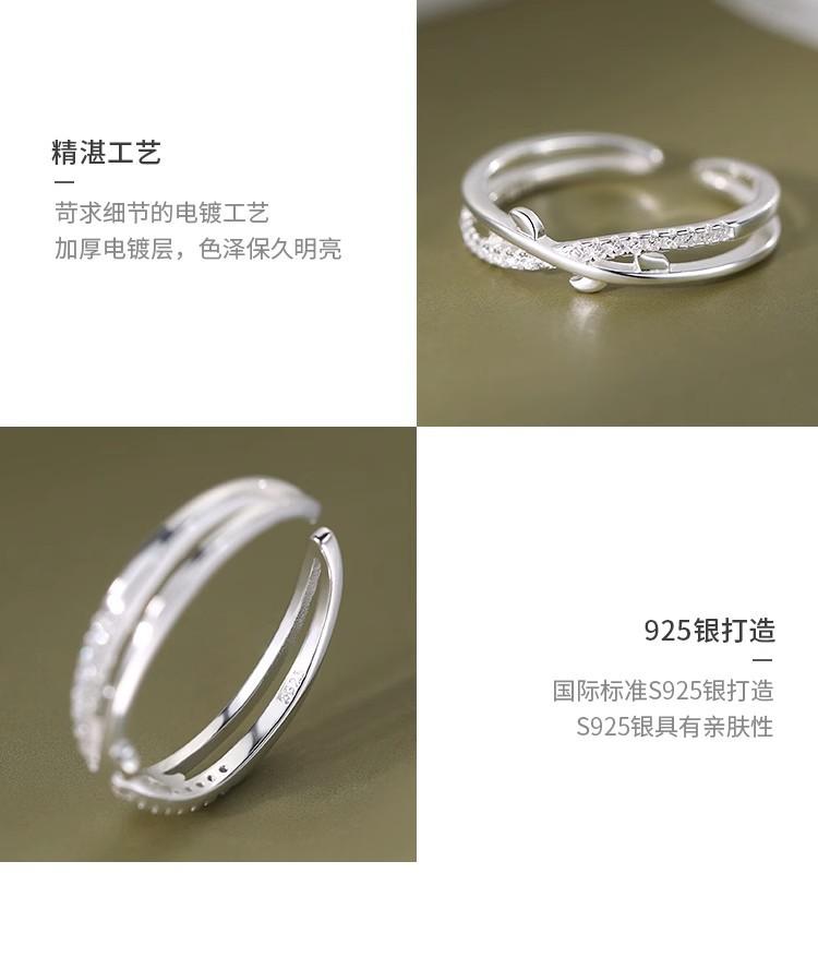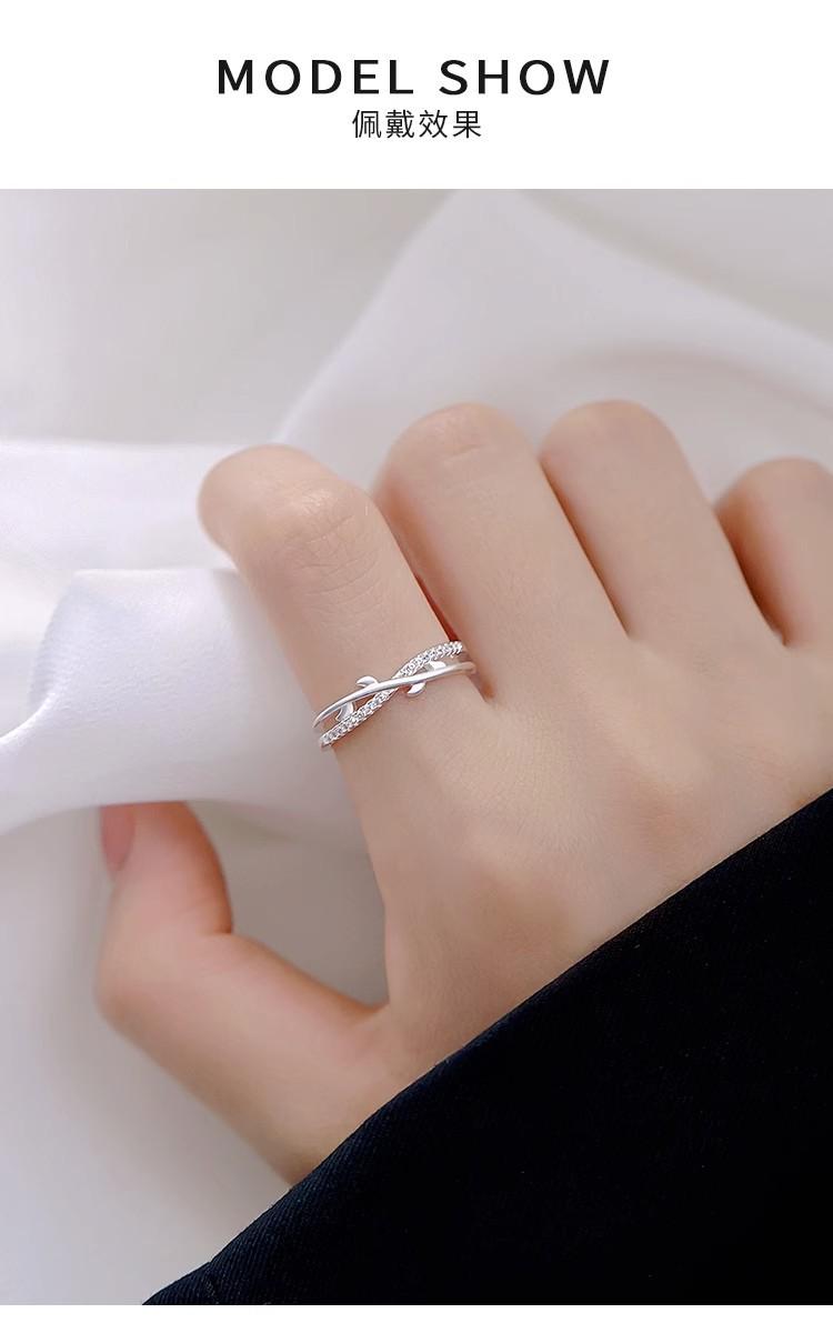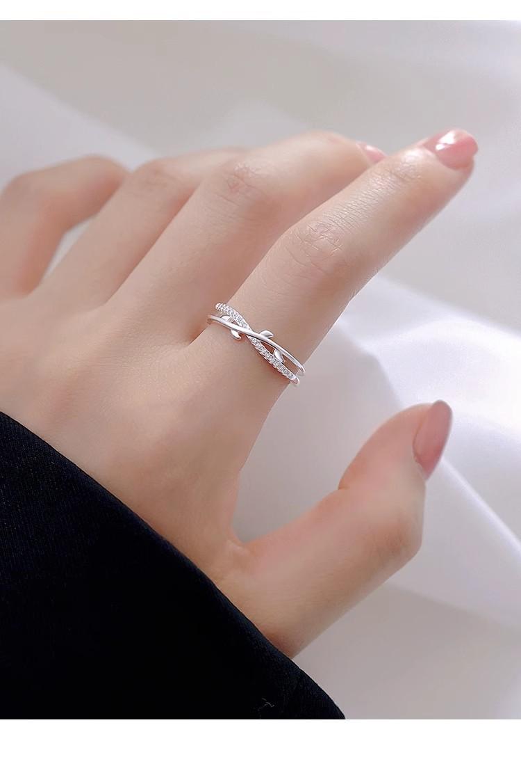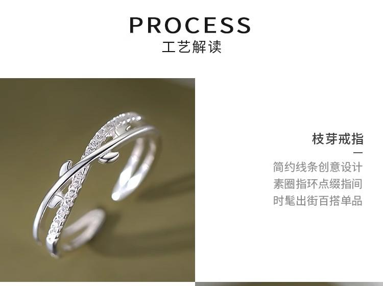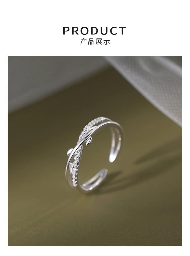 Anillo de plata de ley 925 con forma de rama de butín para mujer, estilo Mori, pequeño y fresco, con microincrustaciones de circonita cúbica, abierto y explosivo.
