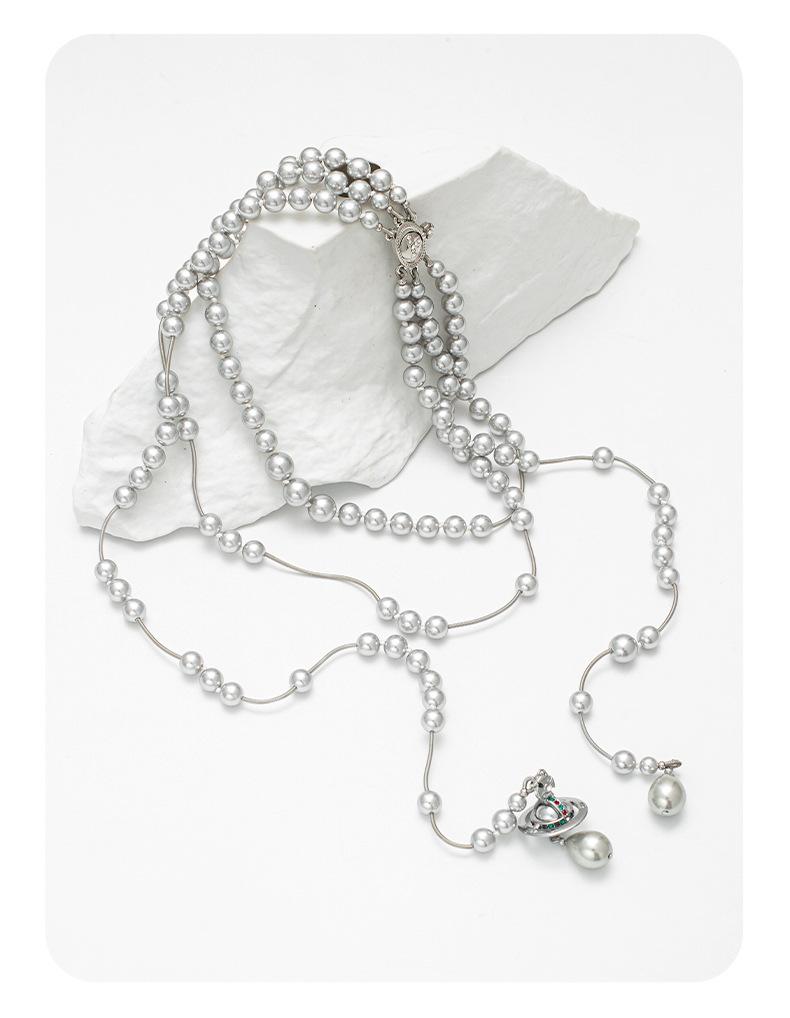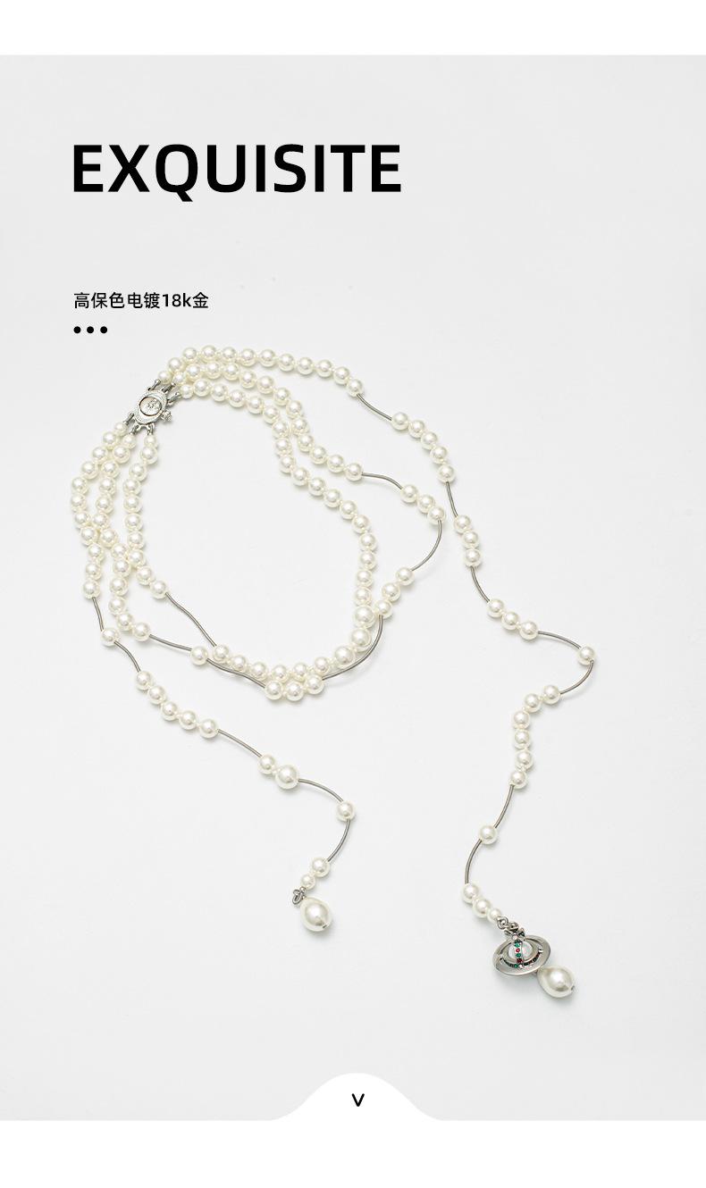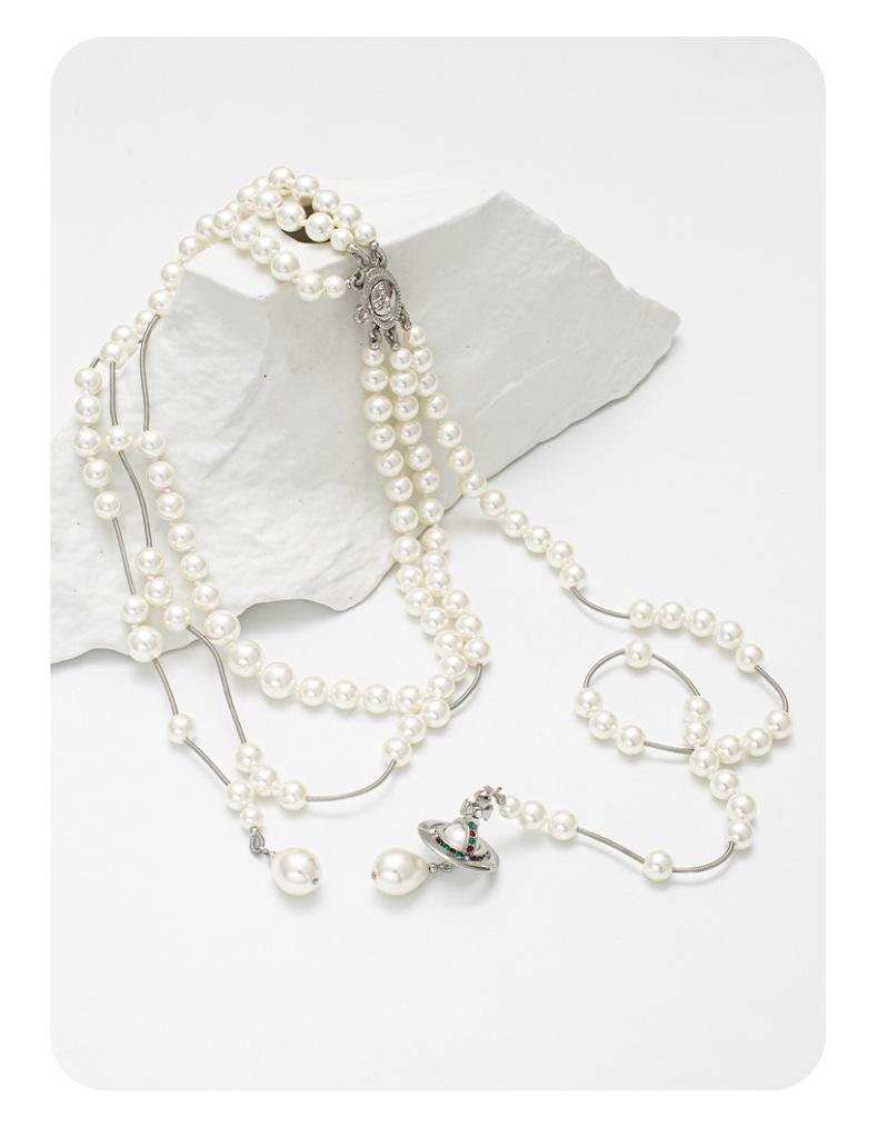 Collar de Perlas Saturno de Múltiples Capas para Mujer de Alta Calidad Collar con Borla Reina Madre Personalizado Más Fácil de Combinar Temperamento Lujoso Ligero Cadena para Suéter
