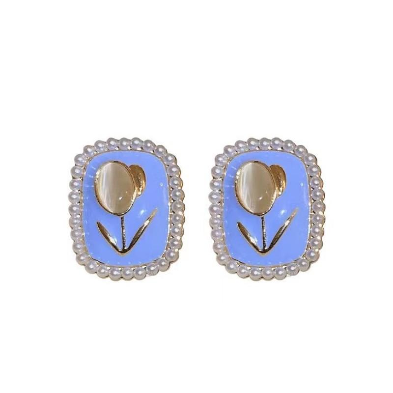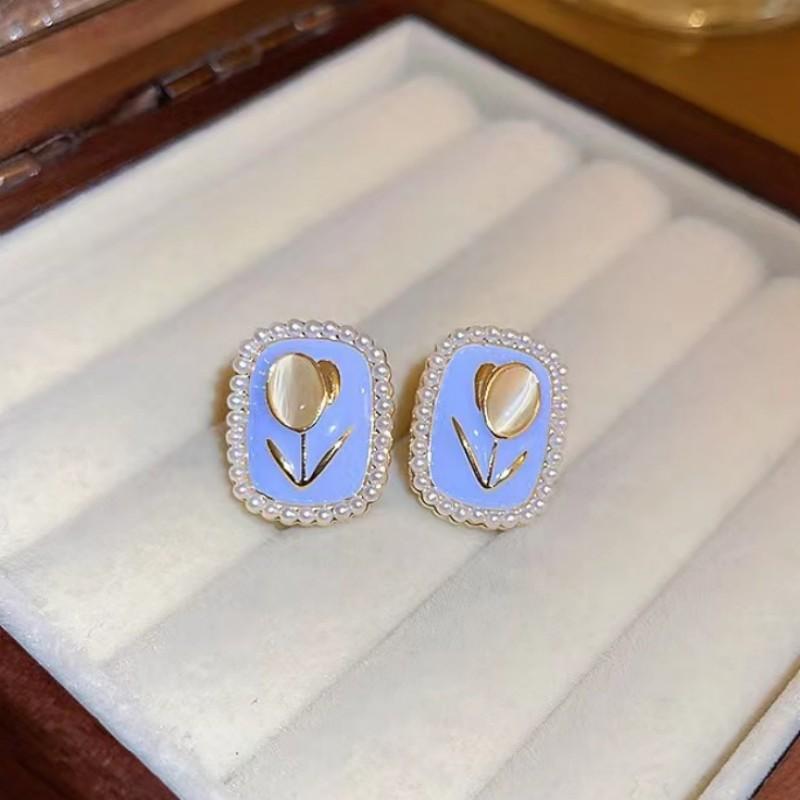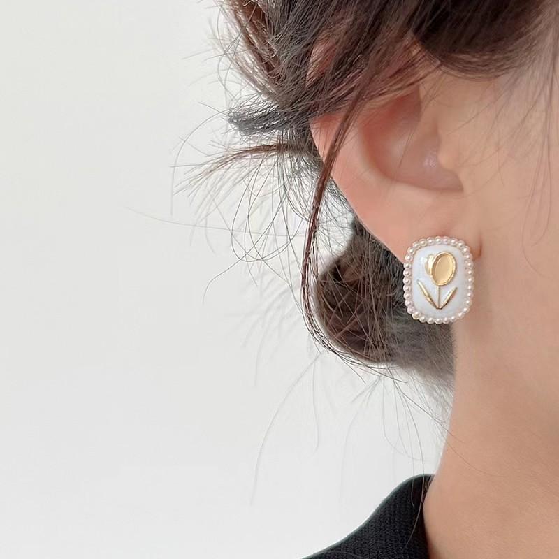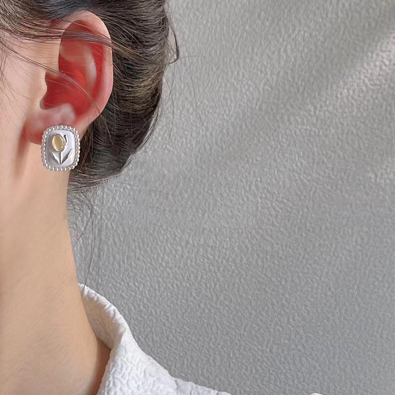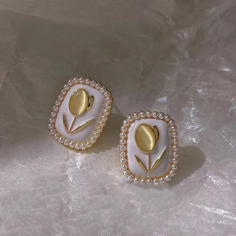 Compra Pendientes de tulipán con forma de ojo de gato de alta gama, estilo francés coreano, ligeros y elegantes, de plata S925, con aguja y perla cuadrada para mujer. al por mayor en Joom.pro