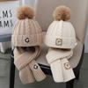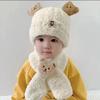 Sombreros, bufandas y guantes para niños de otoño e invierno, conjunto de dos piezas, gorro de lana de oso con forro polar cálido para invierno para niños y niñas