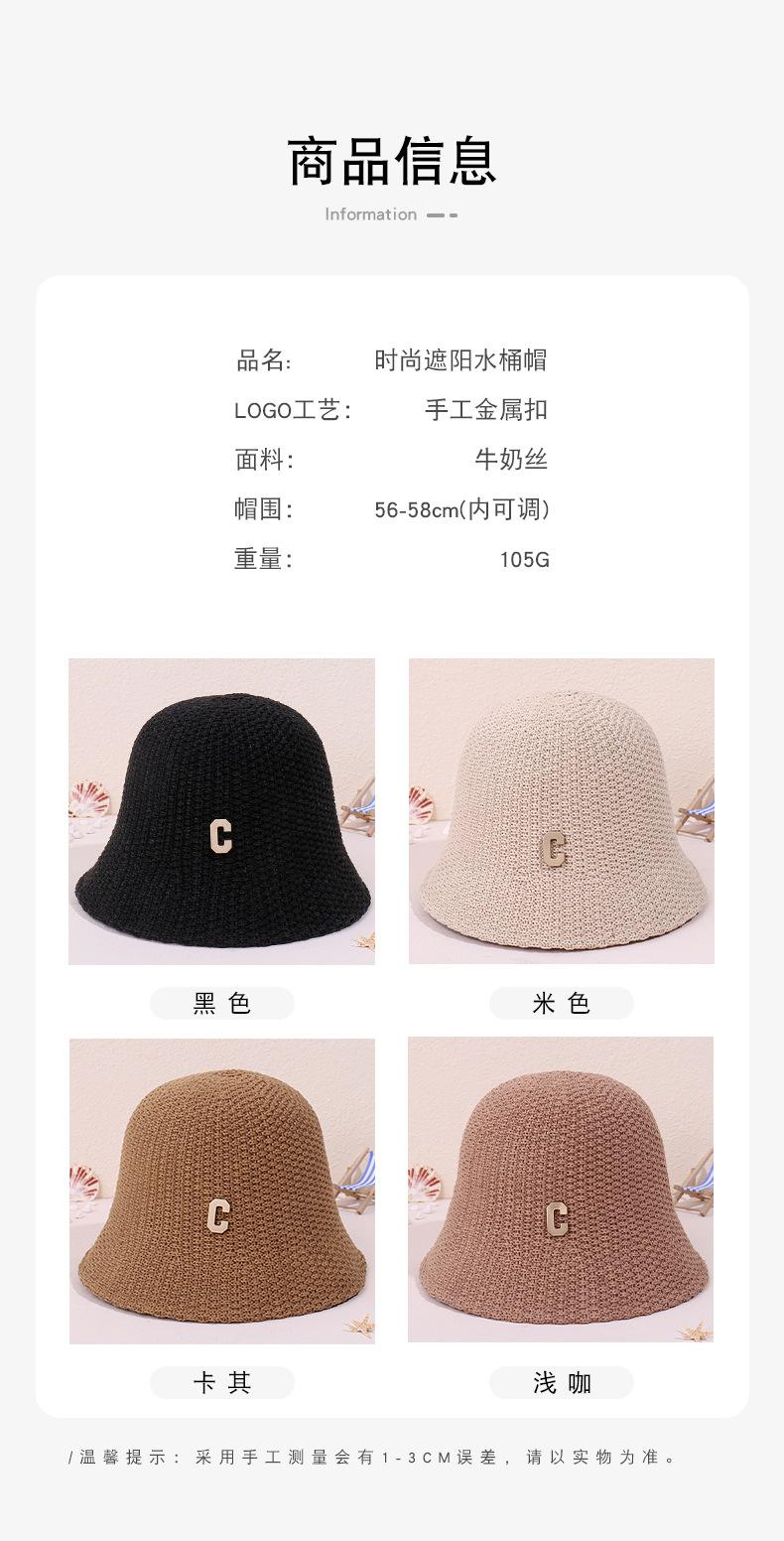 Sombrero de cubo tejido estilo coreano para primavera y otoño para mujer, sombrero de pescador versátil que hace que la cara se vea pequeña, sombrero de verano para viaje a prueba de sol, sombrero de moda