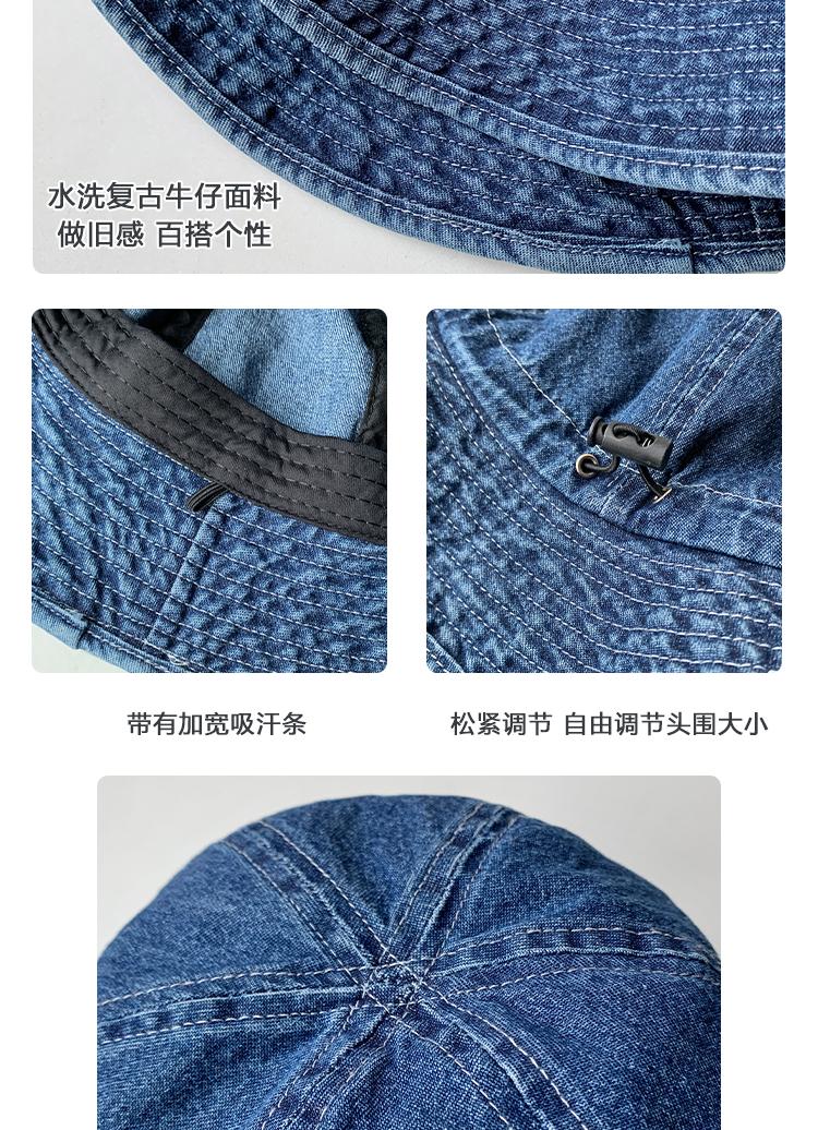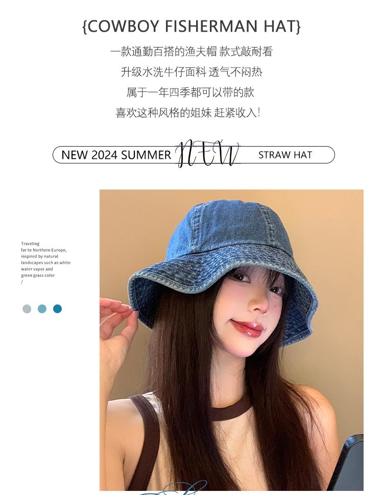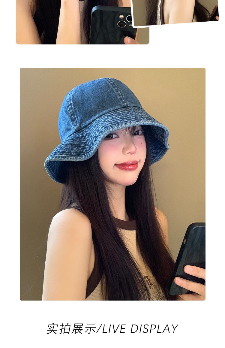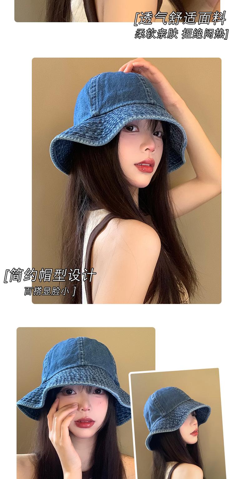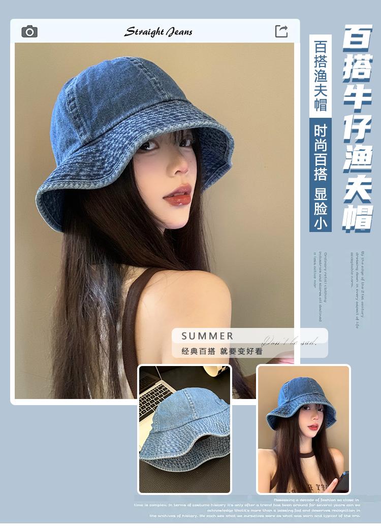 Sombrero de pescador de mezclilla para mujer, primavera y verano, japonés, grande, parasol, protector solar, sombrero de lavabo, combina con todo, pequeño sombrero de cubo que muestra la cara, moderno