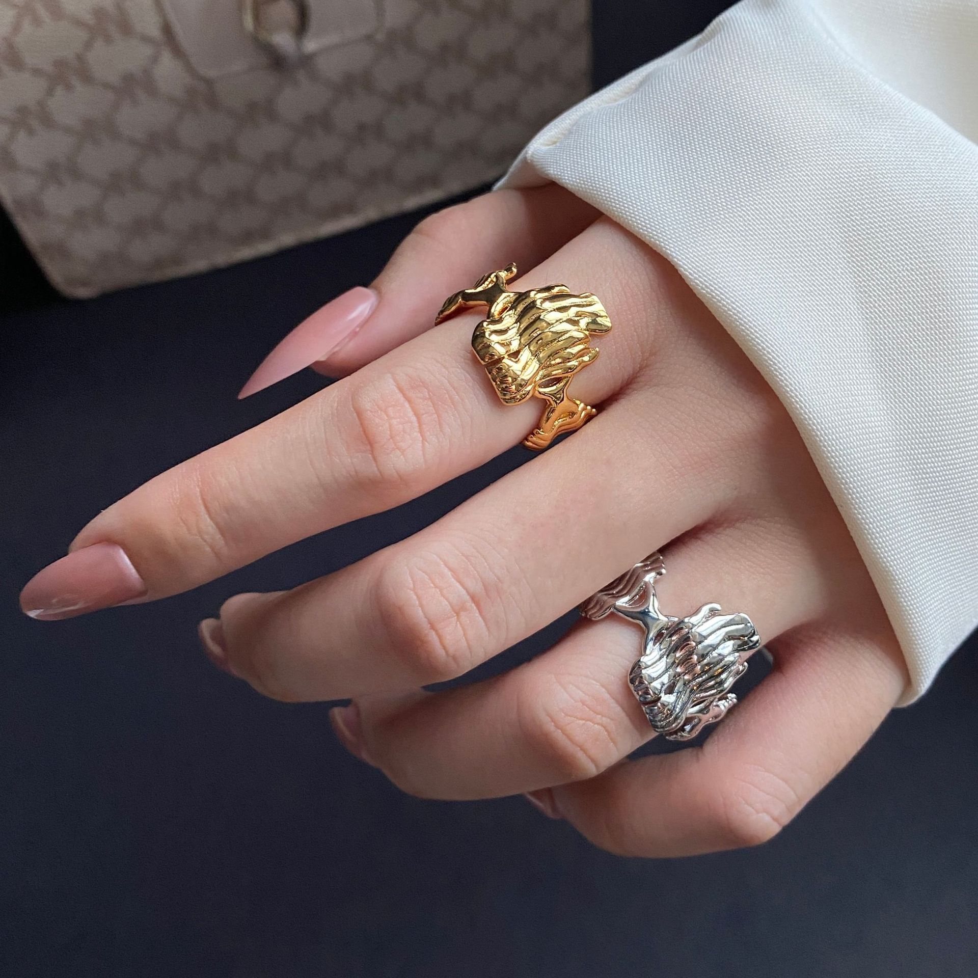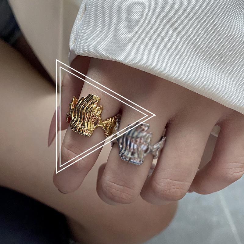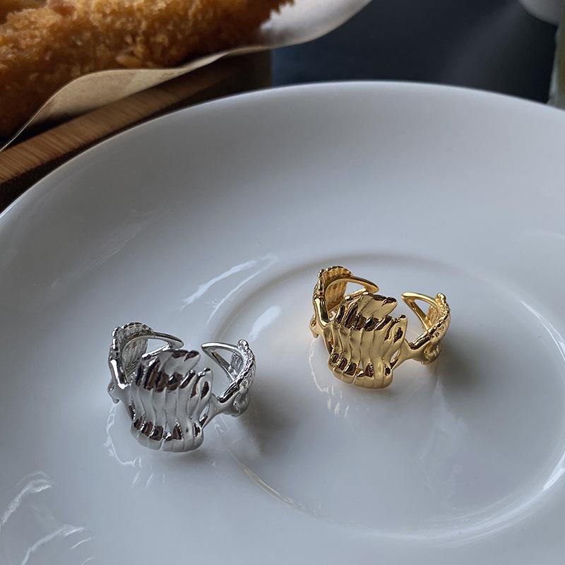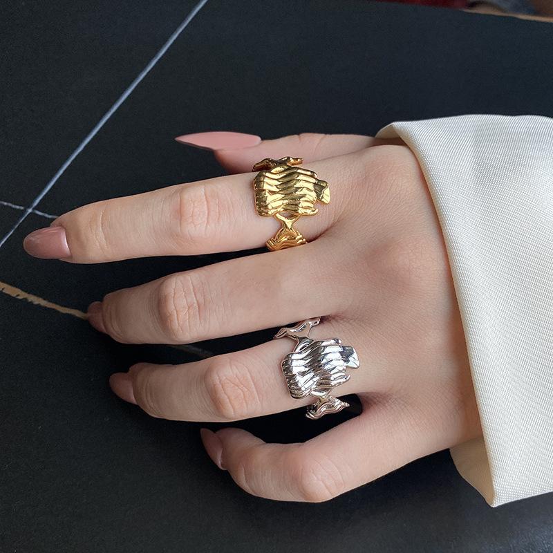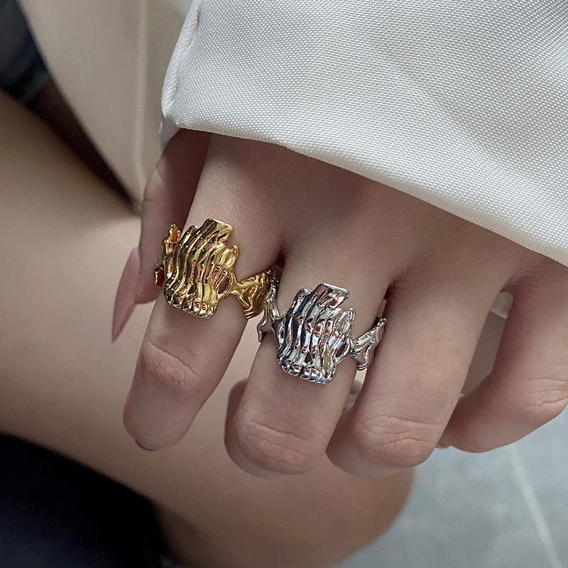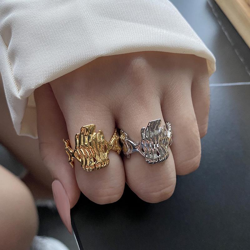 Anillo de espina de pescado creativo con diseño de nicho, temperamento femenino, elegante anillo de articulación abierta para chica, joyería de tiro callejero estilo Hong Kong