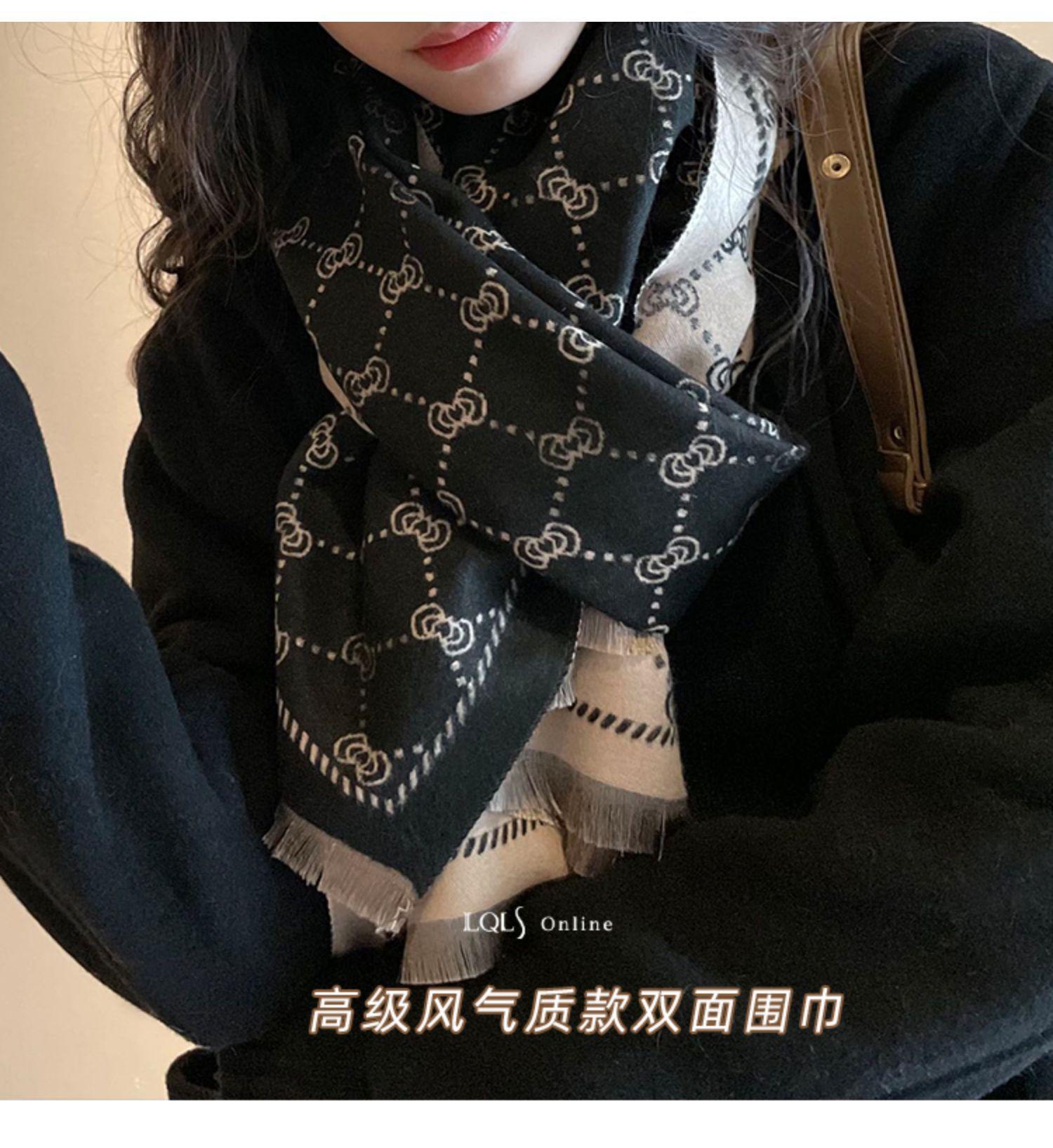 Bufanda Clásica y Elegante Gruesa de Doble Cara Negra para Mujer en Invierno Estilo Coreano Bufanda Cálida a la Moda Chal de Alta Gama