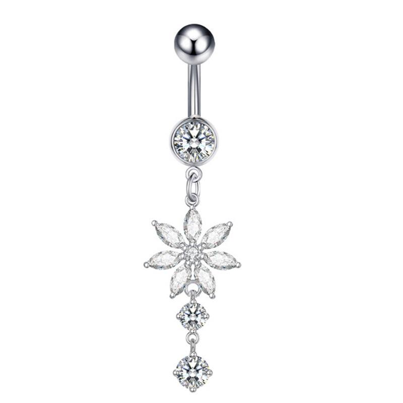 Colgante de acero inoxidable anillo para el ombligo de flor larga con flor de circonita incrustada anillo para el ombligo creativo clavo para el ombligo joyería para piercing corporal Cien