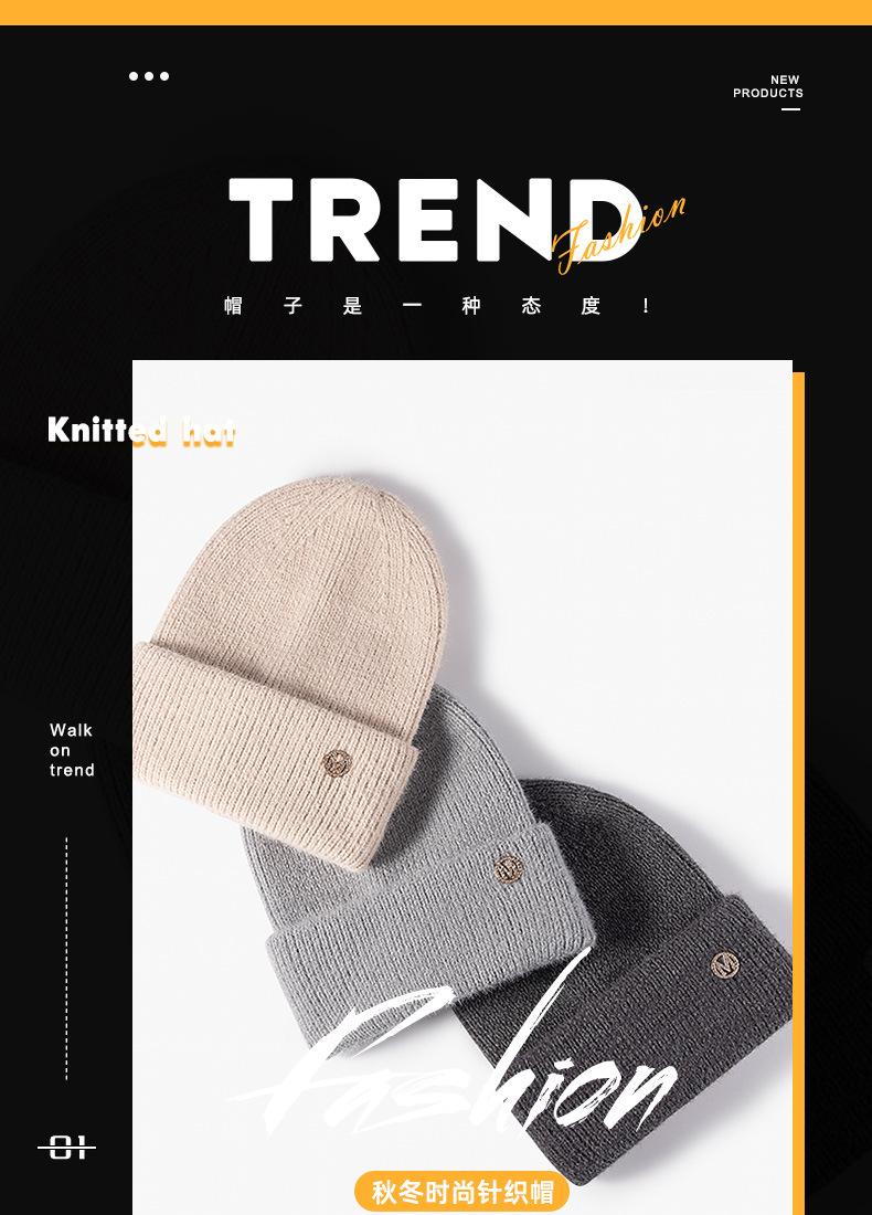 Gorro coreano de otoño e invierno para mujer, estilo M, de moda, pequeño, cálido, grueso, de lana tejida, para exteriores, para el frío.