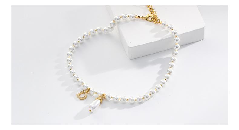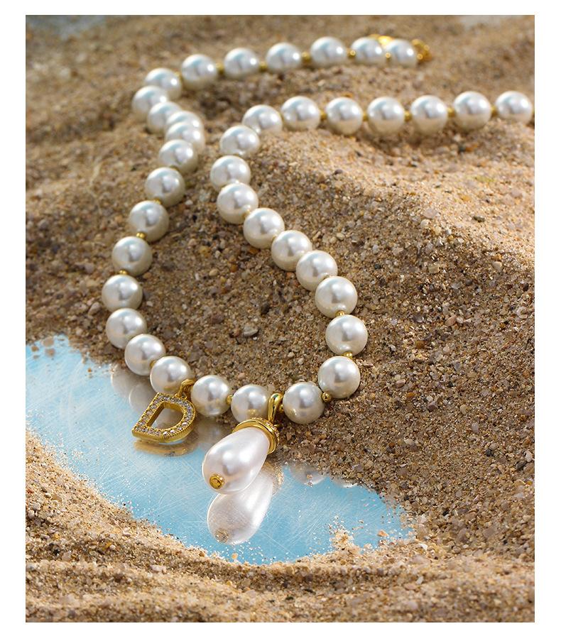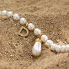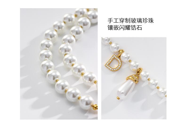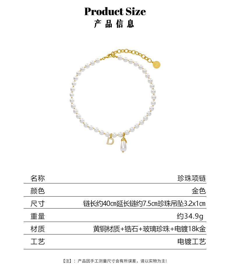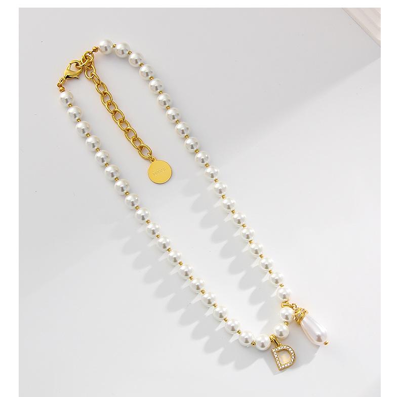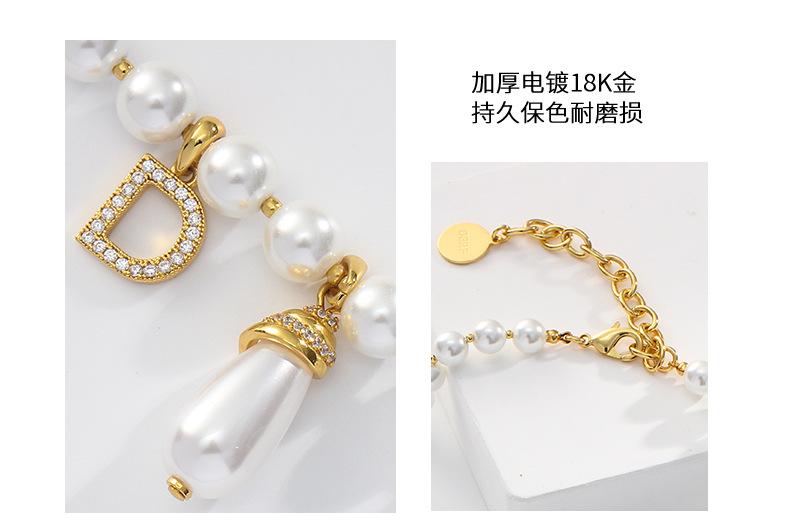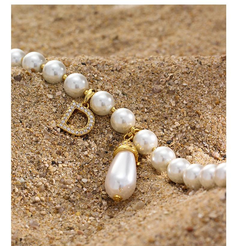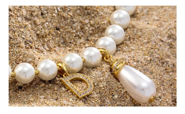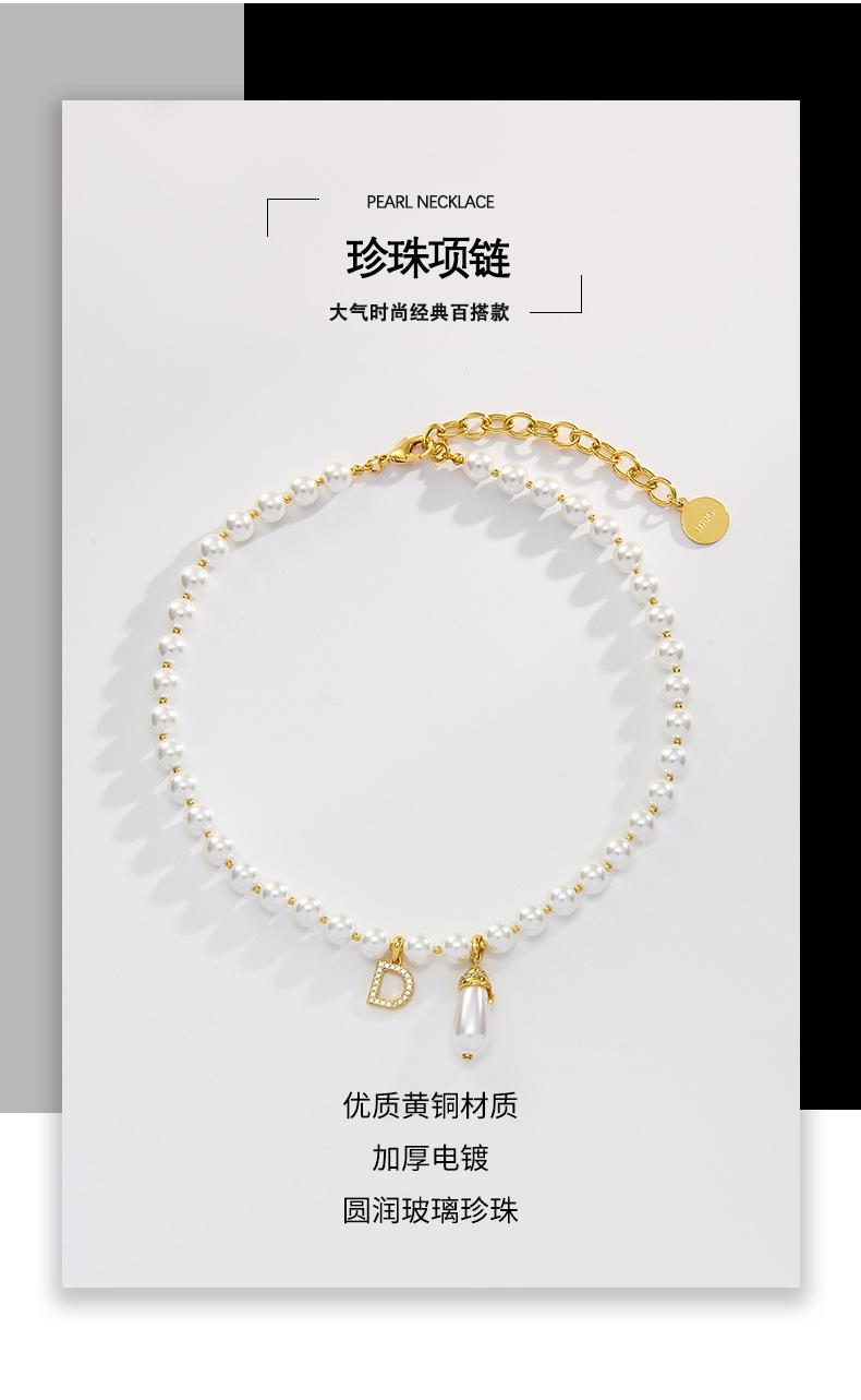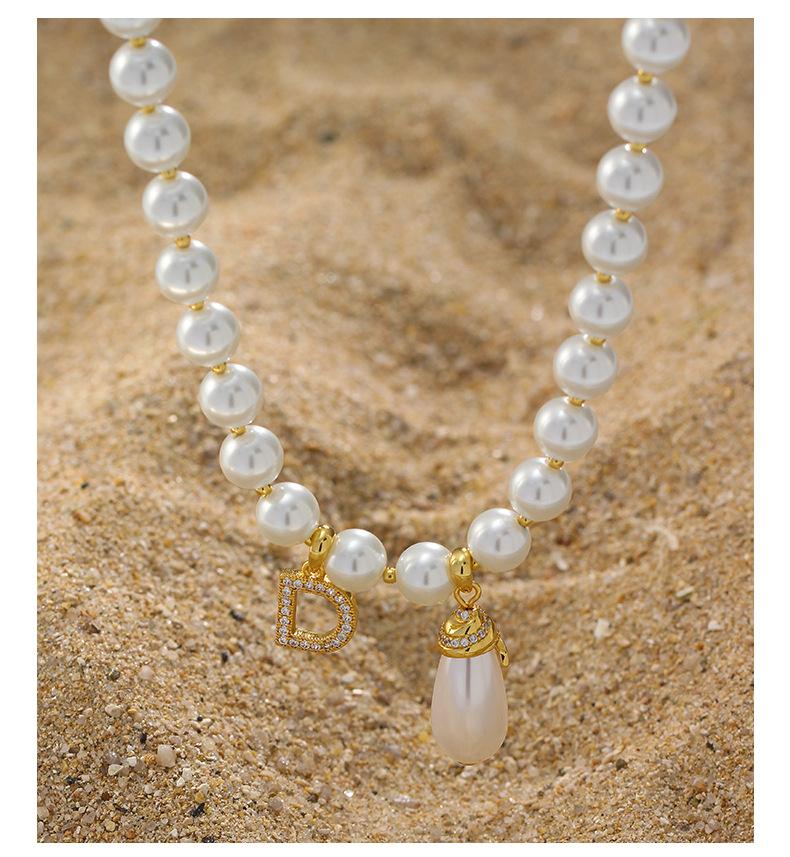 Elegante collar de perlas con colgante de letra de diamante, collar de suéter, sencillo, ligero, de lujo, elegante, combinable con todo, collar de cadena de clavícula para mujer