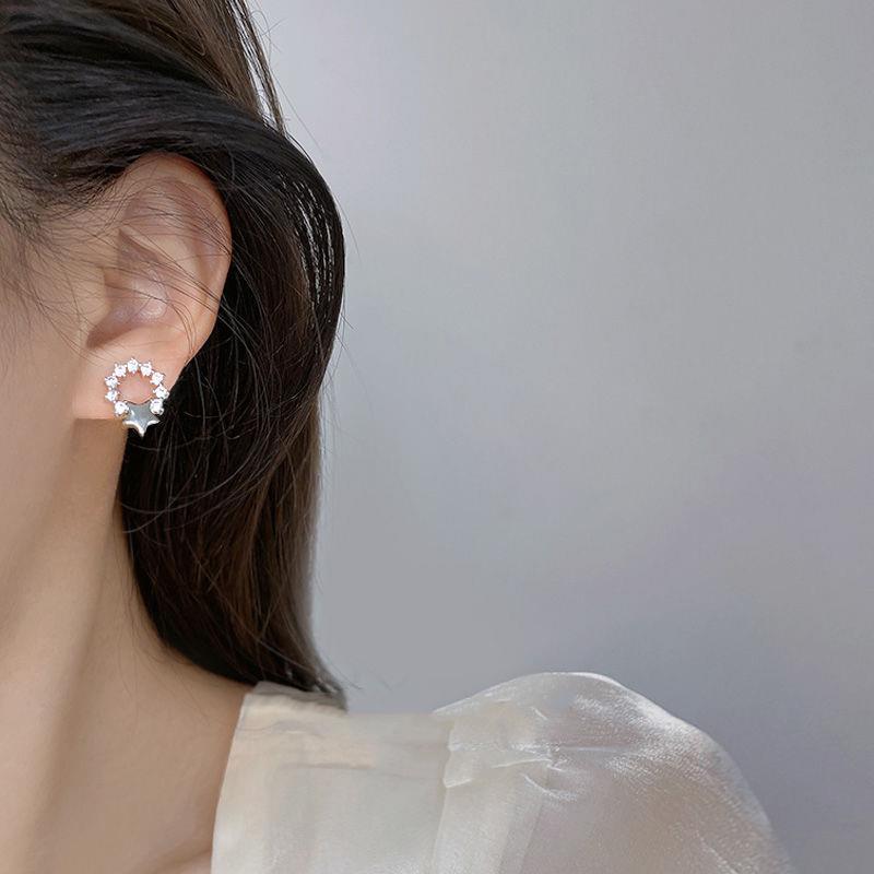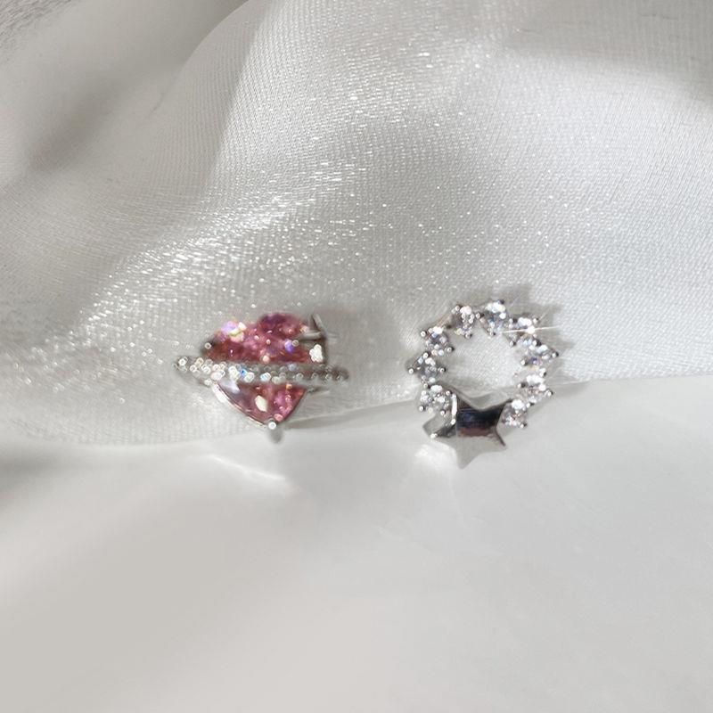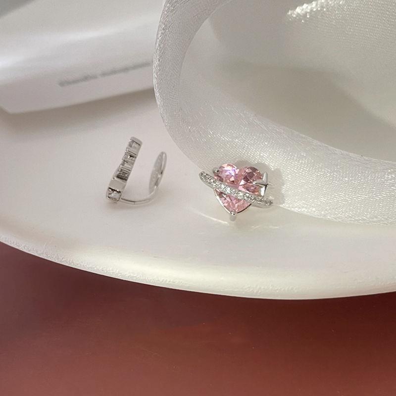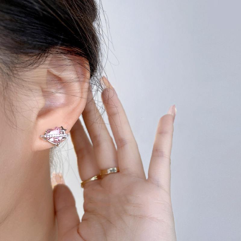 Pink diamond asymmetric mosquito coil ear clip pair, A pair of pink diamond asymmetric ear studs