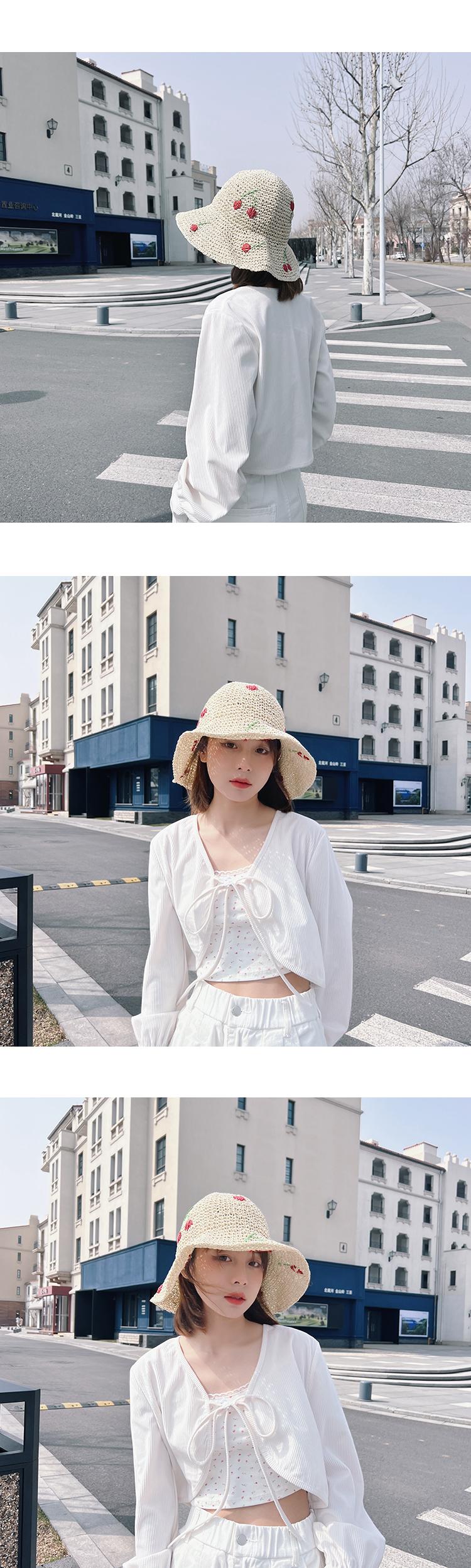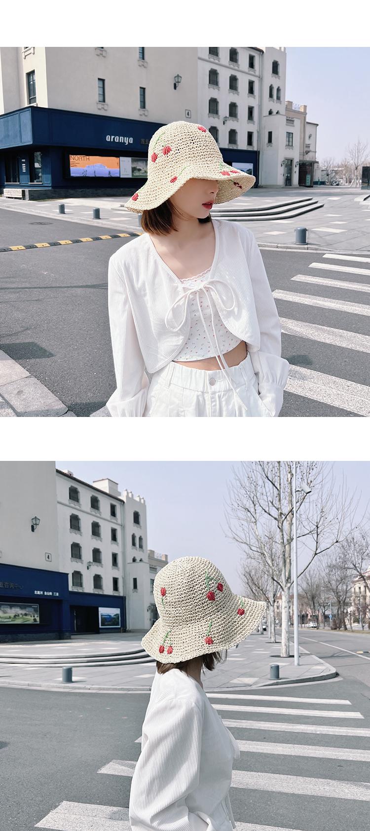 Sombrero de Paja Tejido Hecho a Mano Dulce Lindo Cereza Sombrero de Sol para Playa Vacaciones de Verano para Mujer Sombrero para el Sol Protector Solar Sombrero de Sombra Moderno