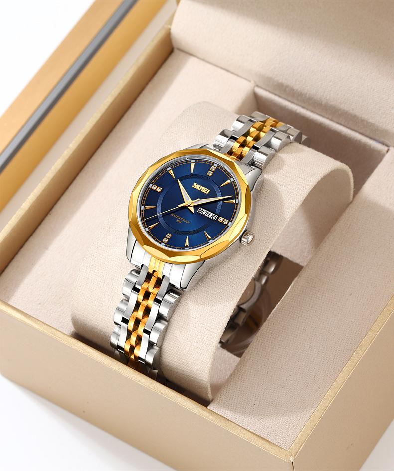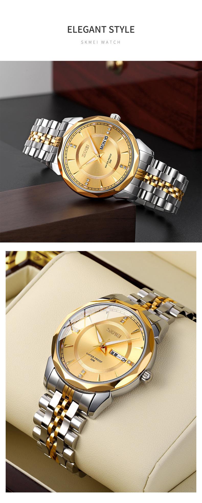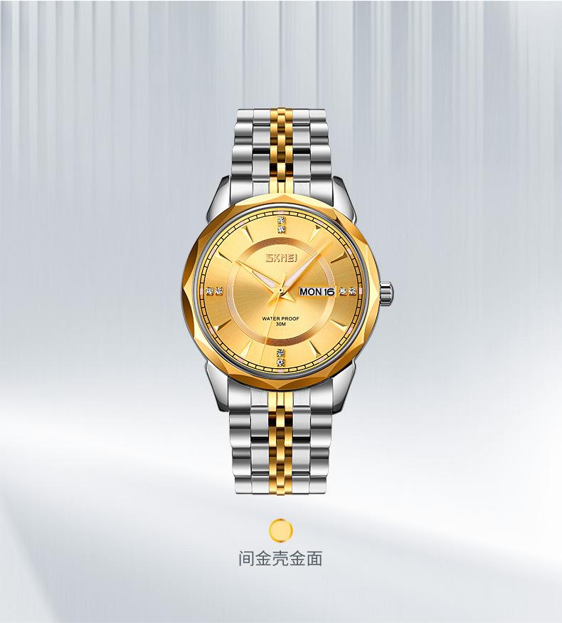 Reloj de negocios Time Beauty Fashion para hombre, con doble calendario, correa de acero inoxidable sólido, resistente al agua, de cuarzo, venta al por mayor