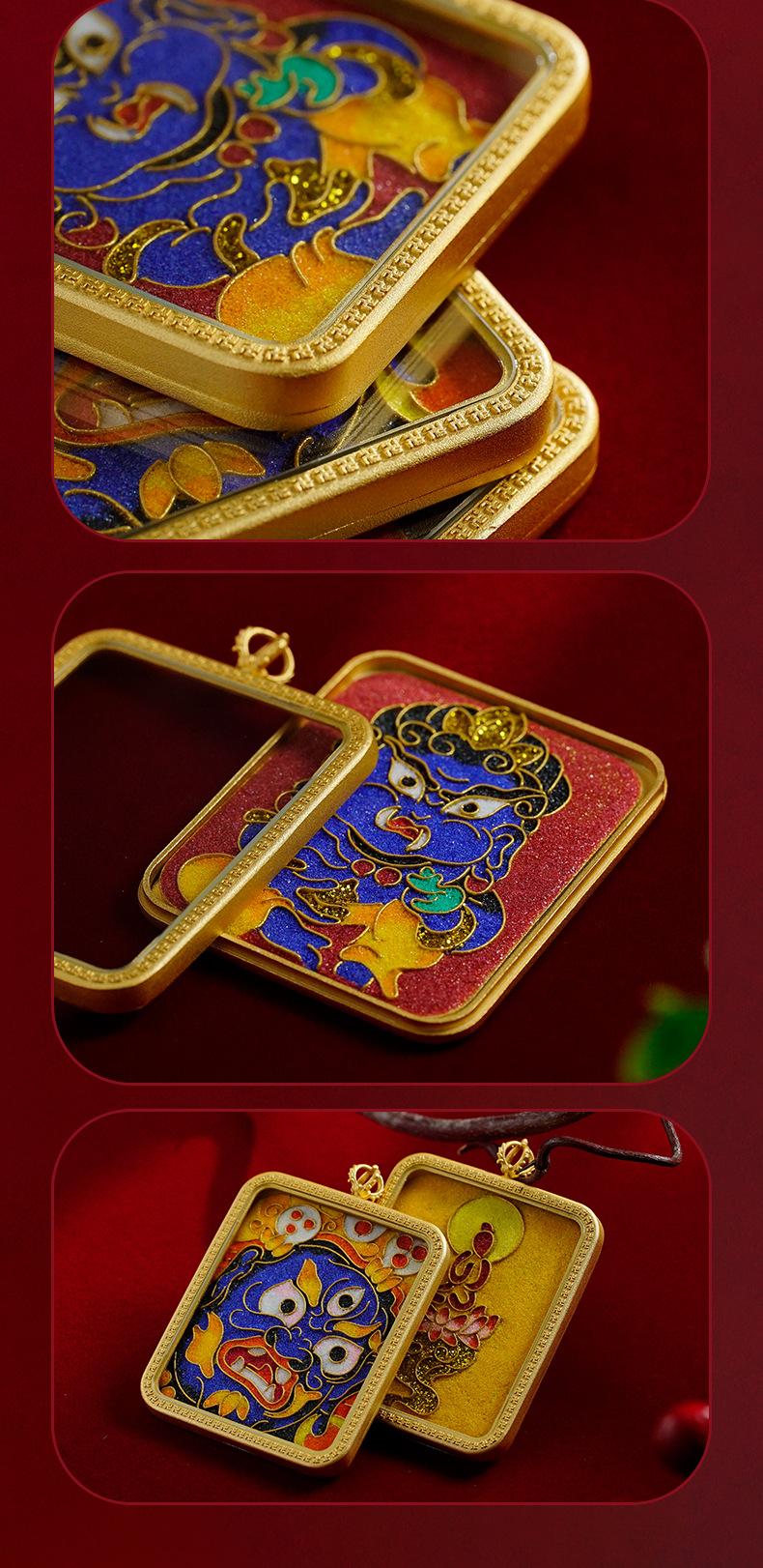 Nuevo Colgante Thangka Cuadrado de Estilo Étnico 4*5 Filigrana Latón para Hombres y Mujeres Cinco Ye Huangcai Colgante Thangka Genuino
