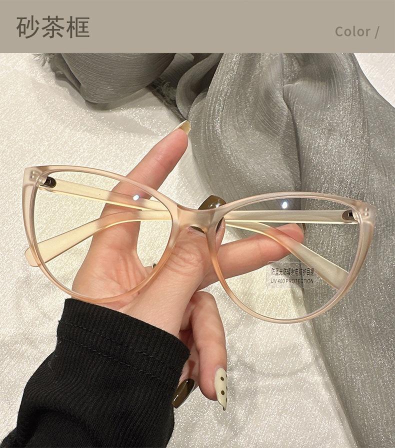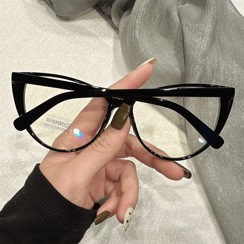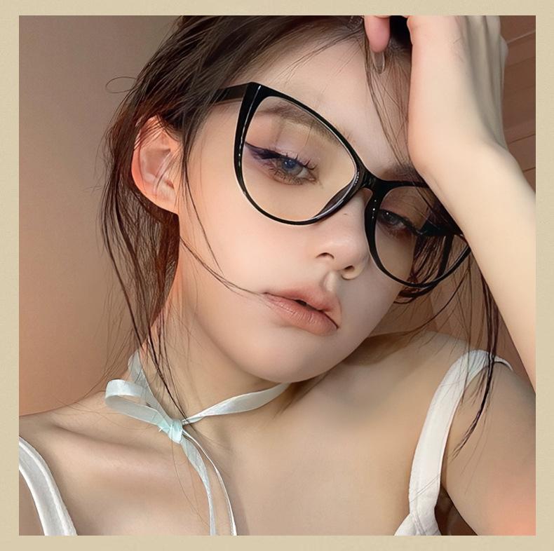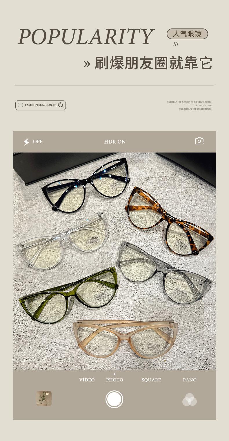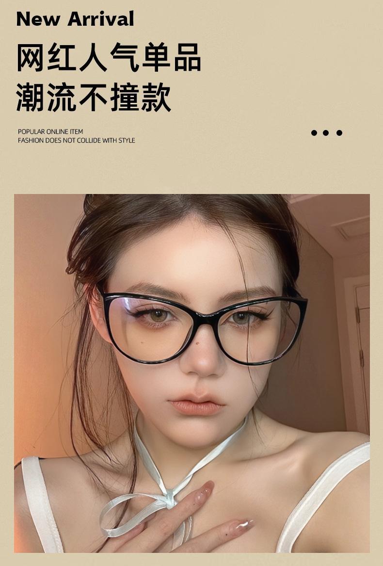 Nuevo ojo de gato europeo y americano espejo plano anti-luz azul montura grande para mujer cara pequeña puede combinar montura para gafas de miopía liso moda marea