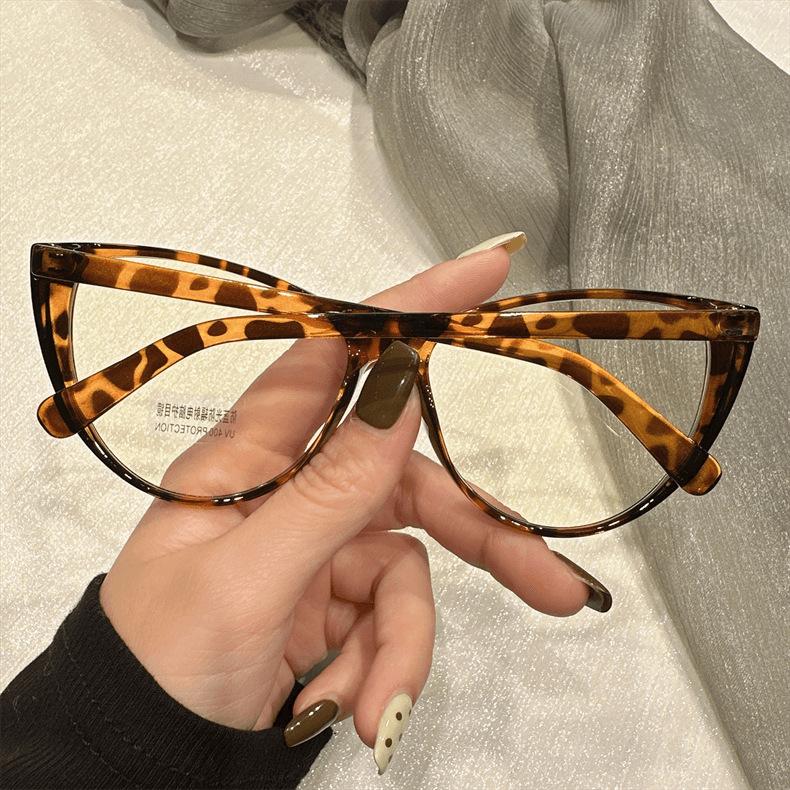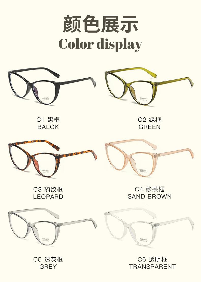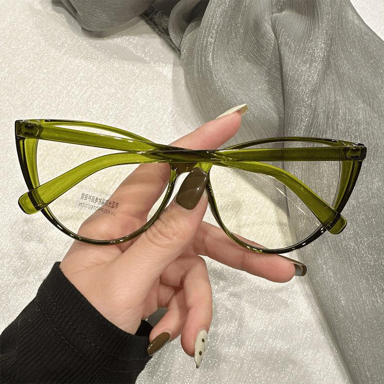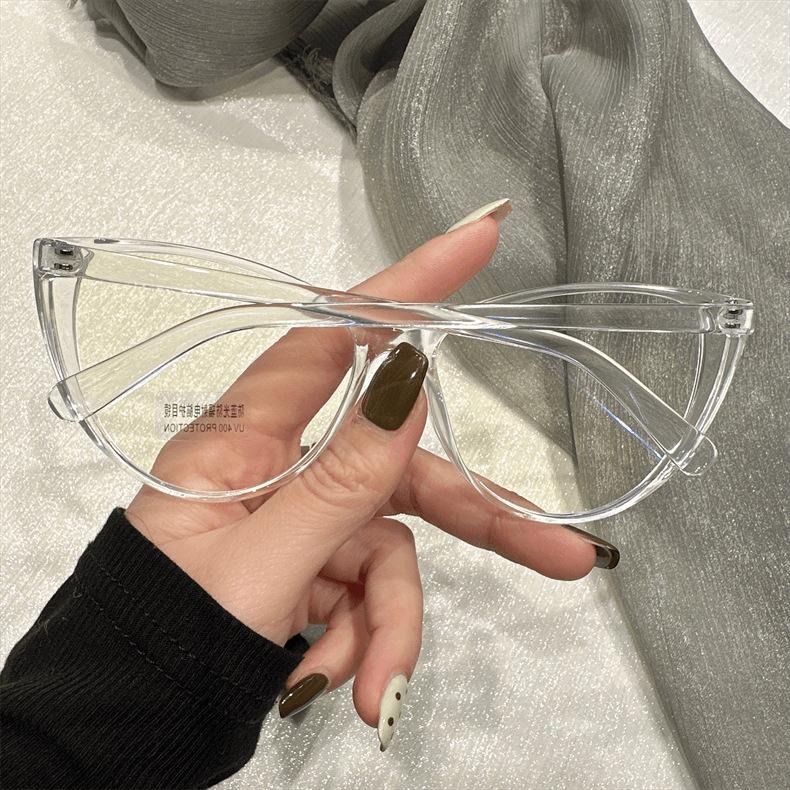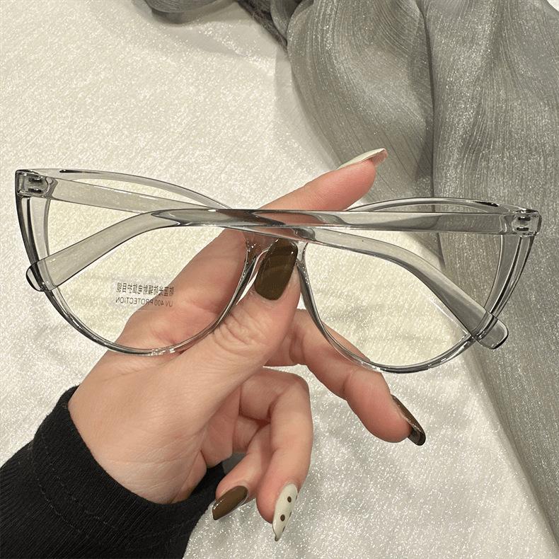Nuevo ojo de gato europeo y americano espejo plano anti-luz azul montura grande para mujer cara pequeña puede combinar montura para gafas de miopía liso moda marea