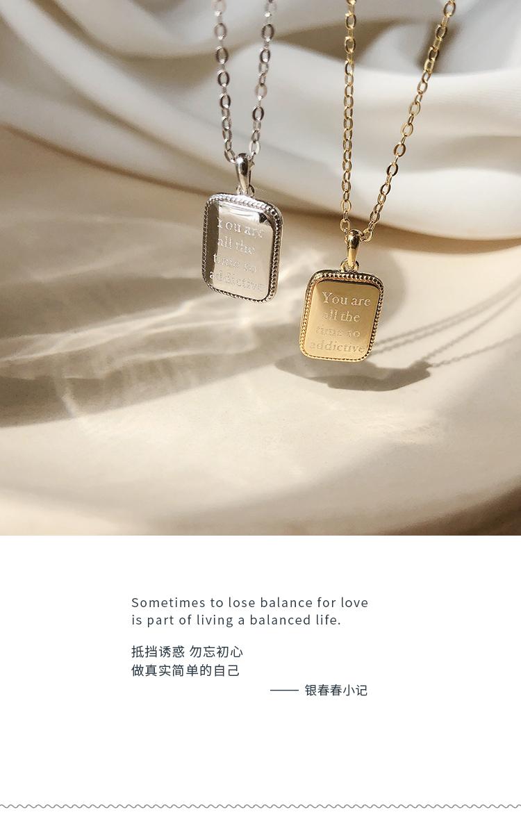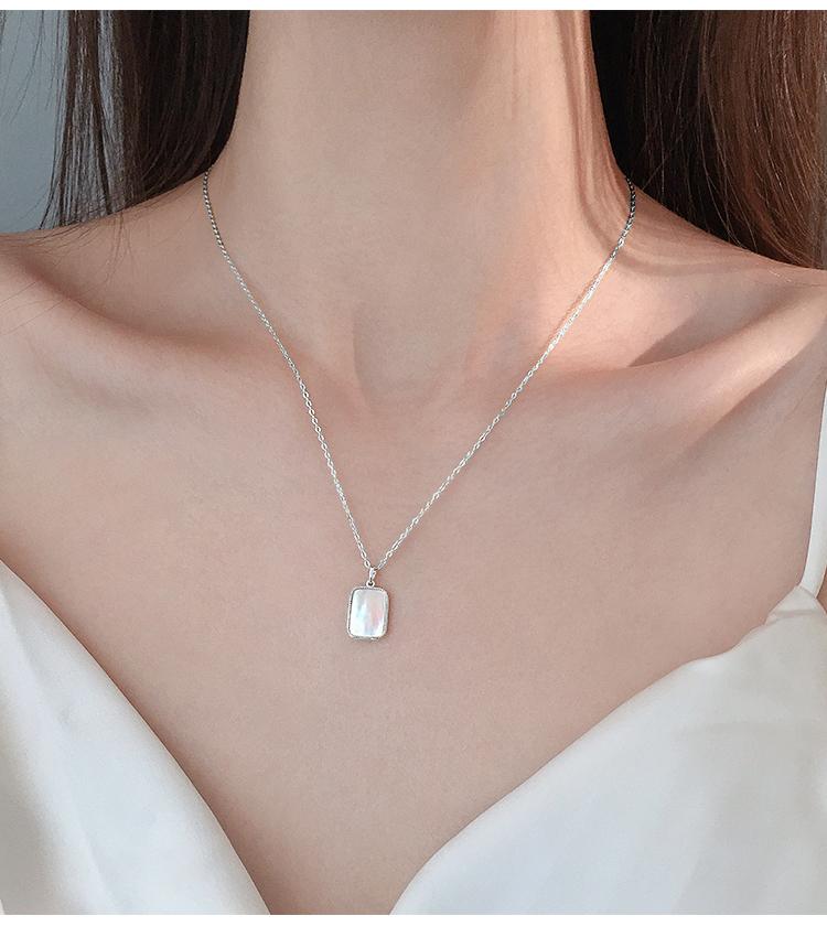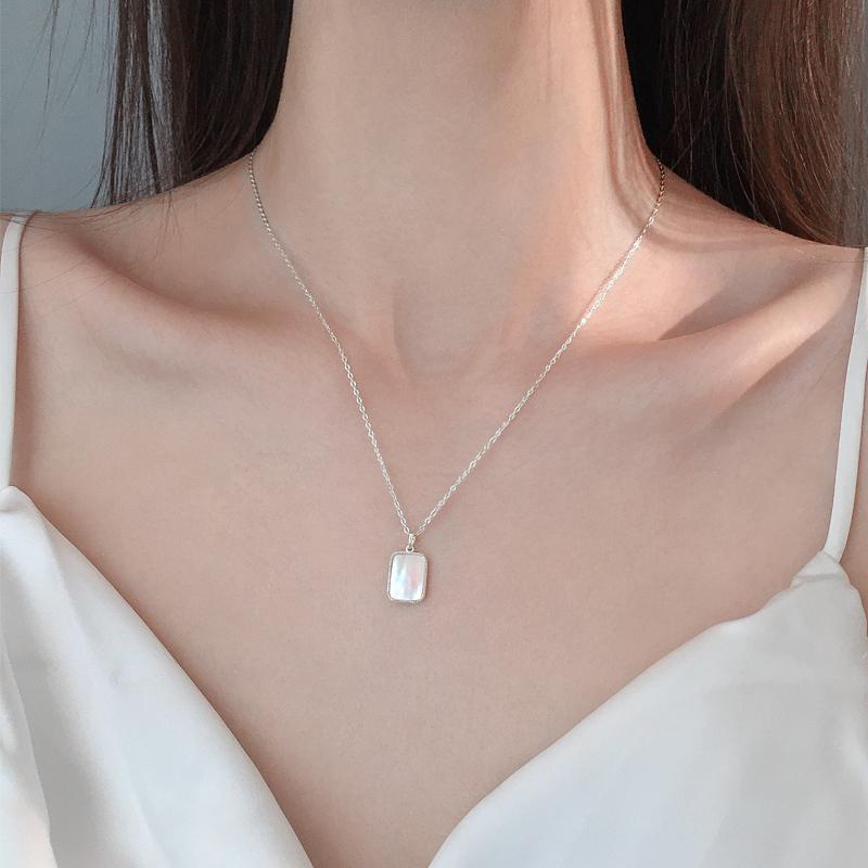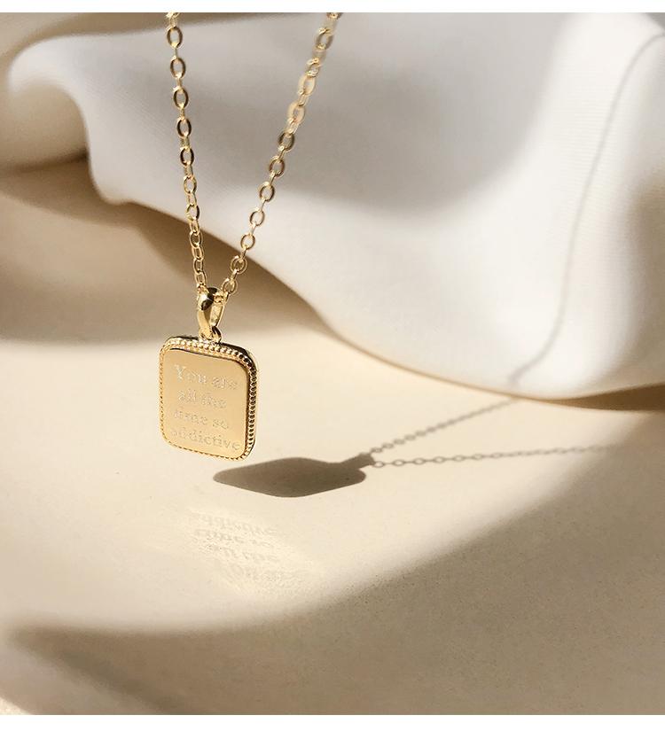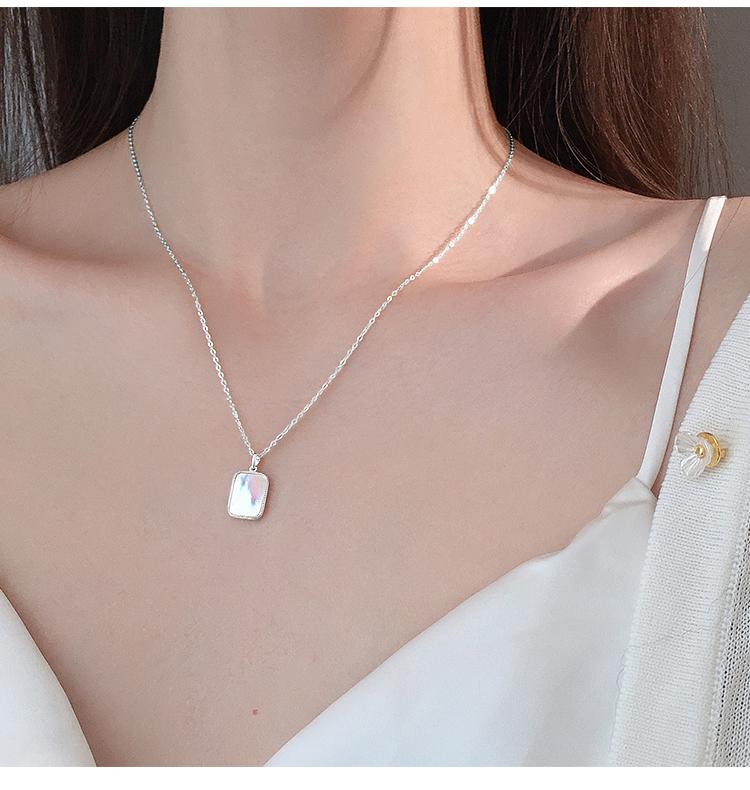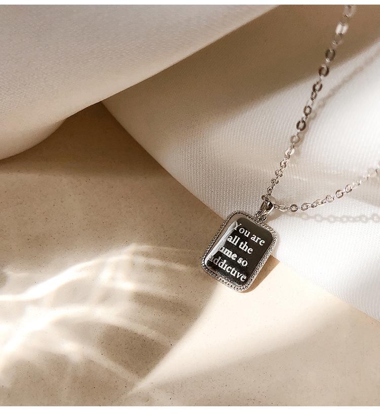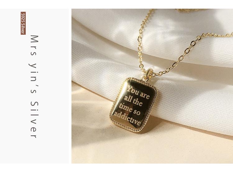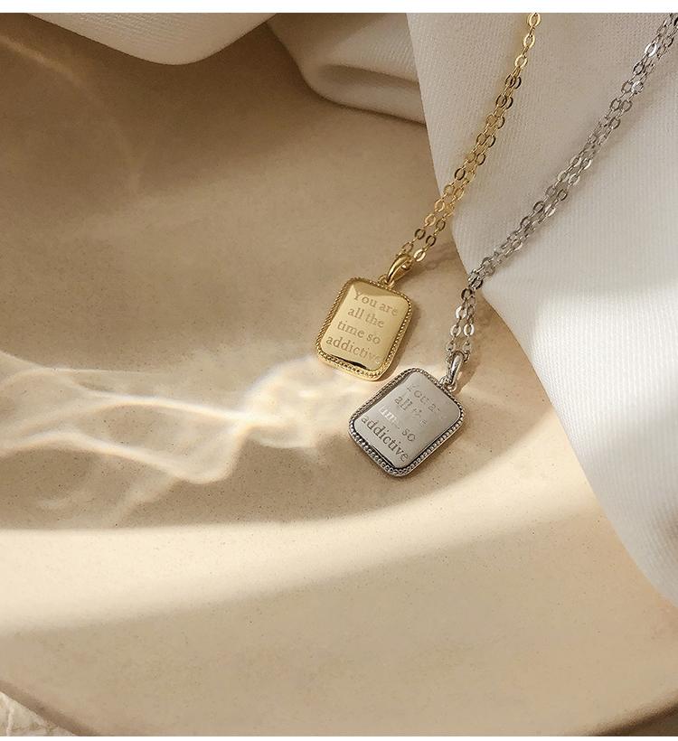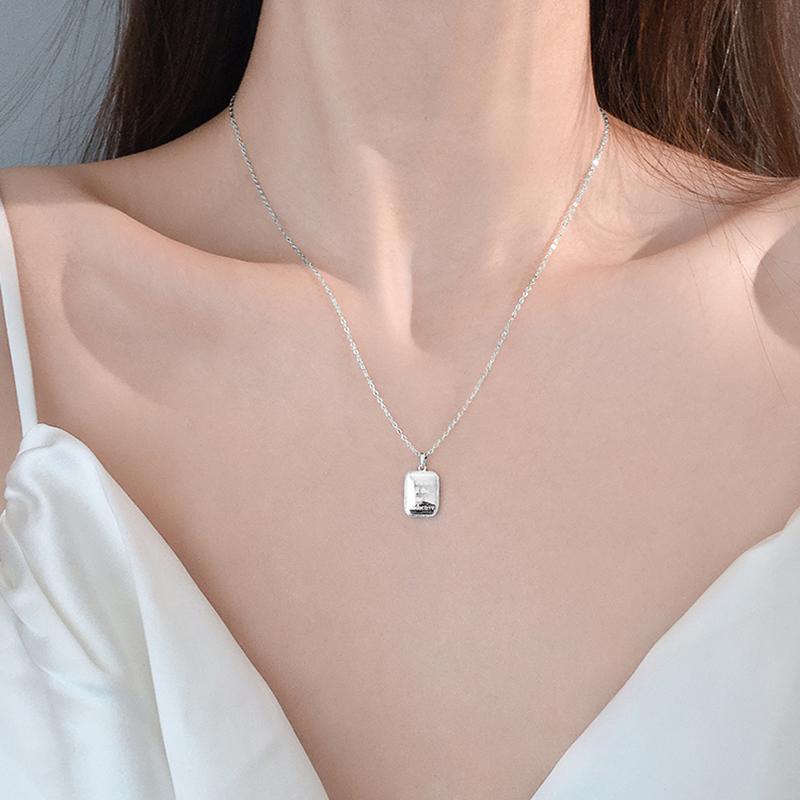 Collar con letra cuadrada de doble cara en plata de ley 925, diseño elegante y sencillo, cadena de clavícula para mujer, celebridad de Internet.