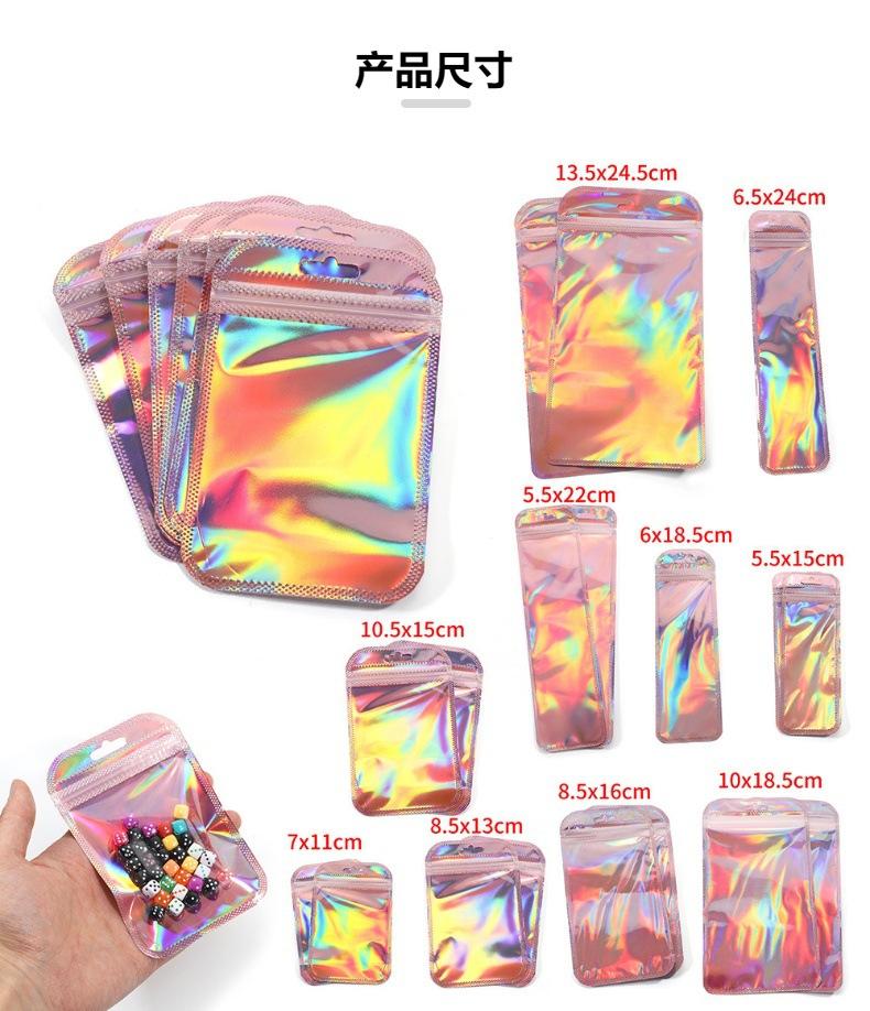 Bolsa Ziplock de Embalaje Láser Colorida Collar Aretes Bolsa de Embalaje para Joyería Bolsa con Clip Bolsa de Cadena Estuche para Teléfono Móvil Bolsa Láser Yin y Yang
