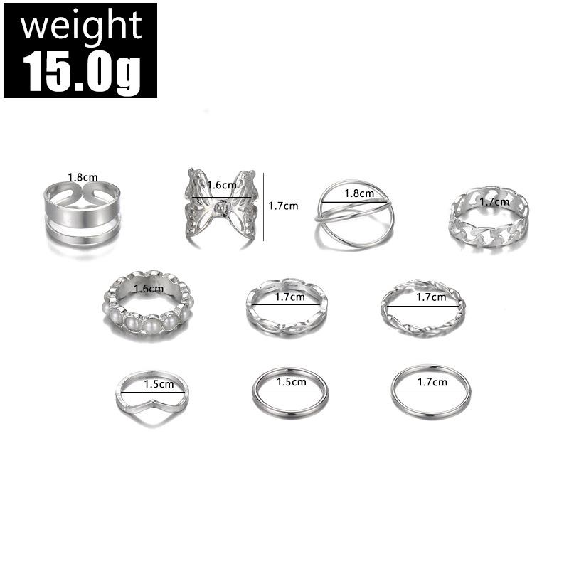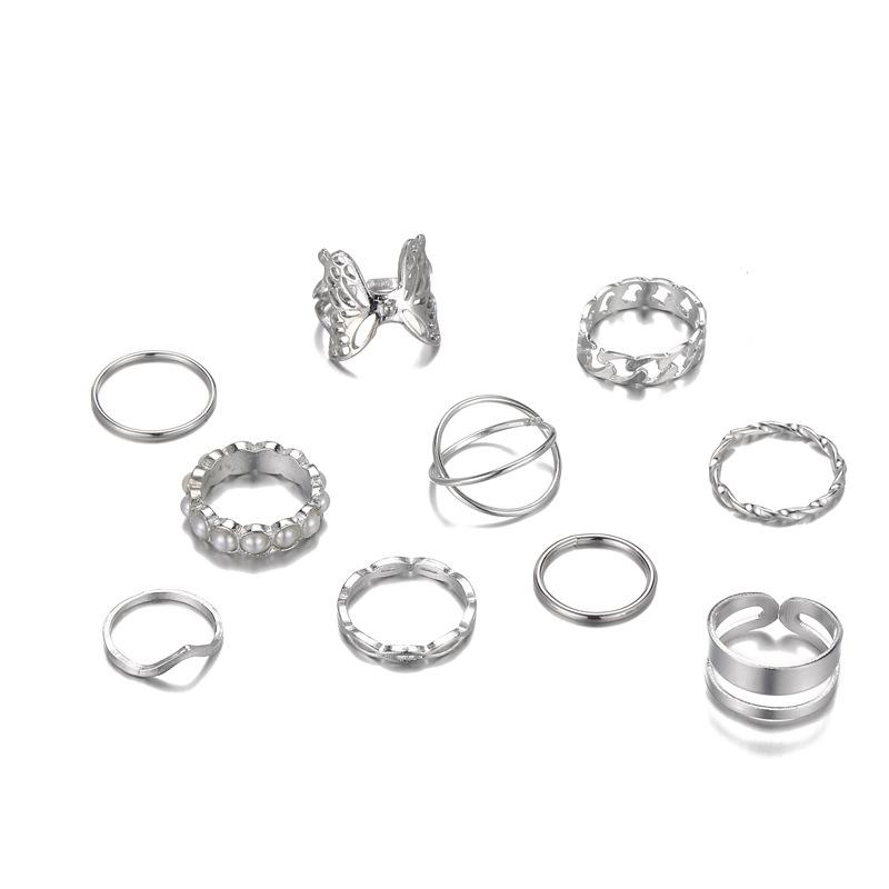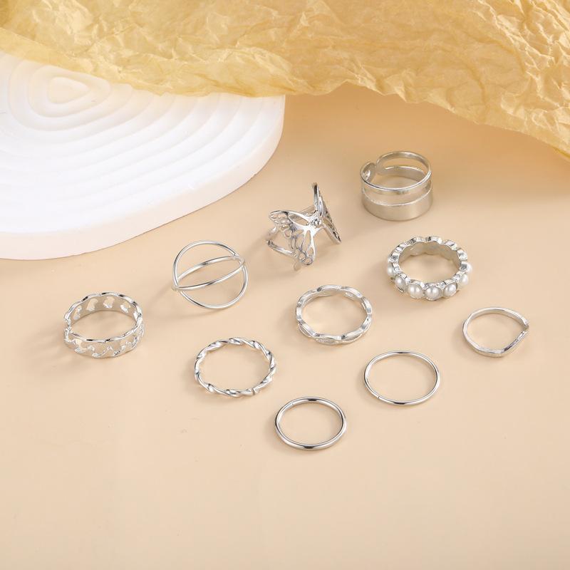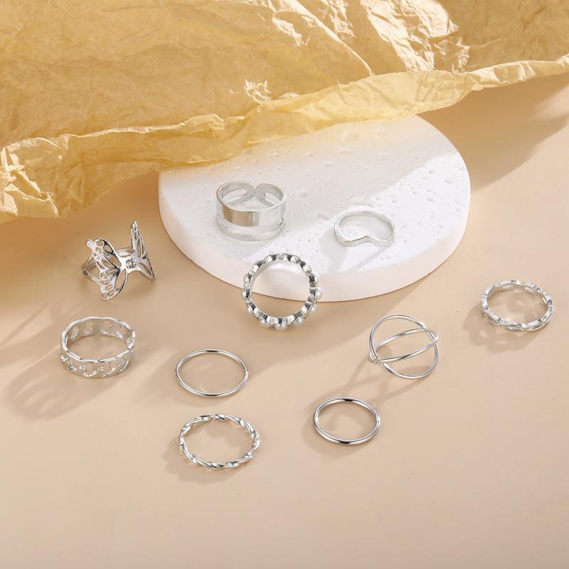 Anillo de perlas europeo y americano de venta caliente Amazon Anillo simple cruzado hueco Anillo articulado de mariposa juego de 10 piezas