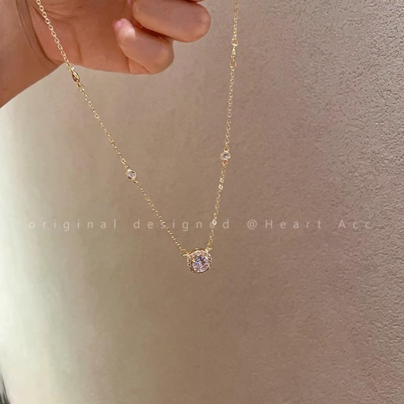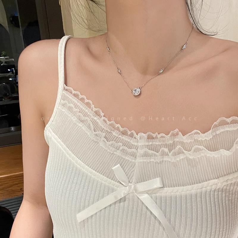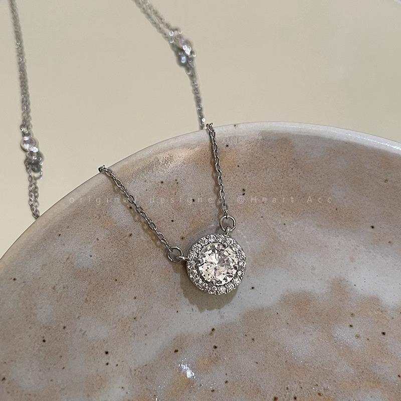 Collar con Colgante Redondo de Zirconia 2025 Nuevo Estilo Caliente Lujo Accesible Cadena de Clavícula de Alta Gama Collar de Cuello de Estilo Frío Simple