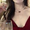 Collar de perlas con lazo rojo retro de alta calidad, novedad de 2023, cadena de clavícula femenina que combina con todo.