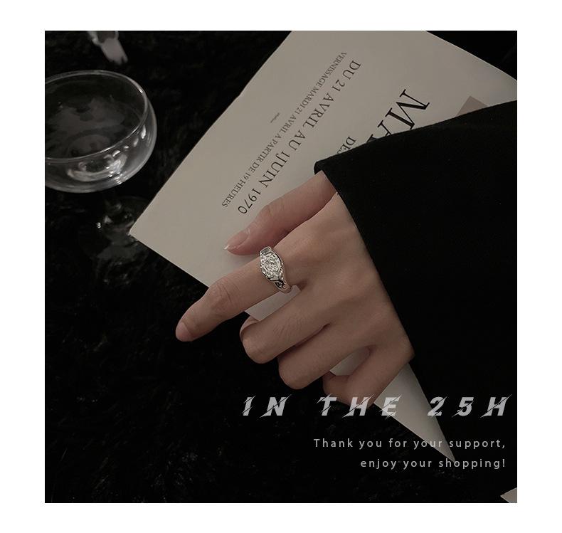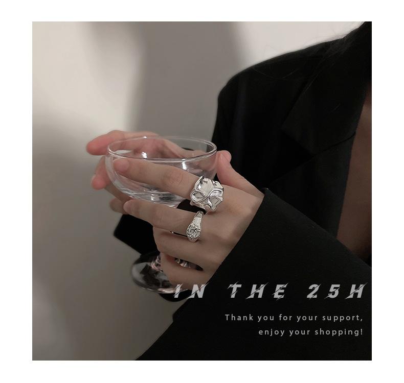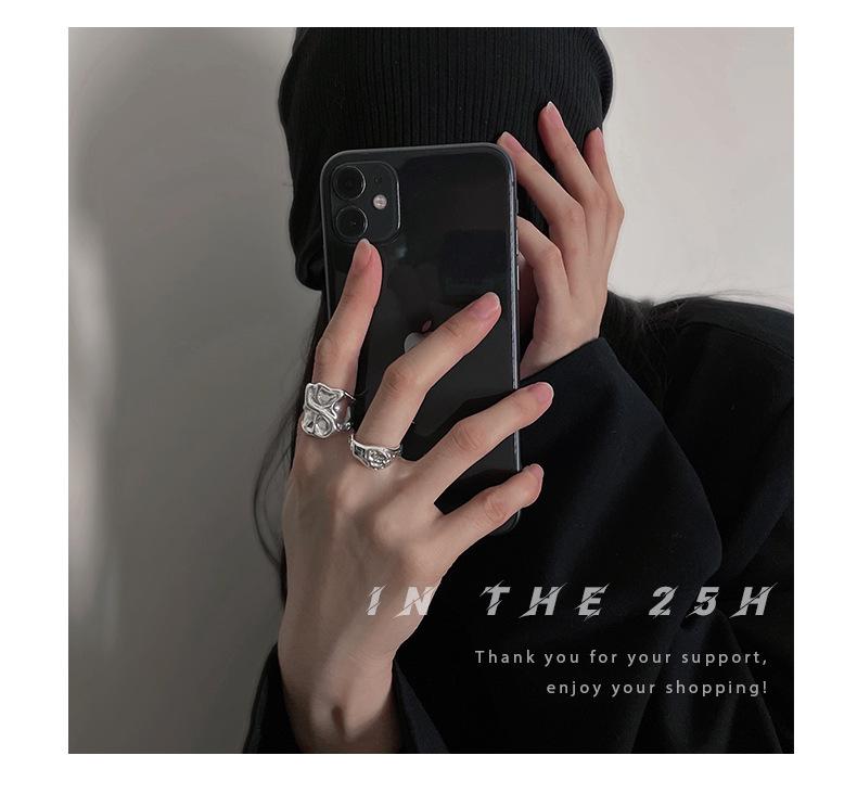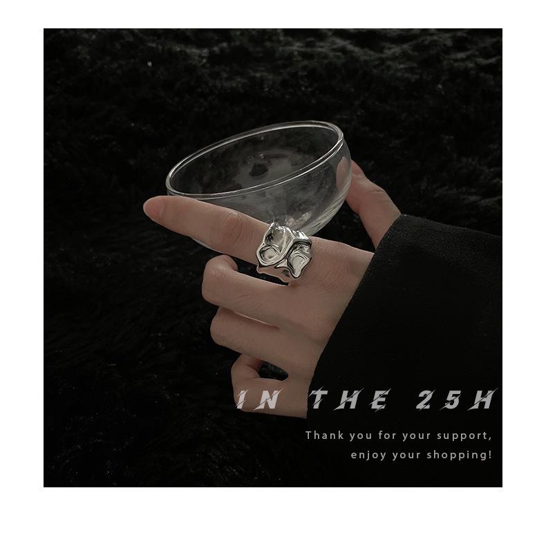 Anillo Geométrico Exagerado Distintivo de Plata S925 Europea y Americana para Mujer, Retro, Hip-Hop, Moda, Abultado, Irregular, Abierto