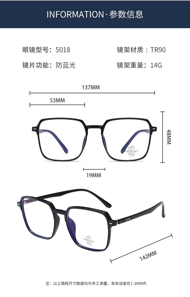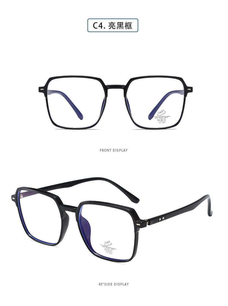 Nuevas y elegantes gafas con montura negra anti-luz azul, montura grande, aspecto de cara, montura pequeña y lisa, gafas para mujer, gafas de moda para hombre y miopía.