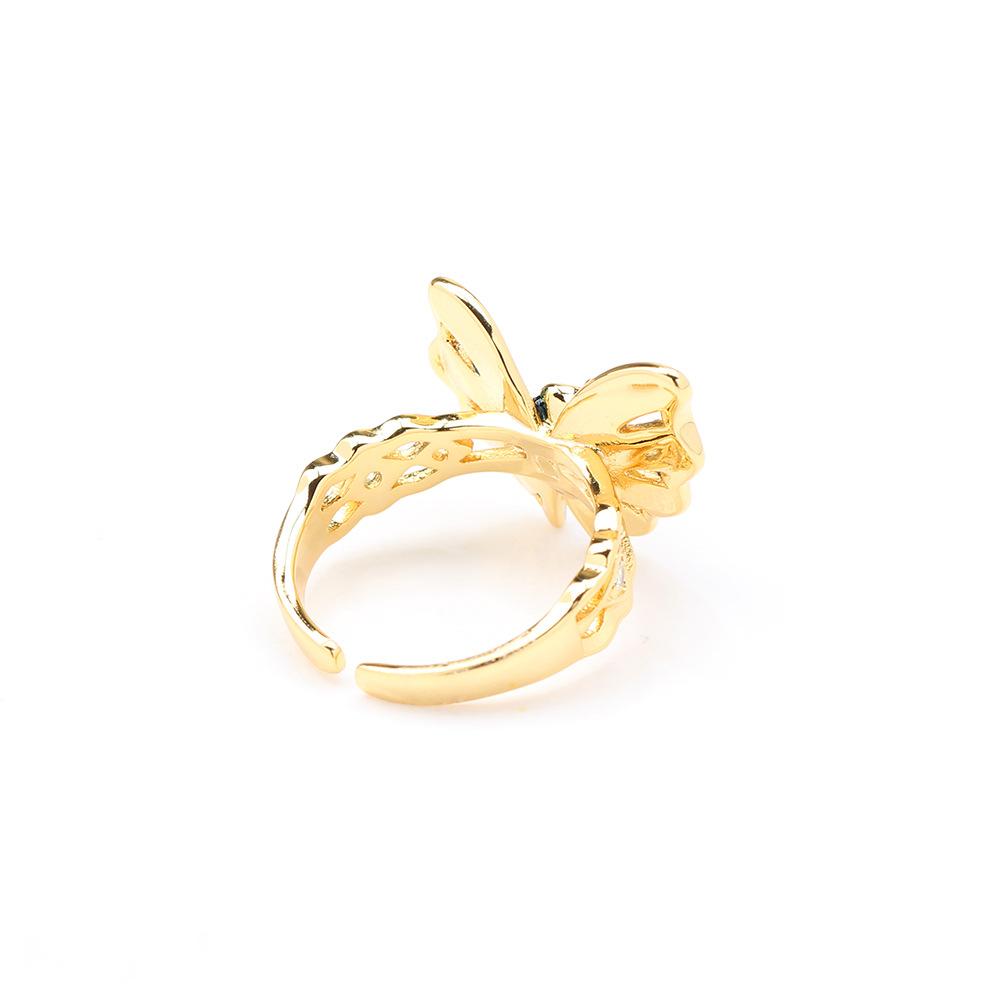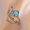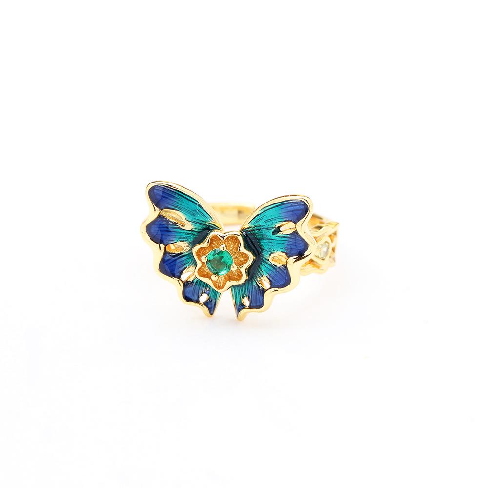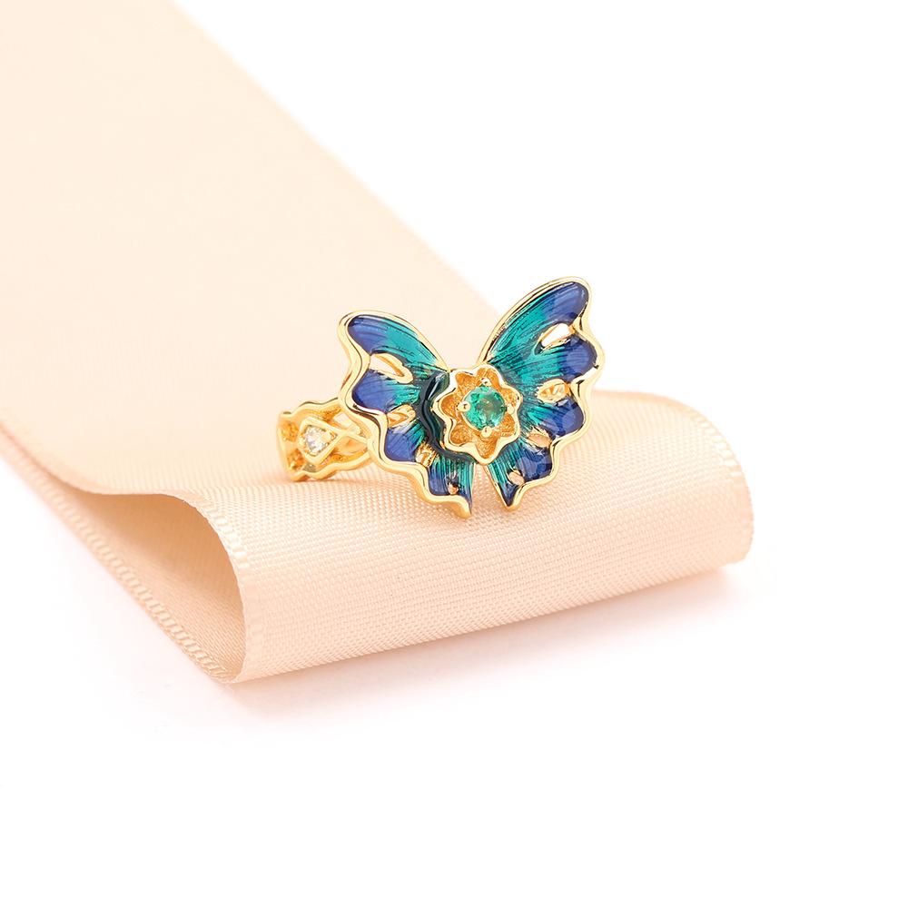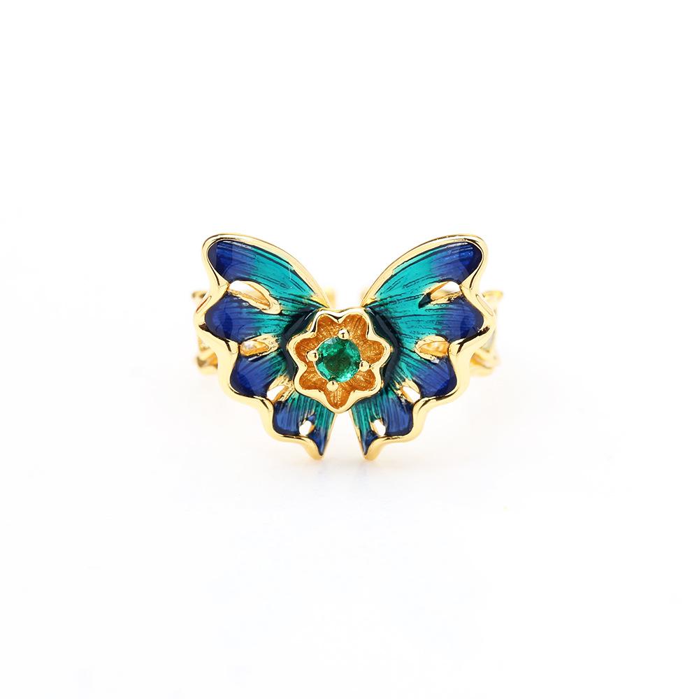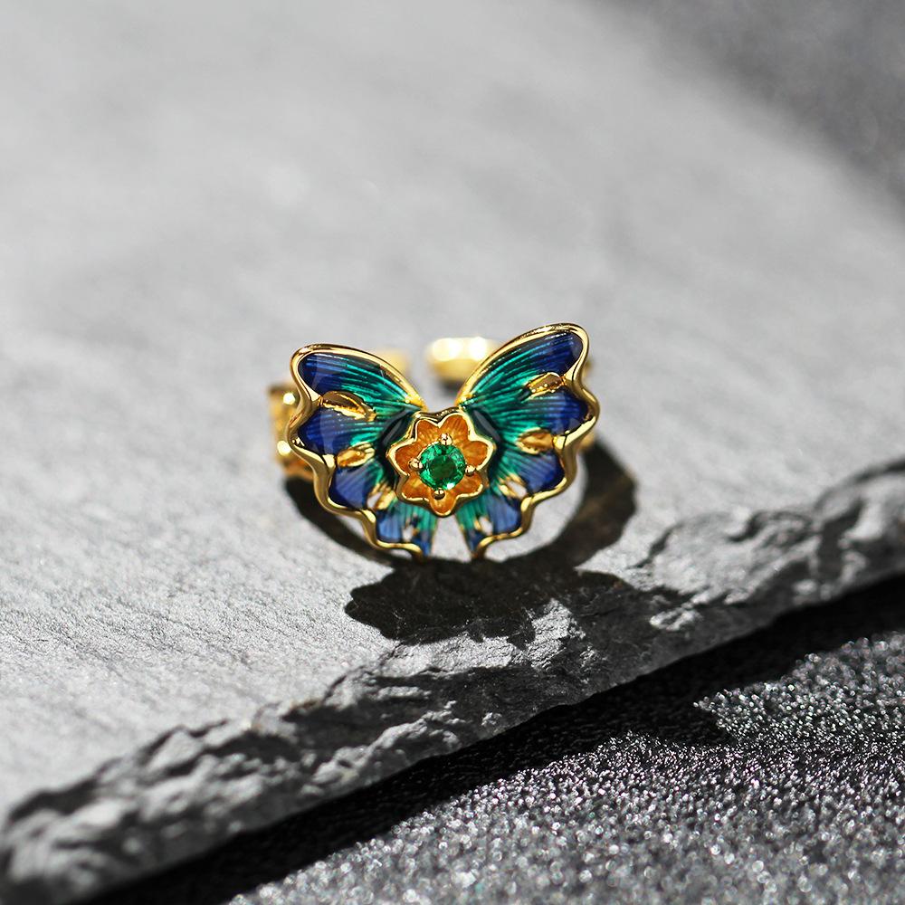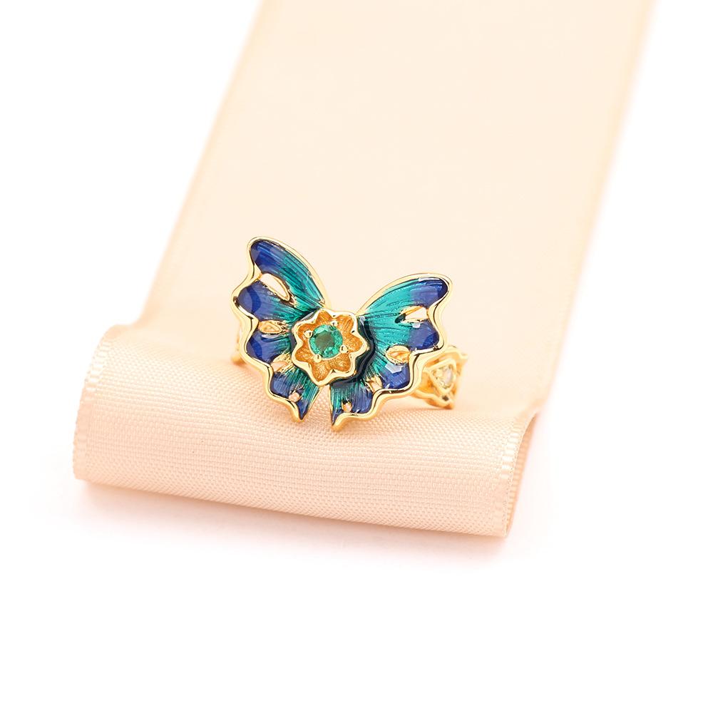 Nuevo anillo de mariposa azul elegante de alta gama con aceite goteado, anillo simple versátil chapado en oro abierto ajustable para el dedo índice