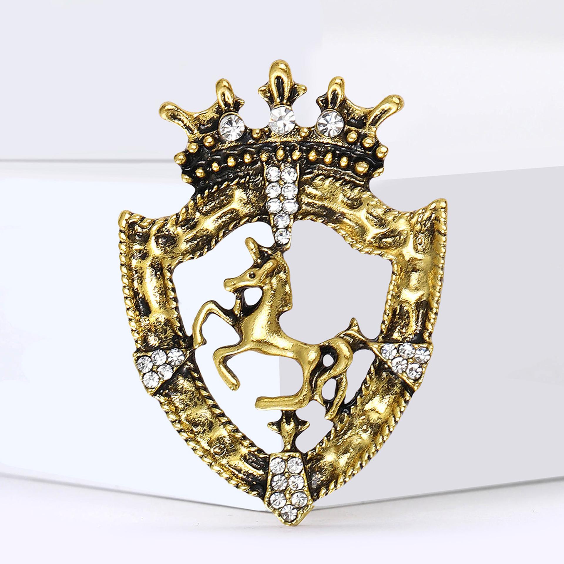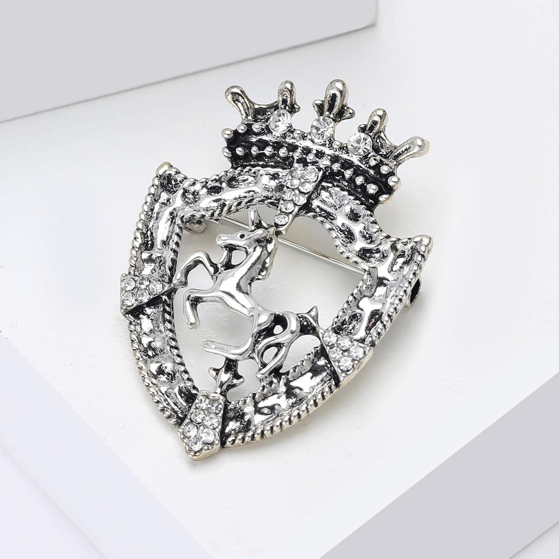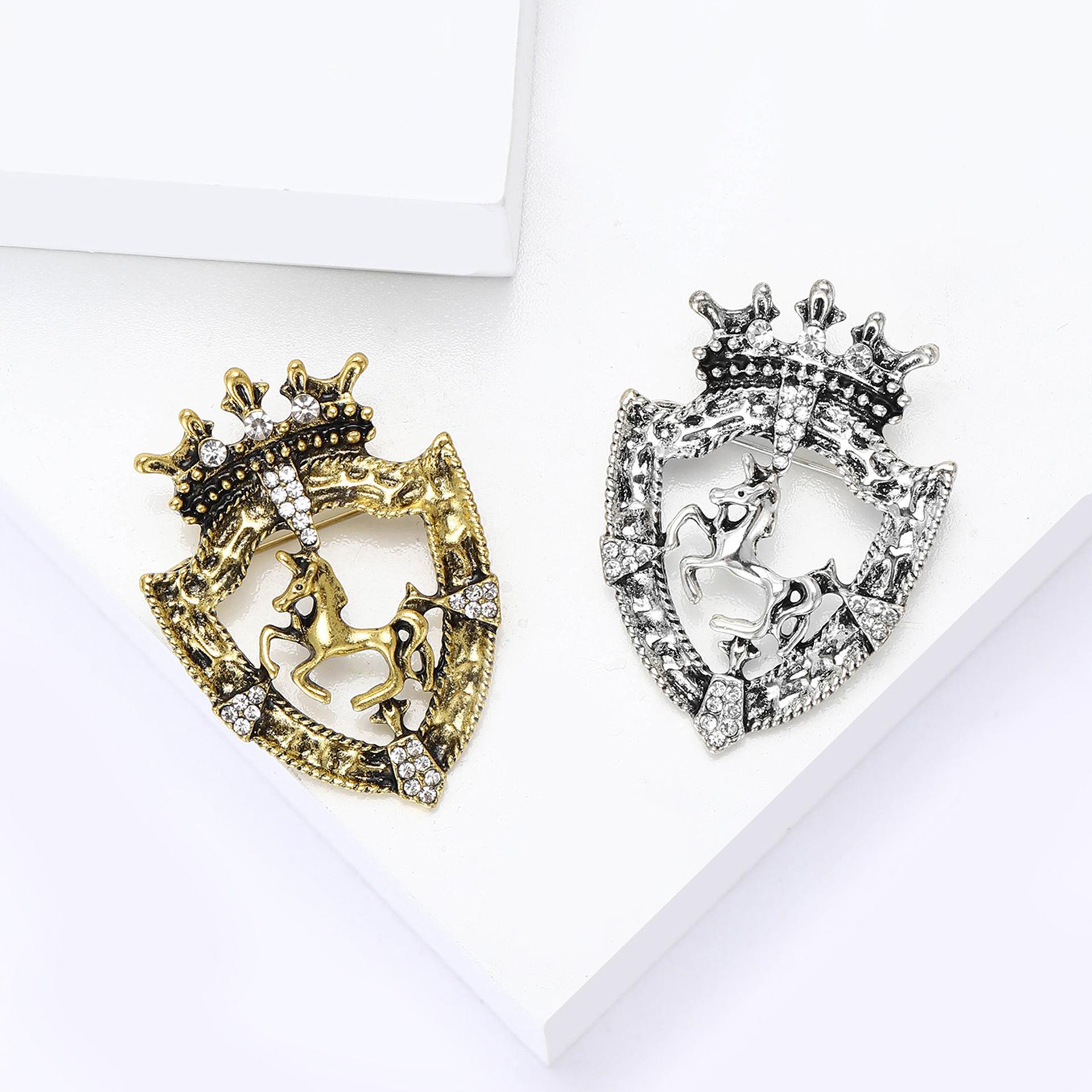 Corsage de traje de moda europea y americana Escudo retro Corona para hombre Broche de caballo Insignia de pedrería Pin para ropa de alta gama