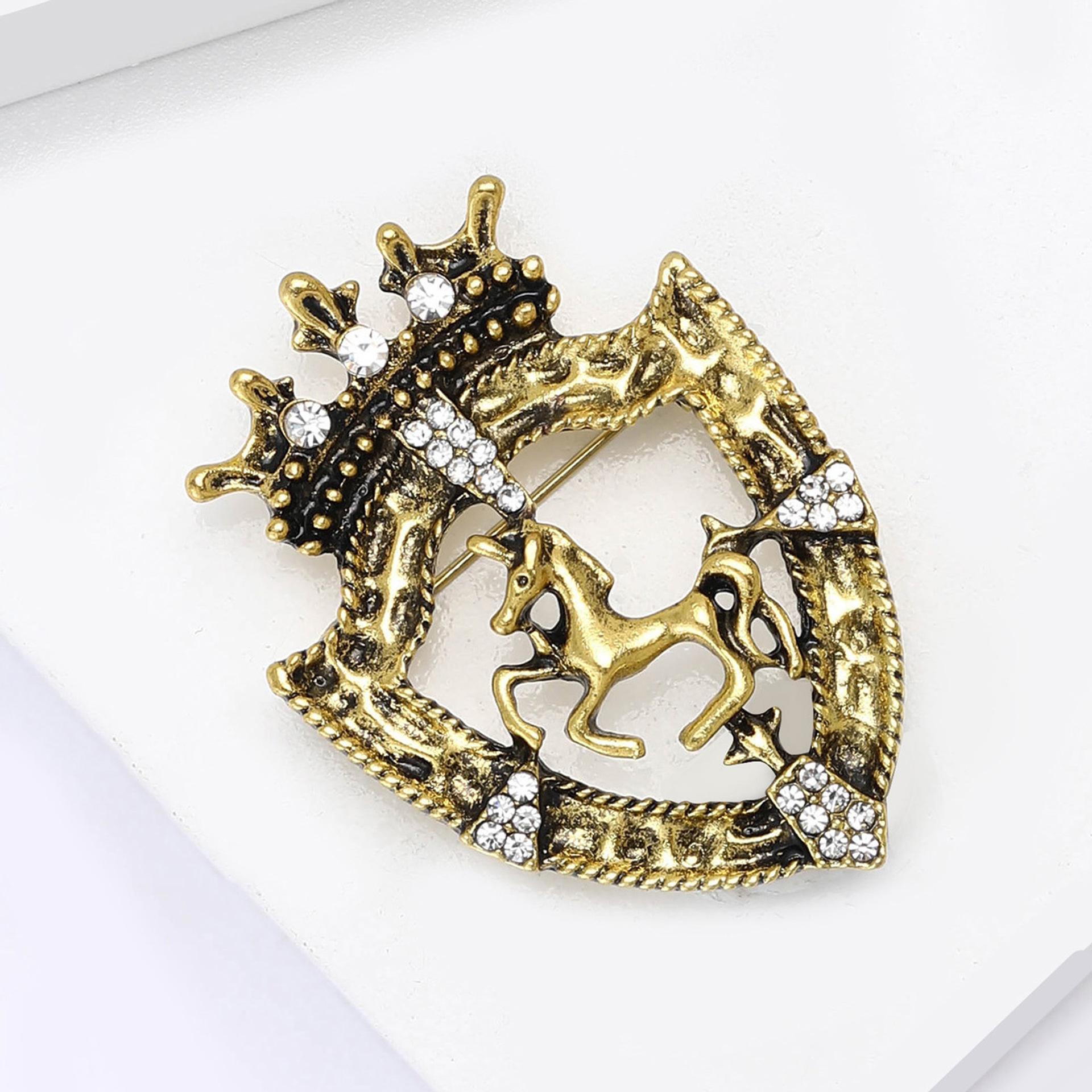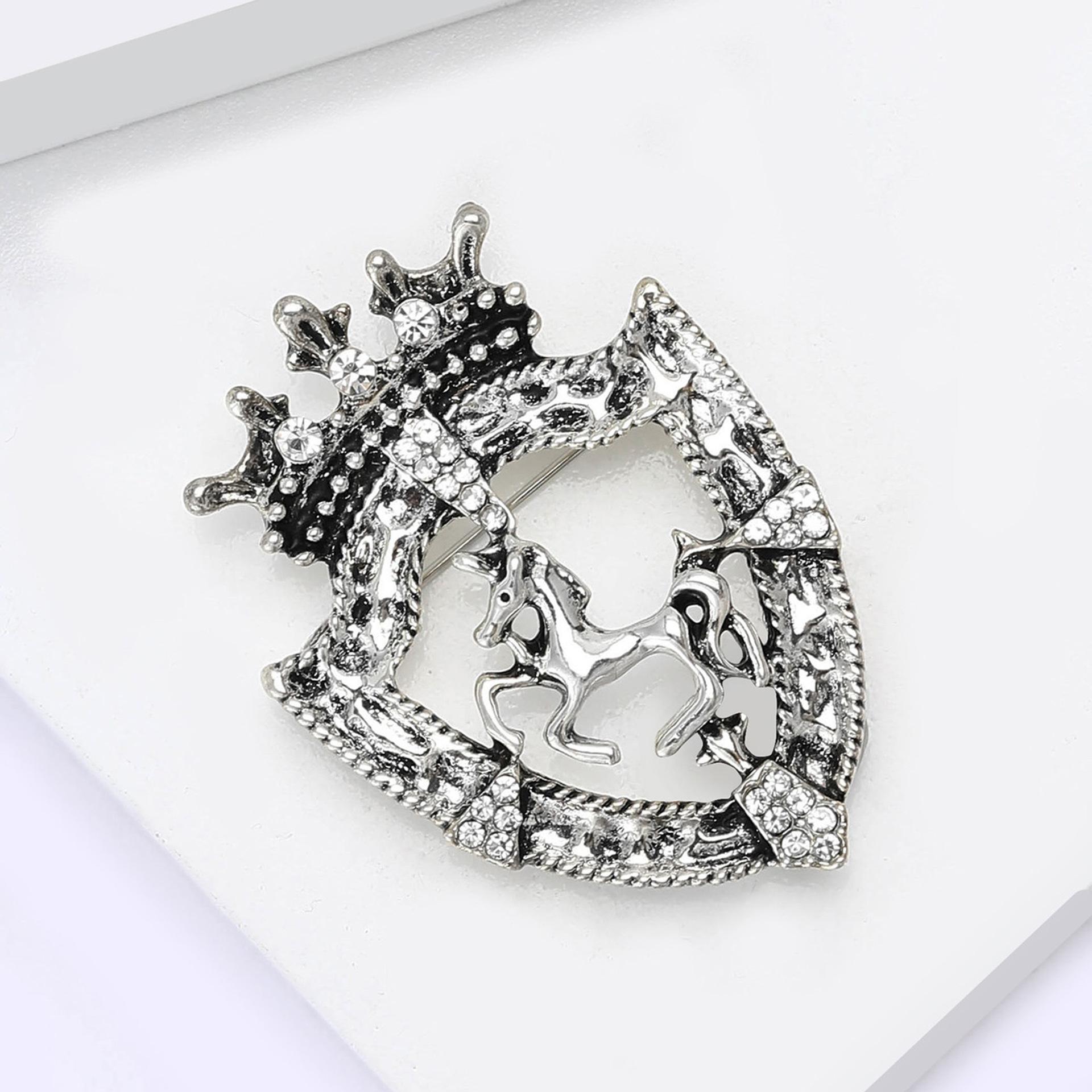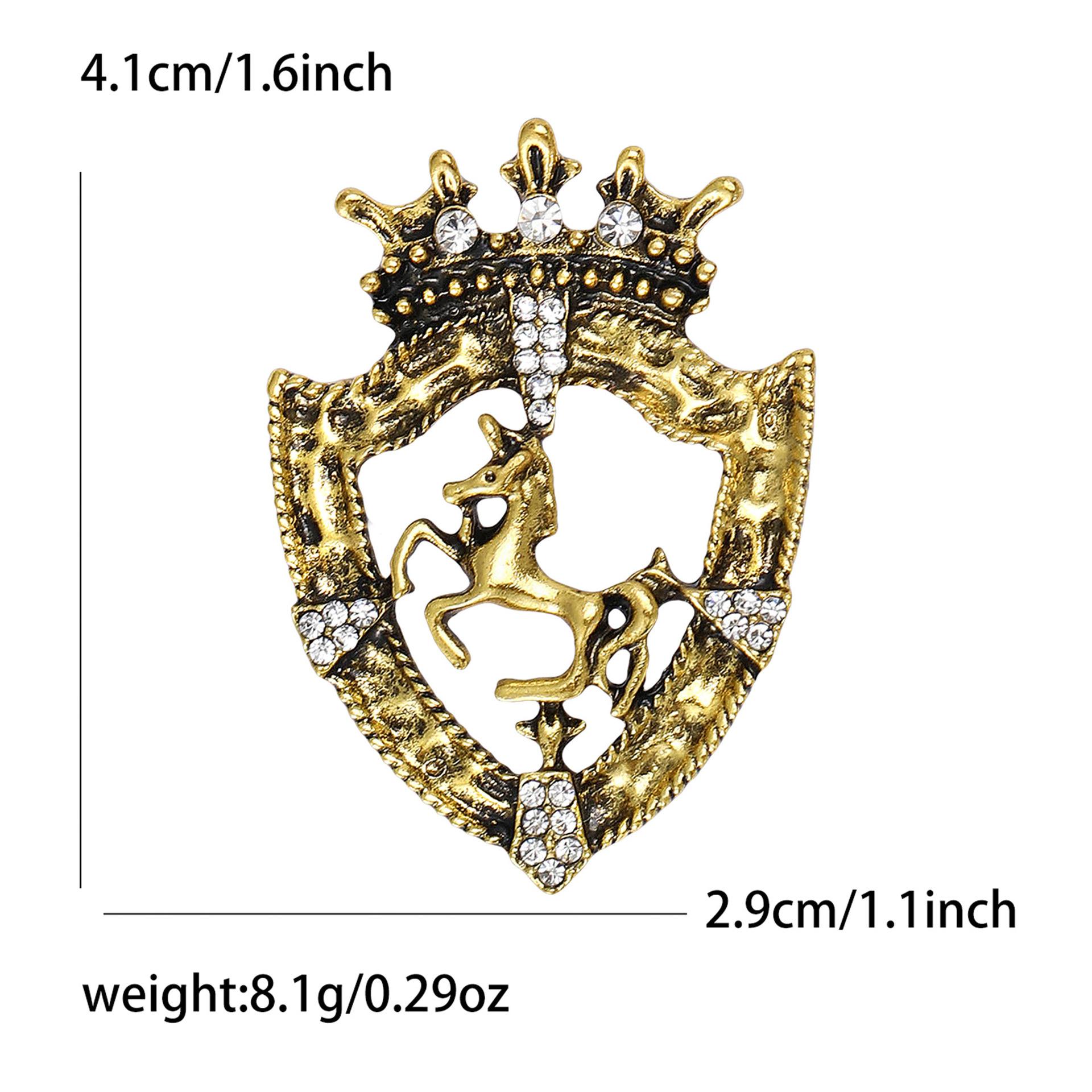 Corsage de traje de moda europea y americana Escudo retro Corona para hombre Broche de caballo Insignia de pedrería Pin para ropa de alta gama