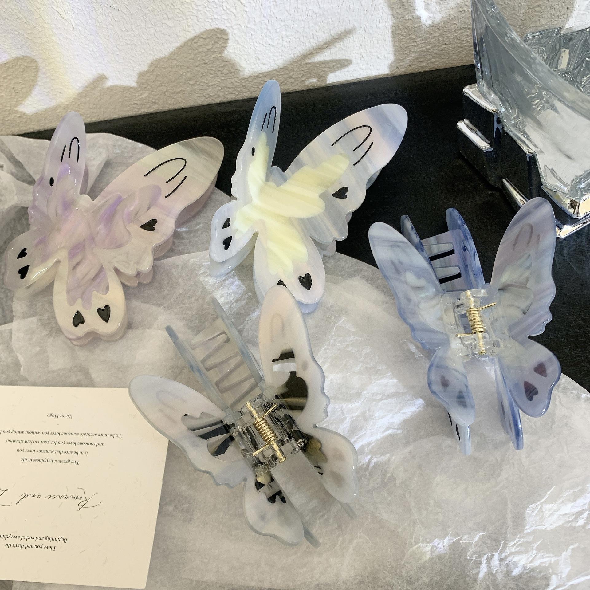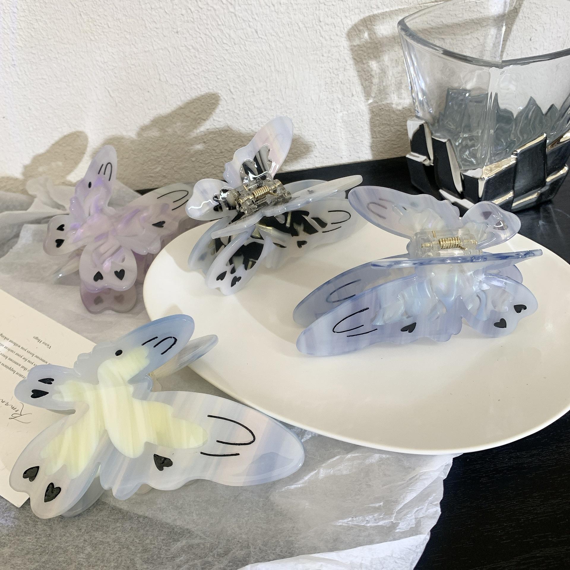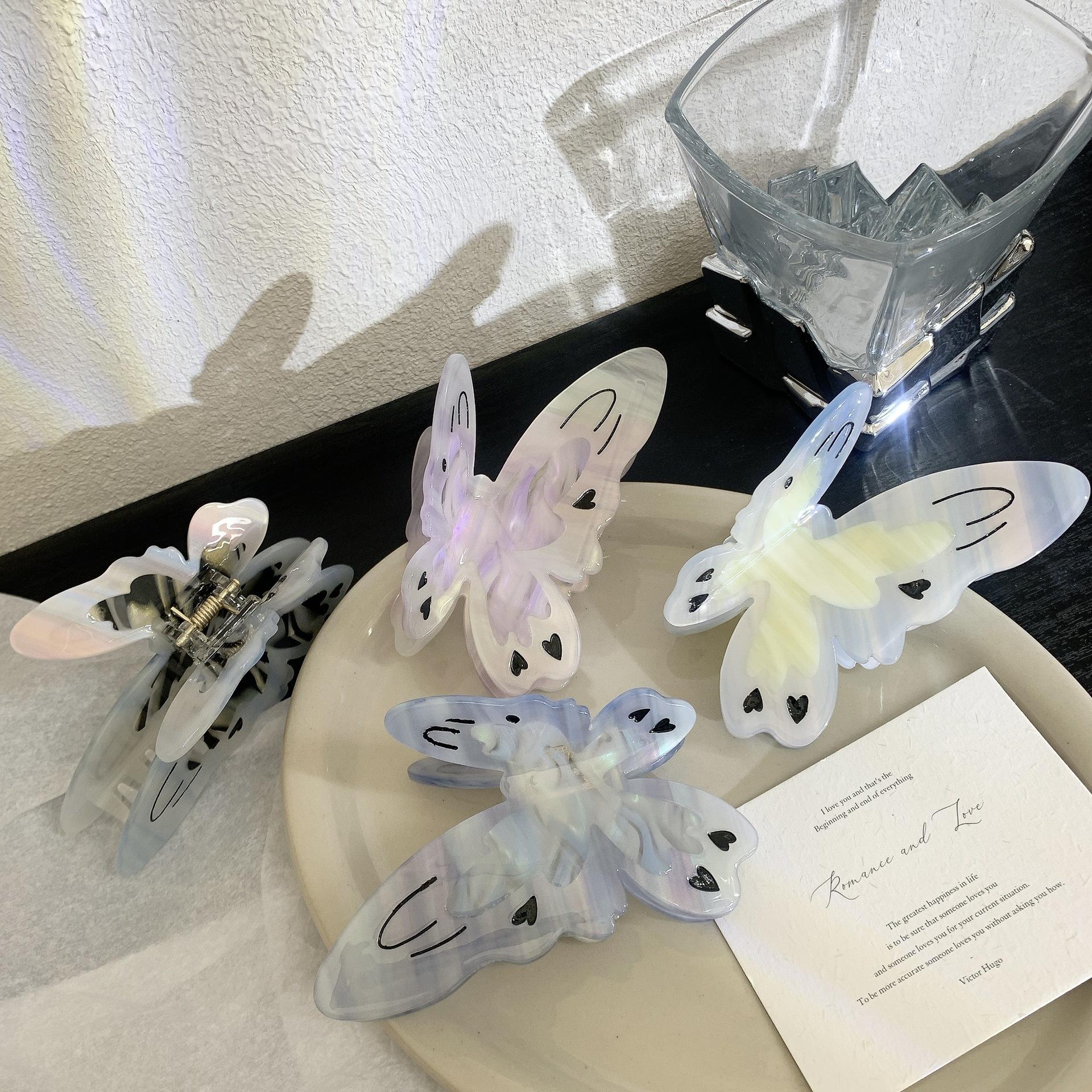 Nueva horquilla de verano con textura de mariposa, súper inmortal, grande, con bloques de color y ácido acético, para niña, con pinza de tiburón