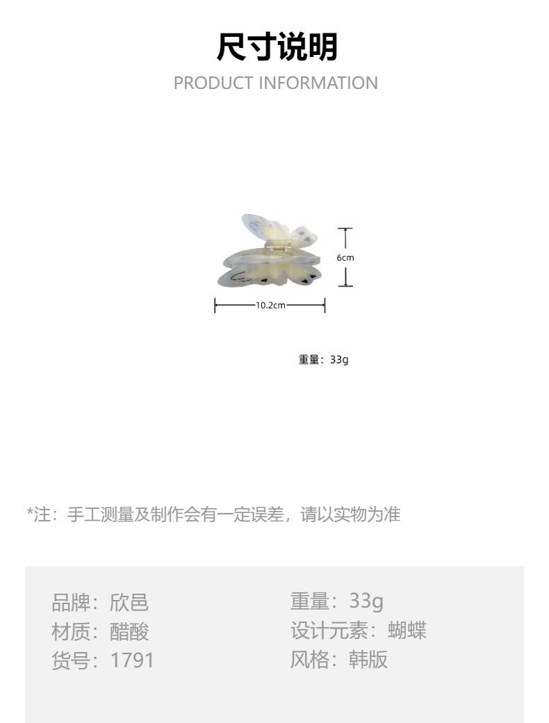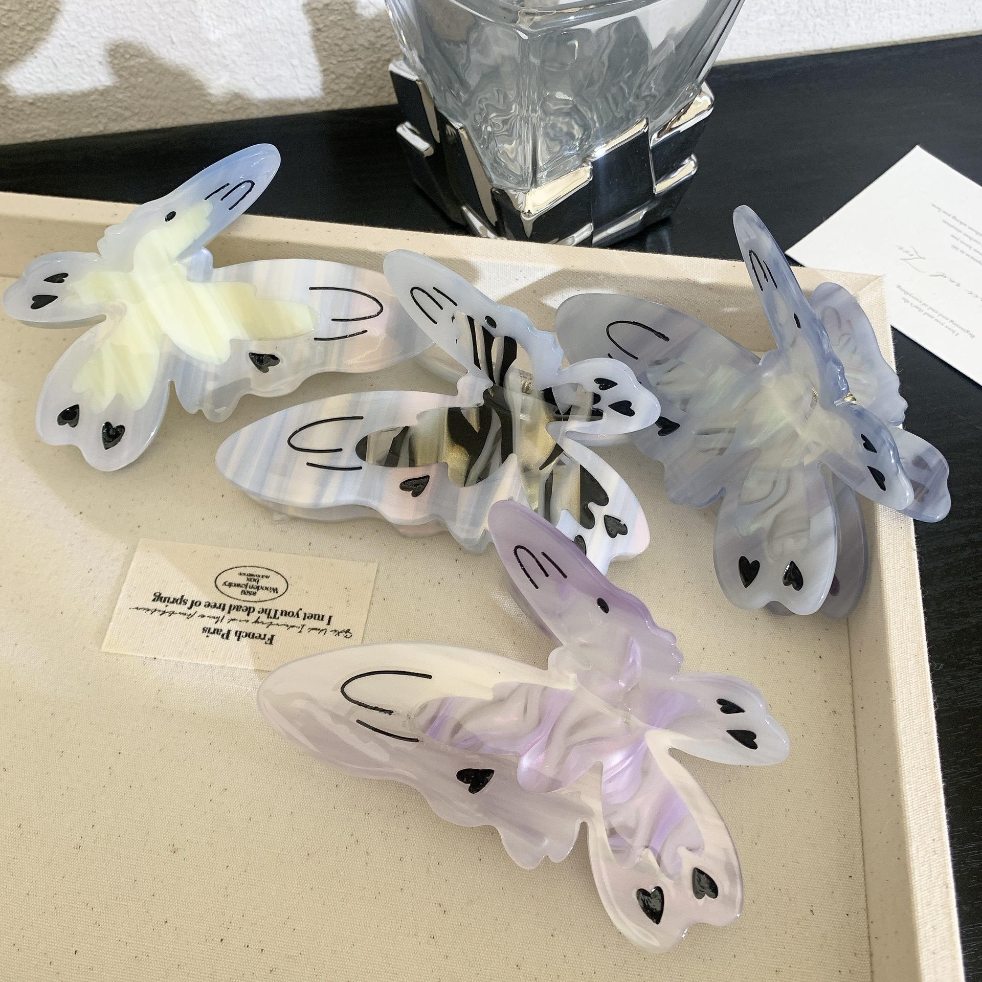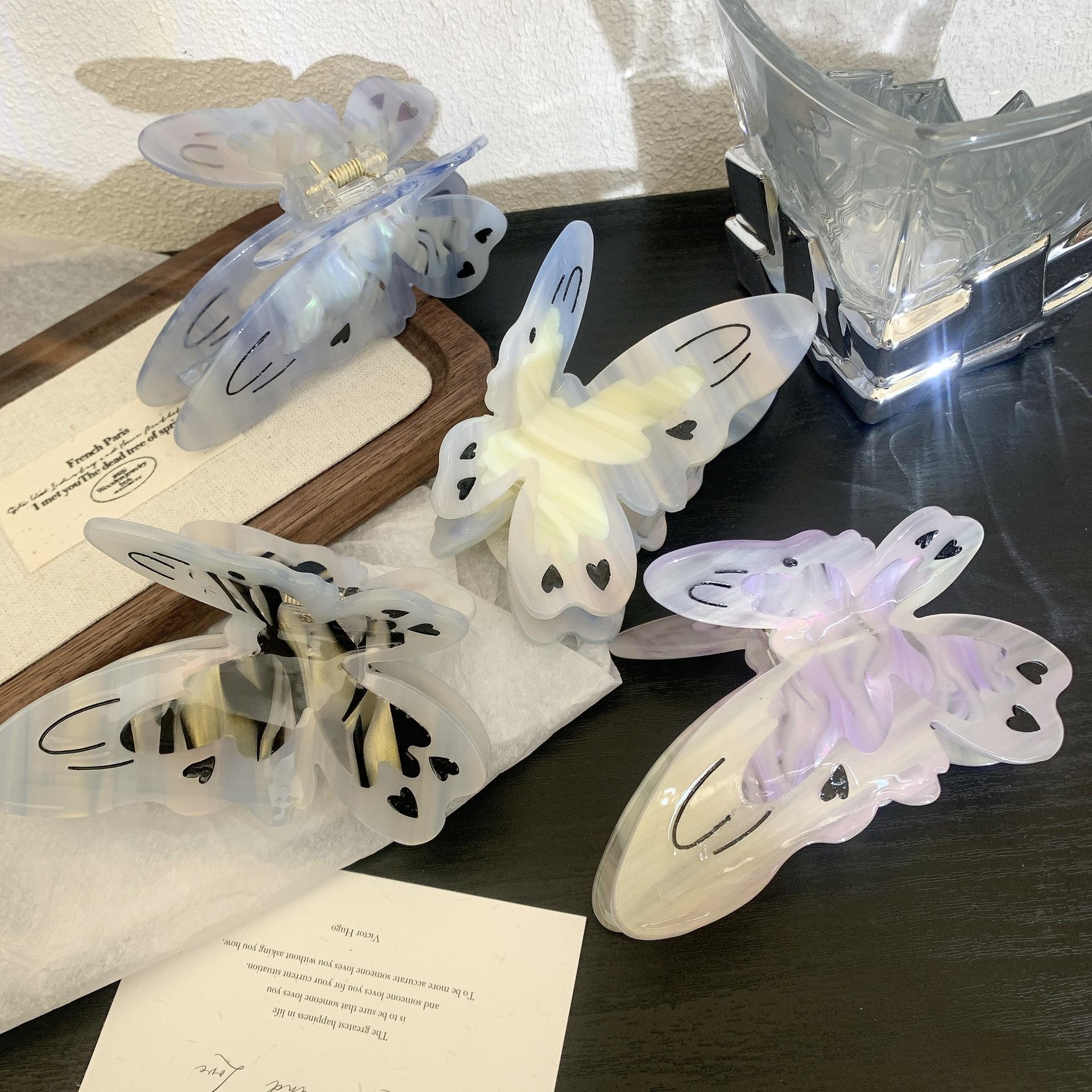 Nueva horquilla de verano con textura de mariposa, súper inmortal, grande, con bloques de color y ácido acético, para niña, con pinza de tiburón