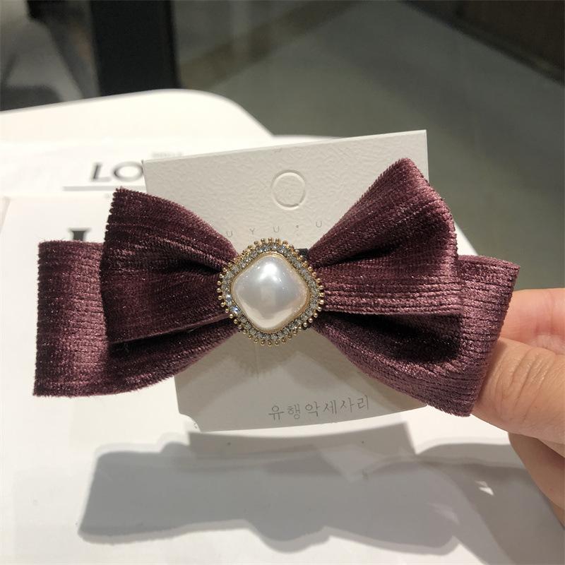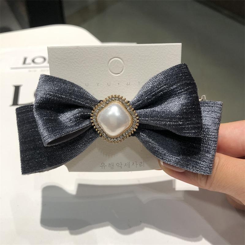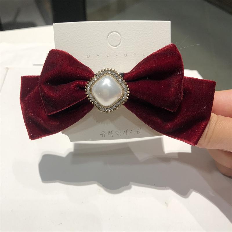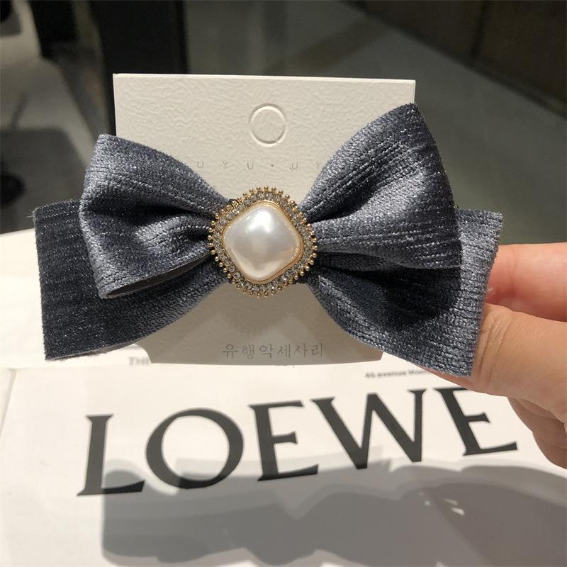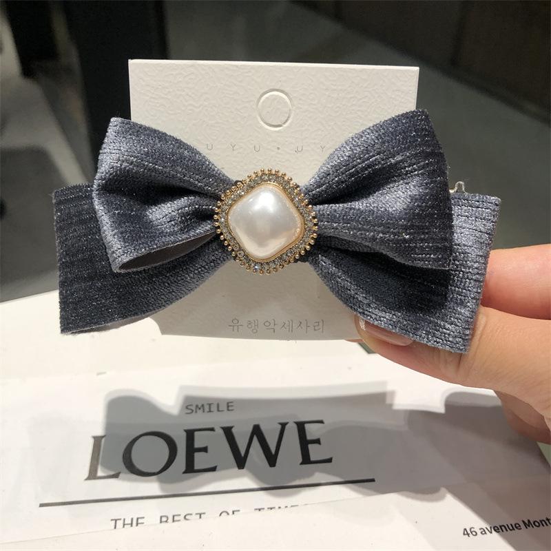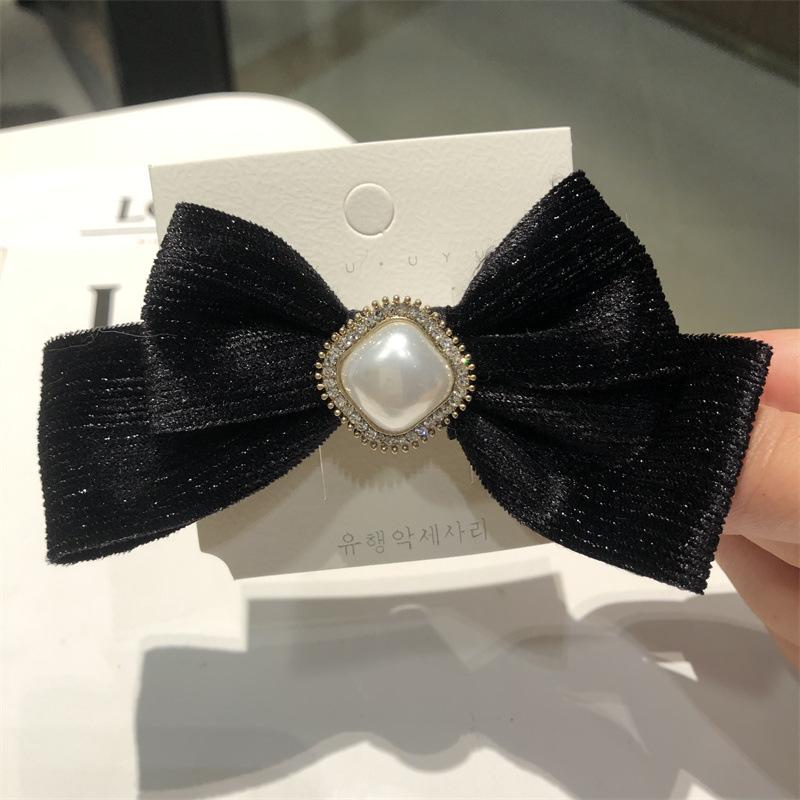 Horquilla con lazo y perla para mujer, novedad de 2023, de terciopelo coreano, ligera, de lujo, elegante, para la cabeza, joyería para mujer.