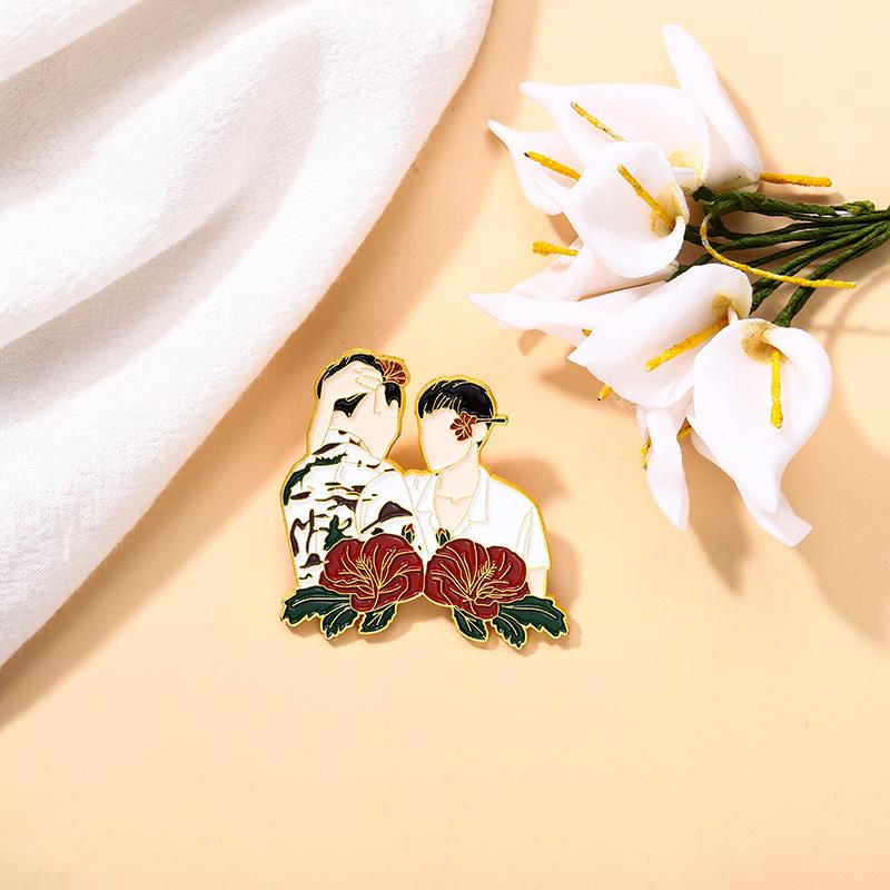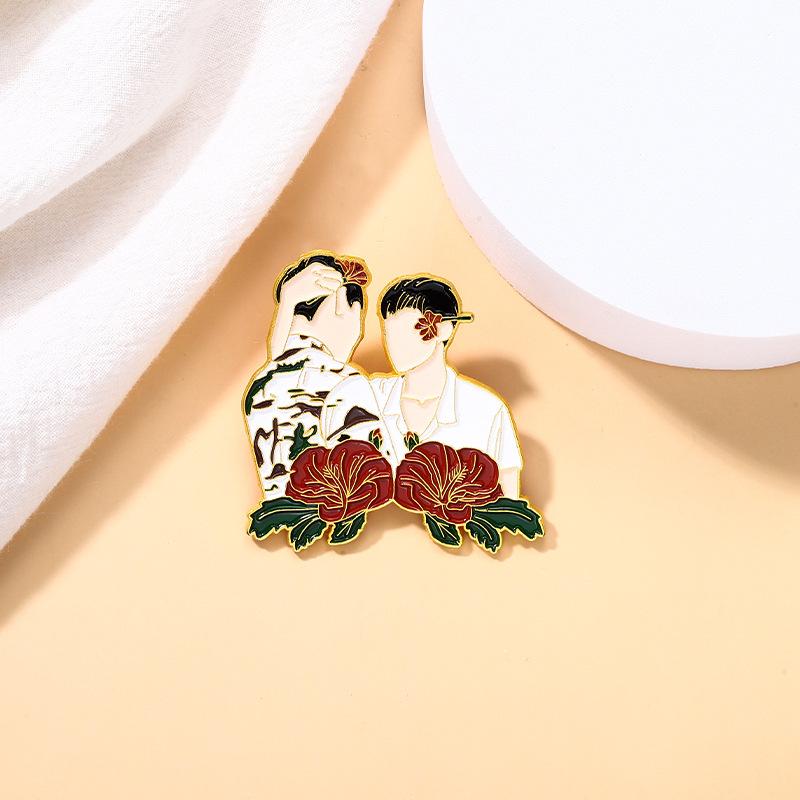 Shanhe xBKPP Insignia Periférica de Flor Hibamura x Broche Insignia de Metal Salvaje Conmemorativo Electrochapado Accesorios de Ropa