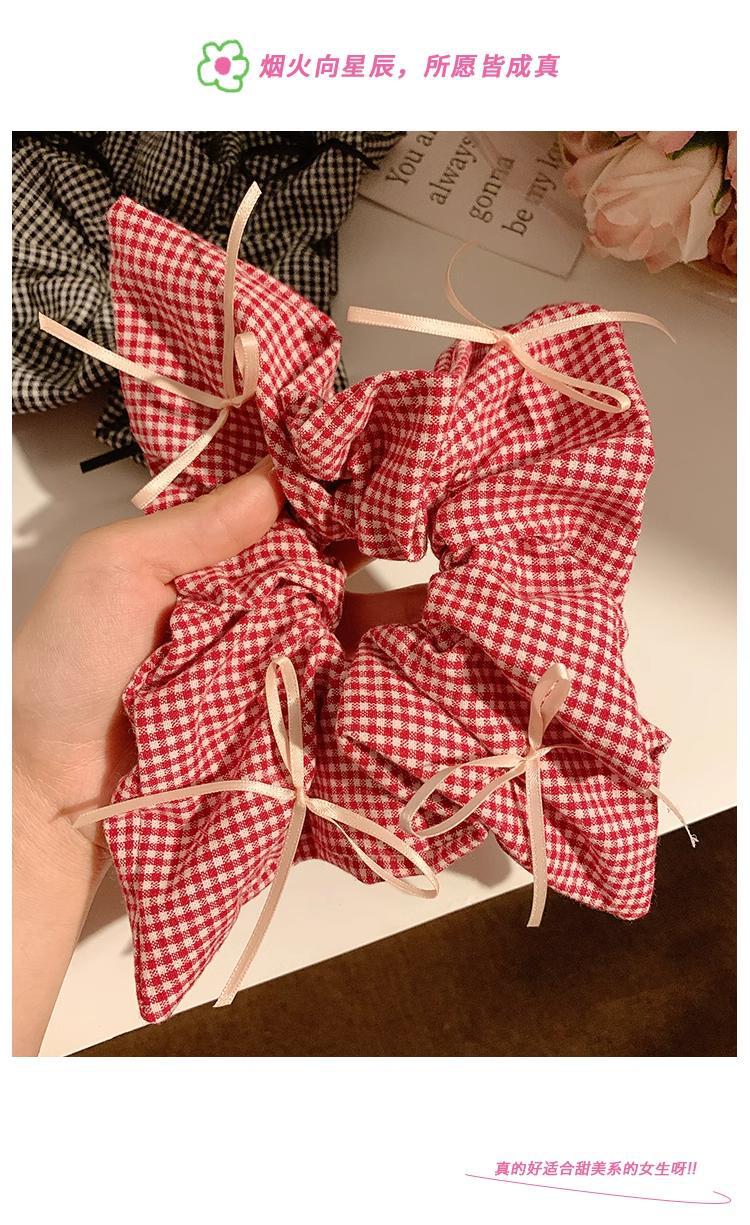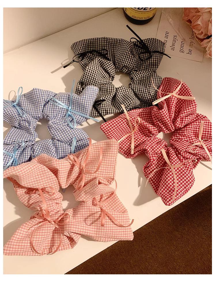 Pañuelo cuadrado con lazo a cuadros rosa elegante de estilo coreano, anillo para el pelo de intestino grueso, cuerda para el pelo que combina con todo, accesorios para el pelo, tocados de primavera y verano