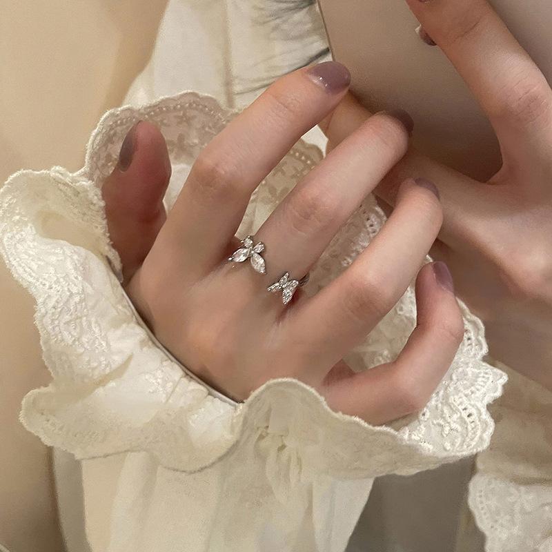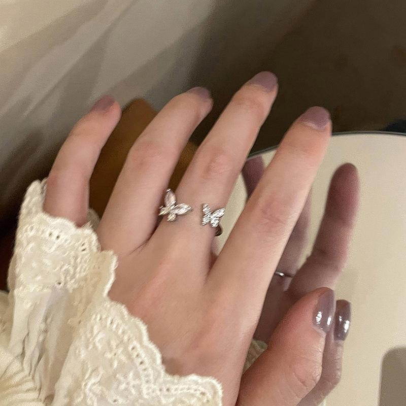 Anillo Abierto de Circonita de Mariposa de Alta Gama para Mujer, Anillo de Dedo Índice de Personalidad de Moda de Otoño e Invierno, Diseño de Nicho de Lujo Ligero