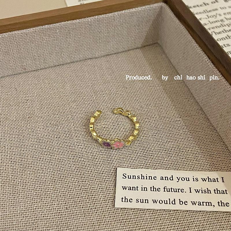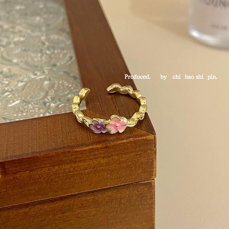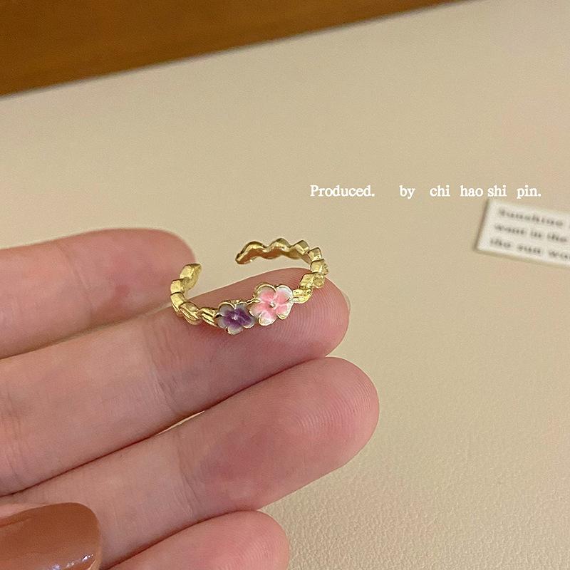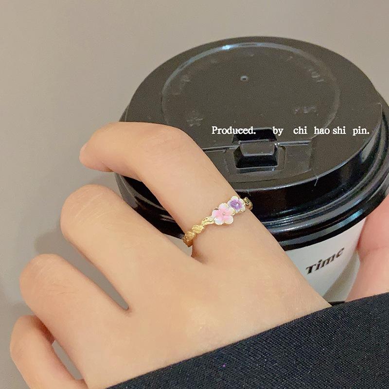 2024 Nuevo Anillo Degradado Esmalte Goteado Flor de Durazno Rosa Nicho Elegante Lujo Ligero Alta Gama Fresco Dulce Anillo Abierto