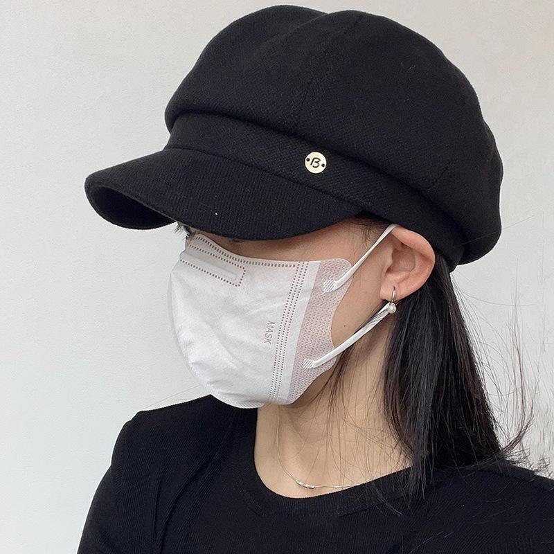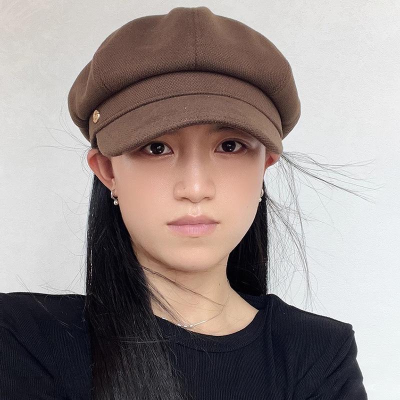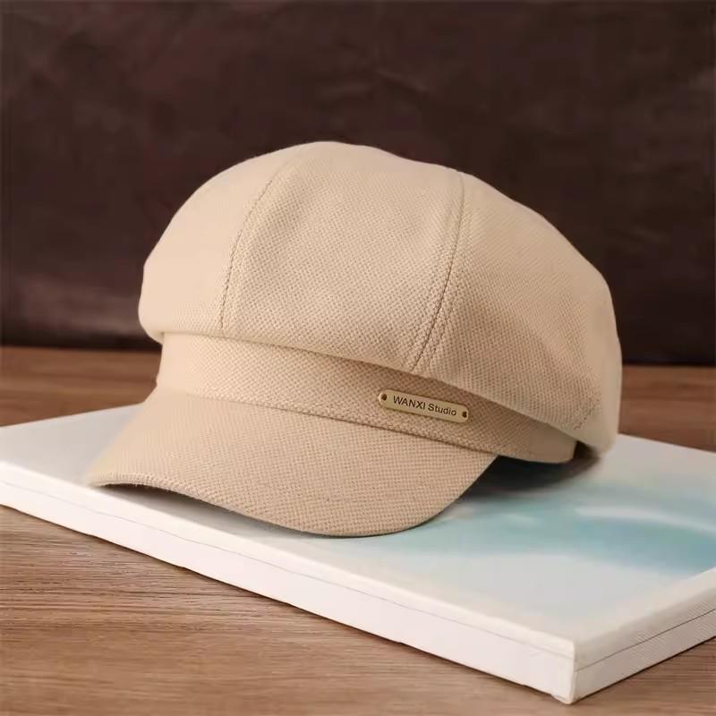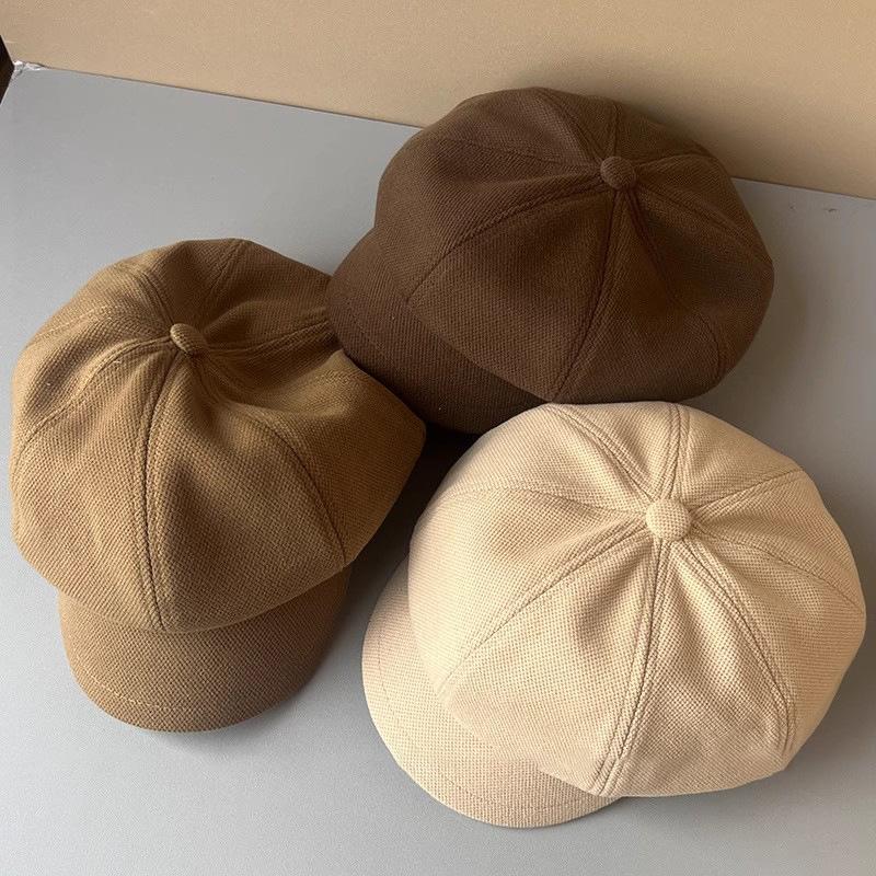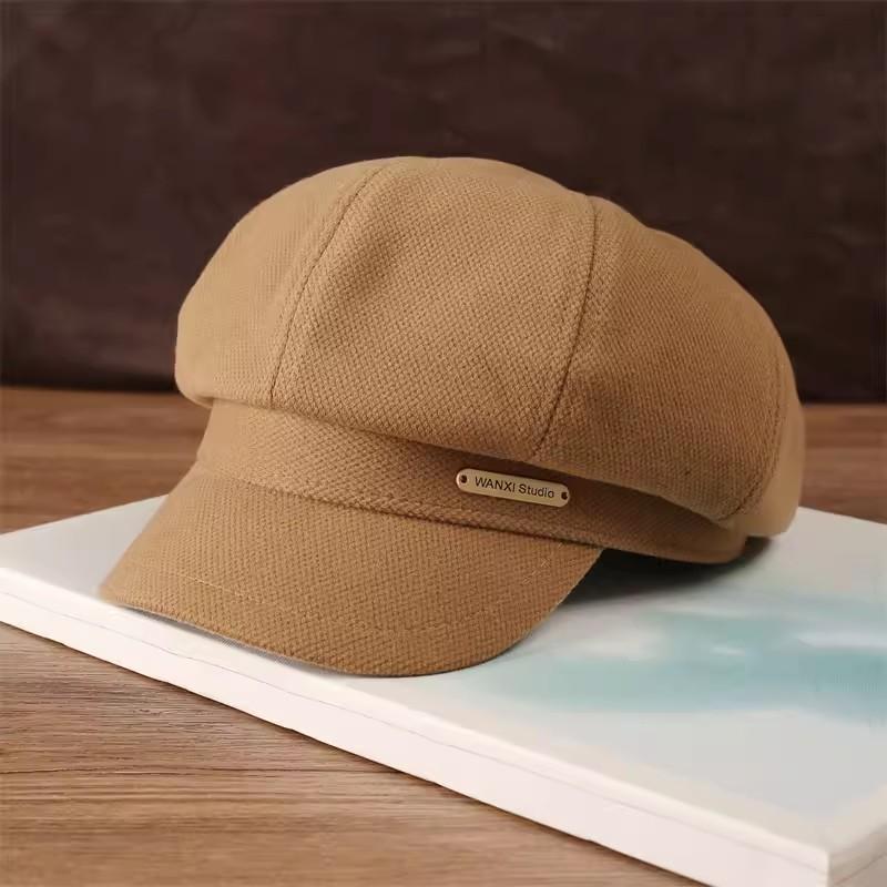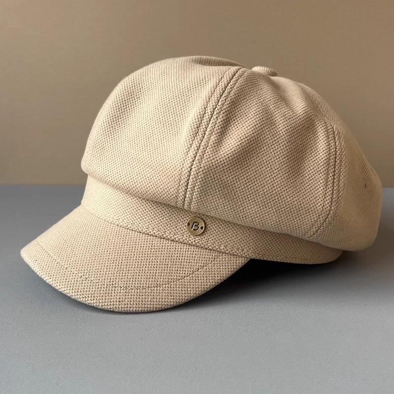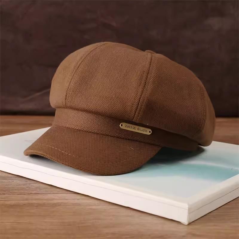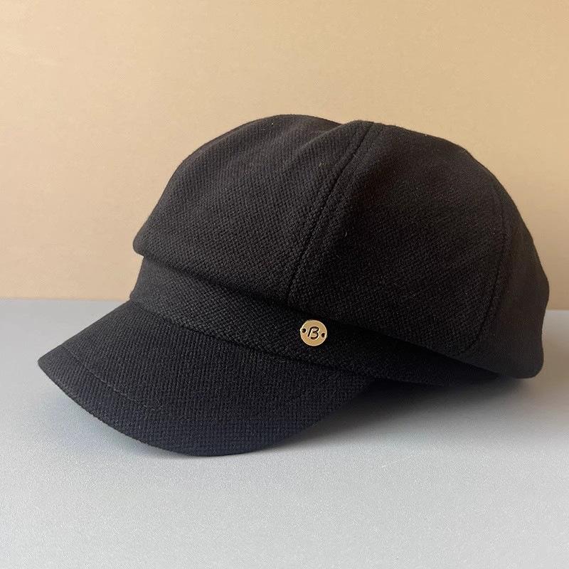 Boina de etiqueta metálica de diseñador, celebridad de Internet, para mujer, estilo coreano, invierno, cálida, combinable con todo, elegante, moda, sombrero octogonal, muestra el rostro pequeño