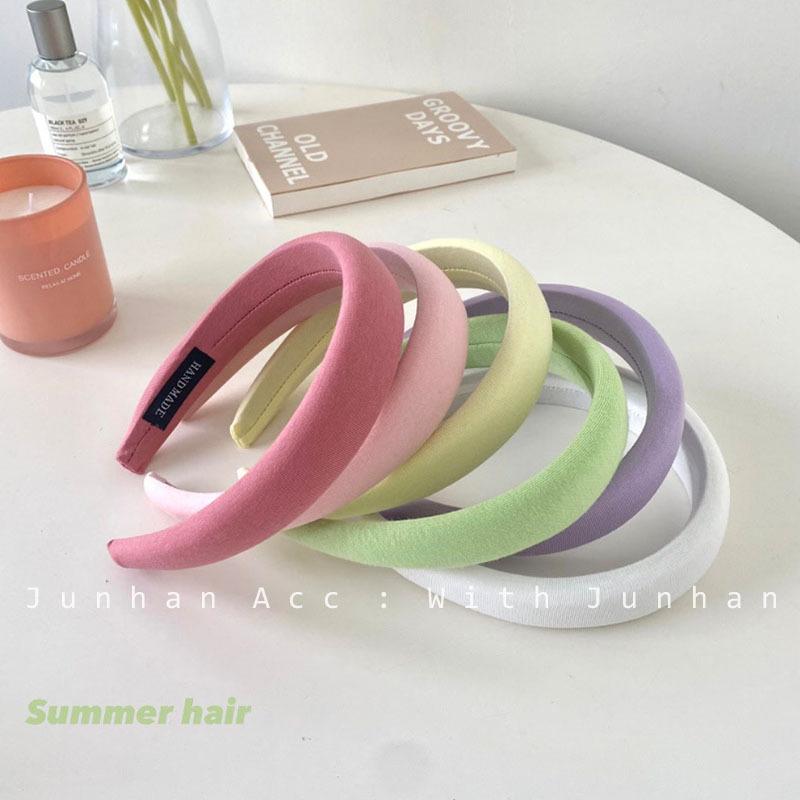 Compra Diadema coreana con esponja de ala ancha y forma de macarrón que aumenta la altura, banda para el cabello de color dulce, pinza para el cabello prensada, accesorios para el cabello al por mayor en Joom.pro