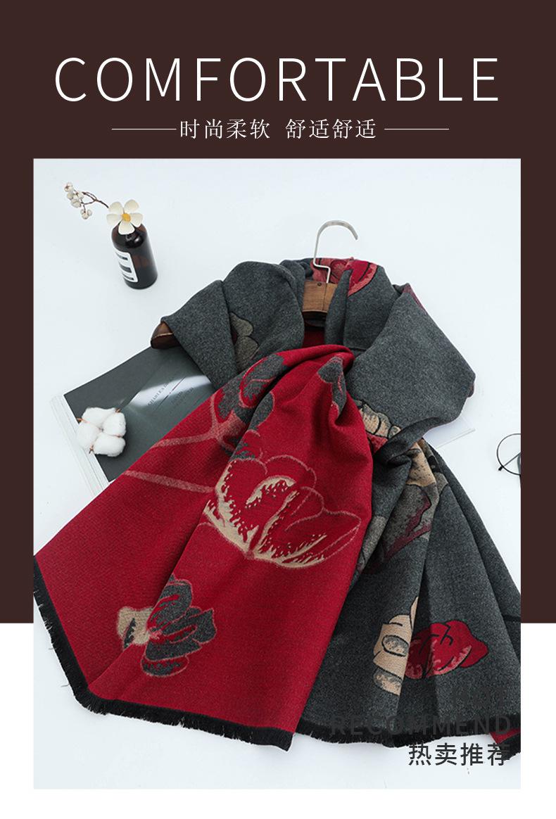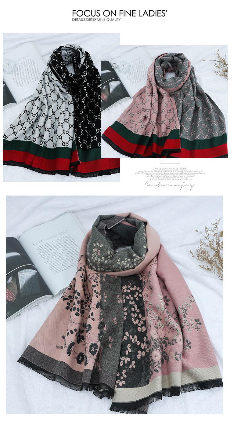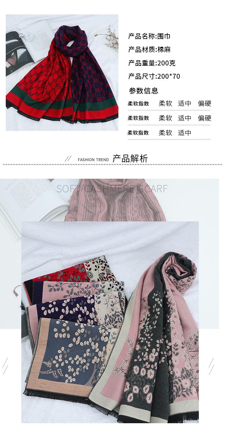 Bufanda para Mujer, Otoño e Invierno, Cálida, Cashmere Sintético, Larga, Oficina, Chal Vintage, Doble Uso, Versátil, Estilo Clásico, Patrón Floral Botánico