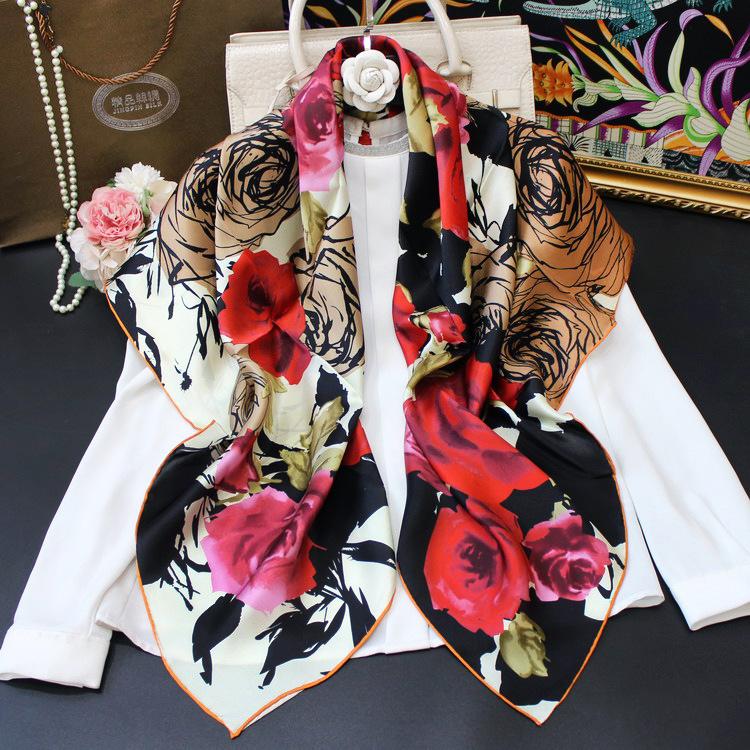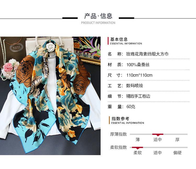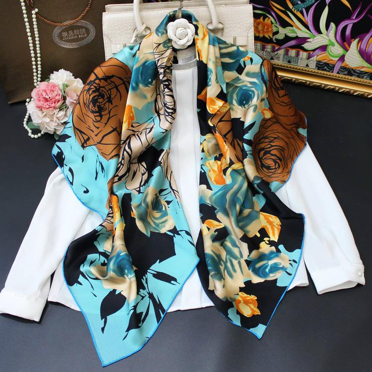 Bufanda cuadrada grande de seda Baoge con diseño de rosa marina, estilo europeo y americano, combina con todo, estilo cheongsam, para vestido y chal.