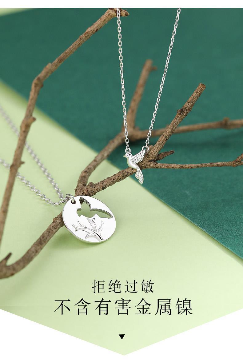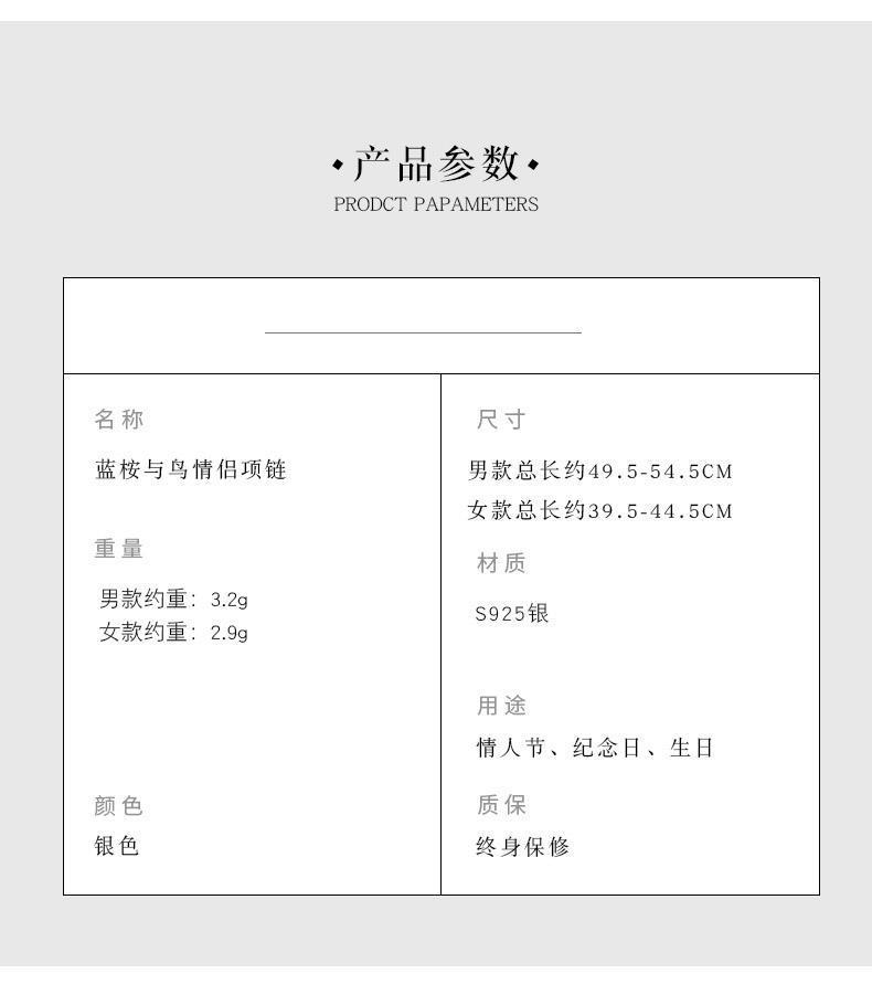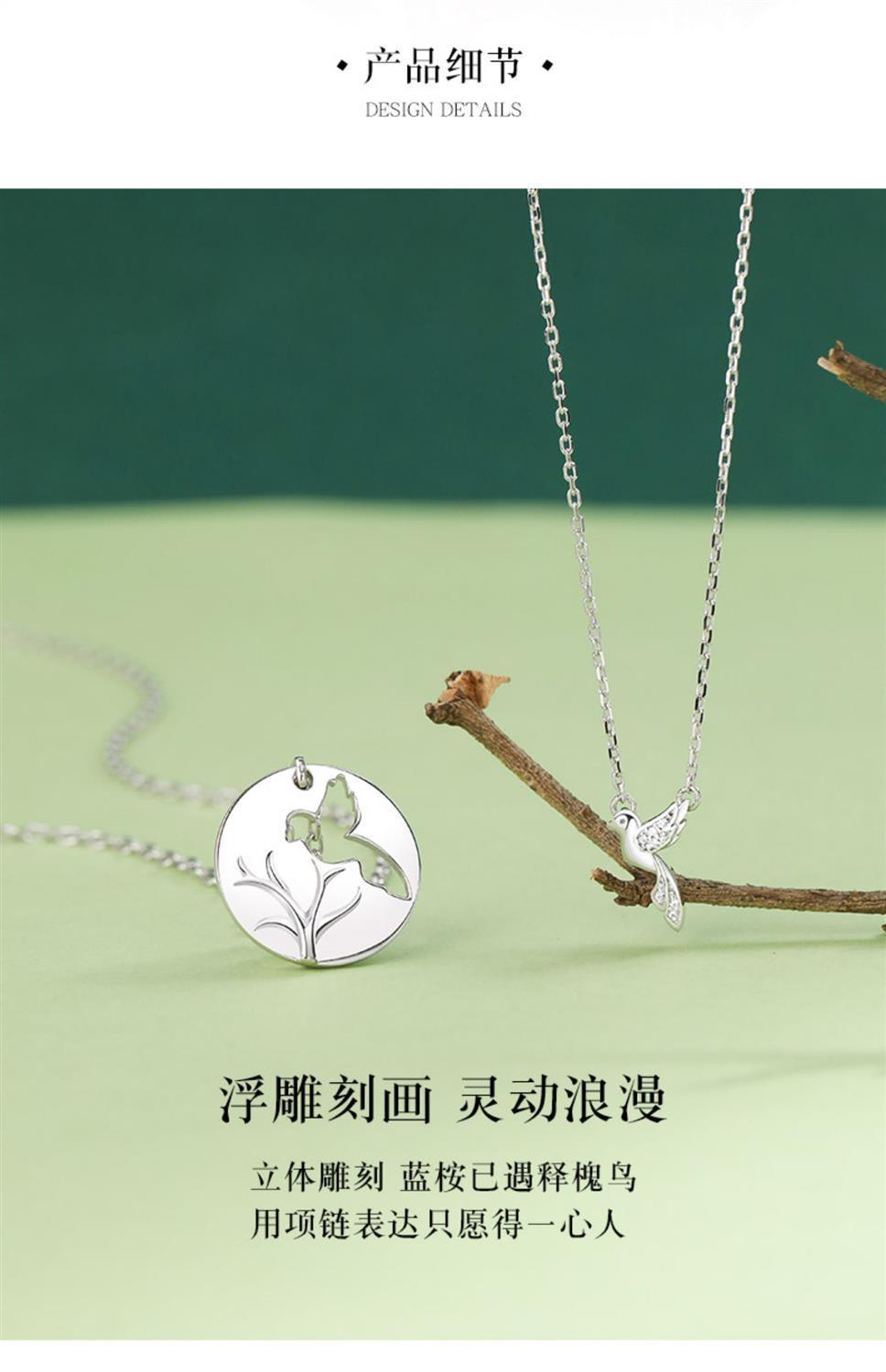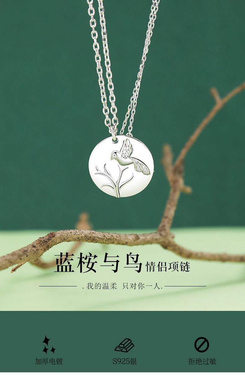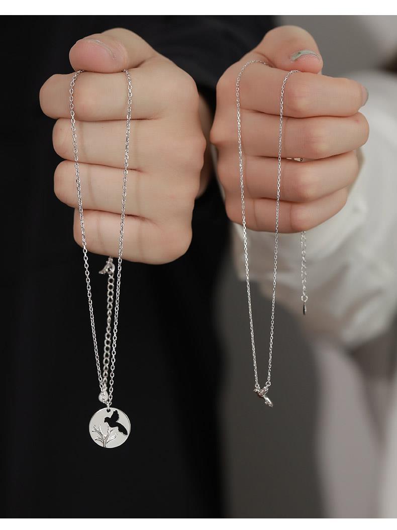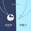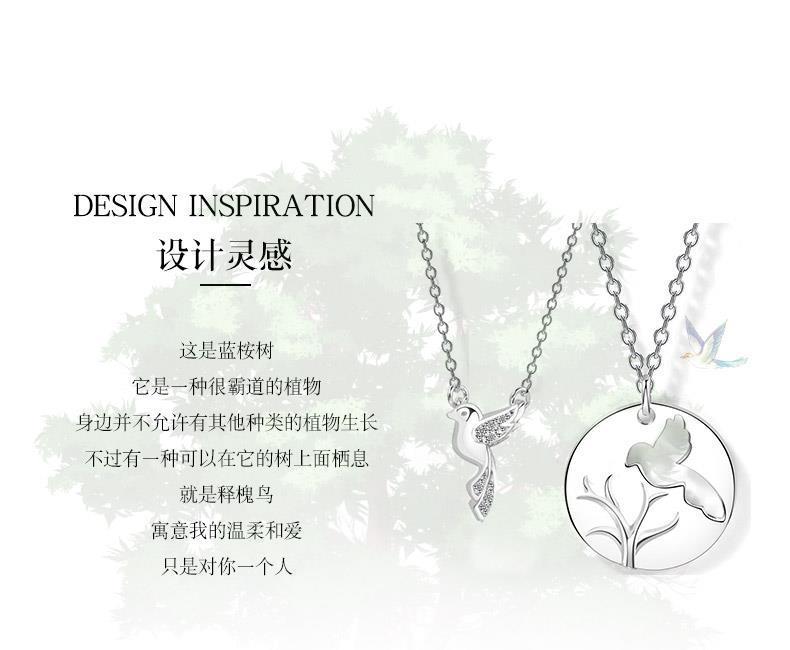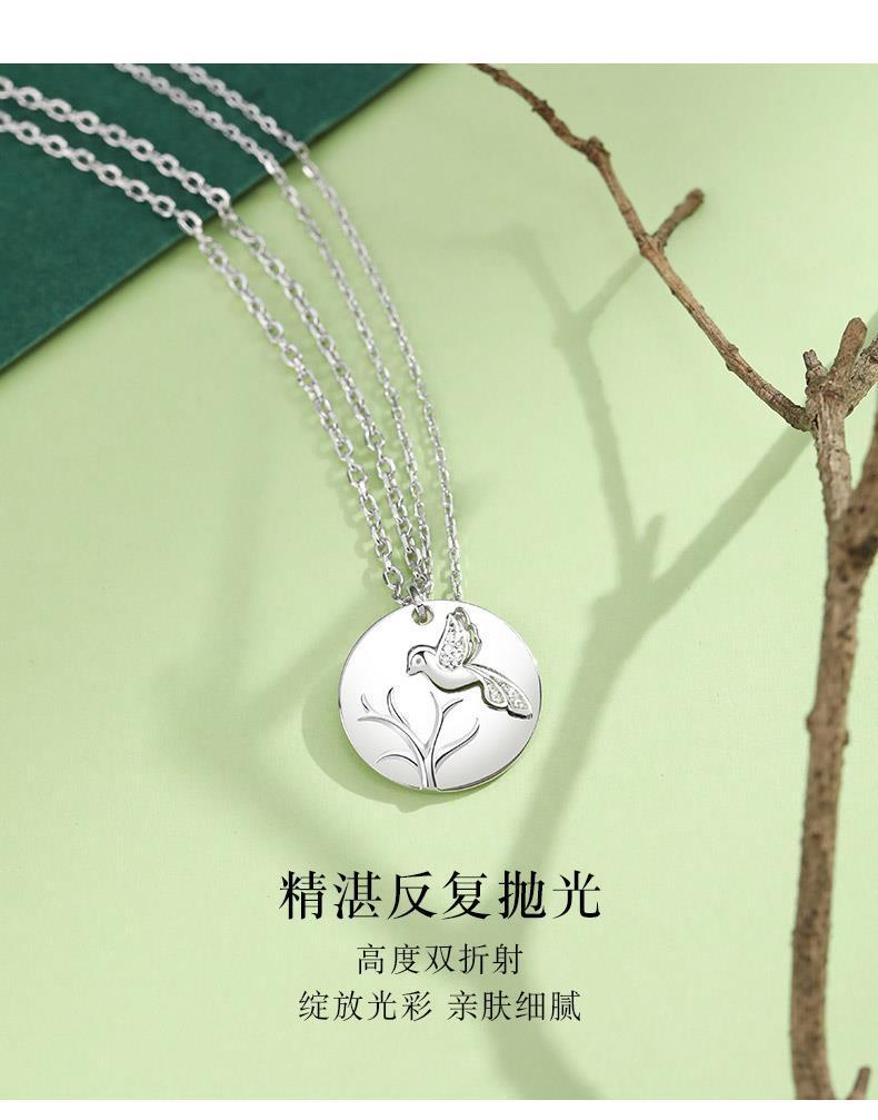 Collar de pareja de eucalipto y pájaro, plata, diseño original de nicho, para hombre, Tanabata, San Valentín, para novia.
